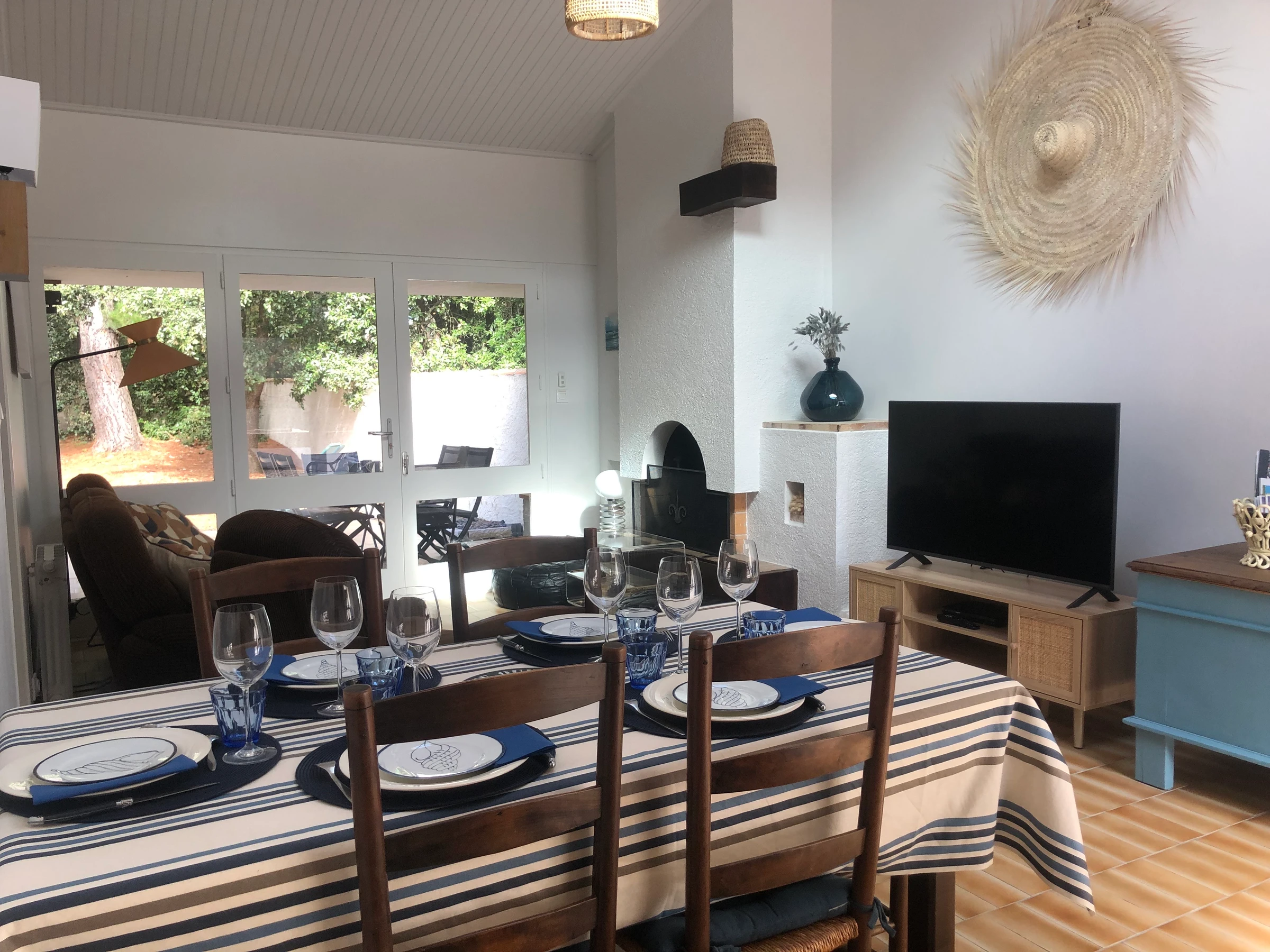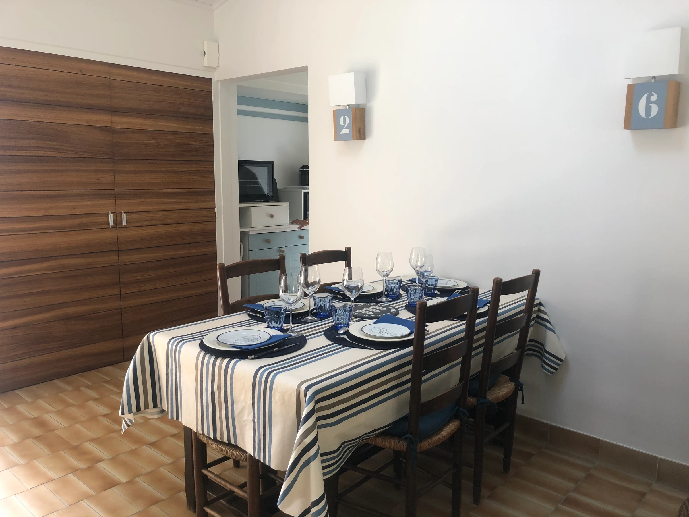 Accueillante et chaleureuse maison très bien située à 500m du quartier animé de l'avenue de la mer et à 500m de la plage, cette charmante maison très bien équipée, très bien entretenue (peintures intérieures 2024) à la décoration raffinée d’environ 60m² est composée de 3 chambres dont une dans garage aménagé en 3ème chambre.