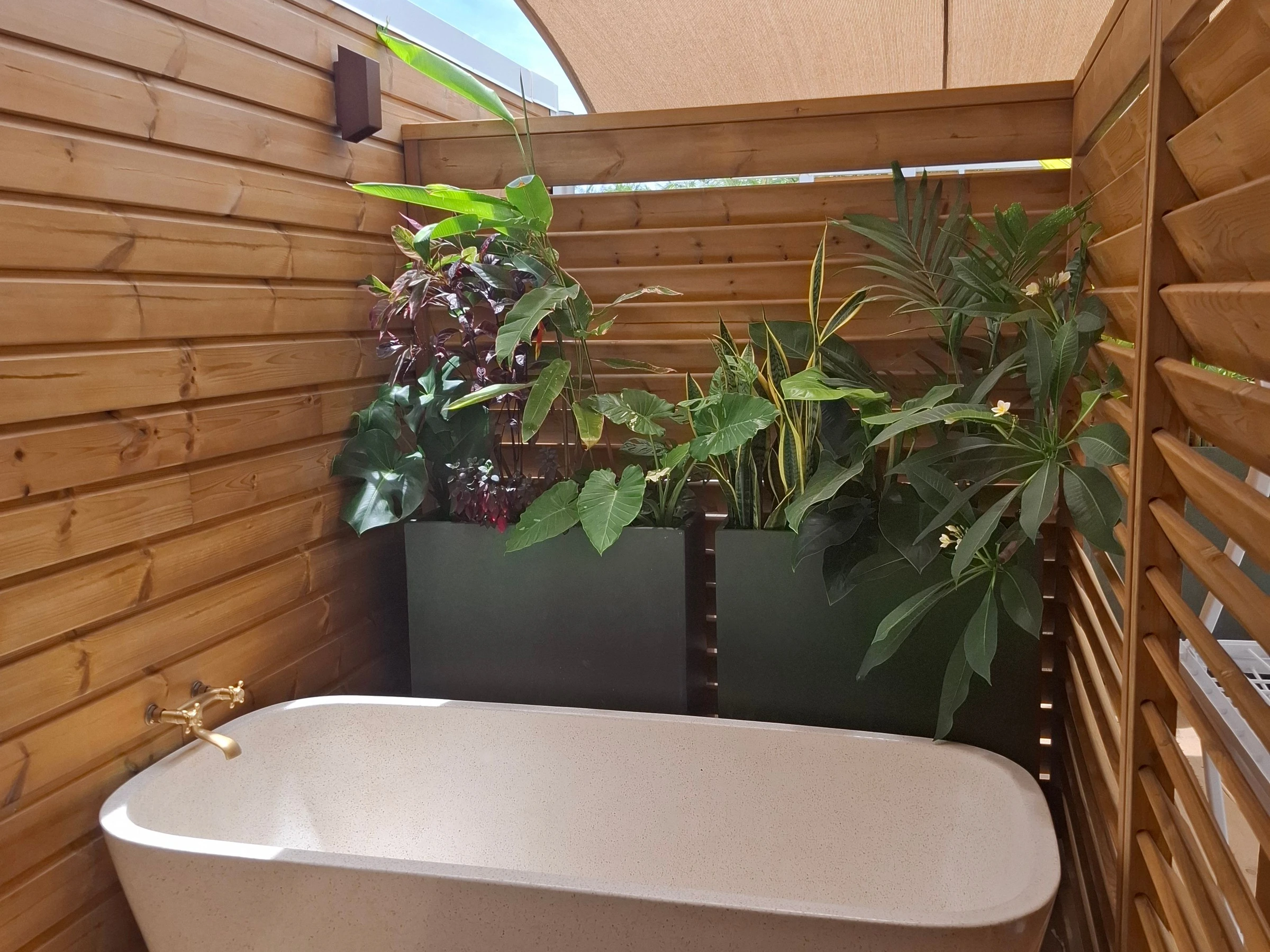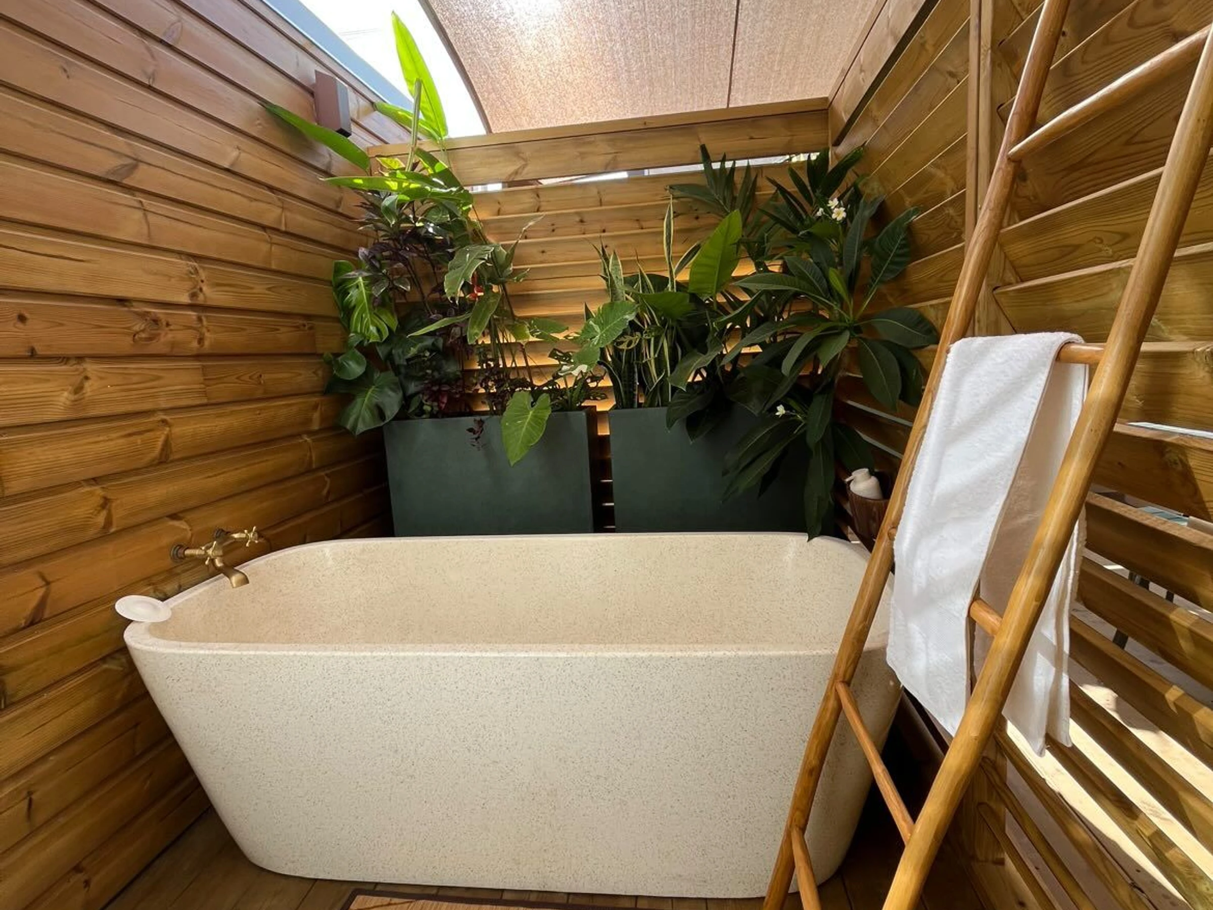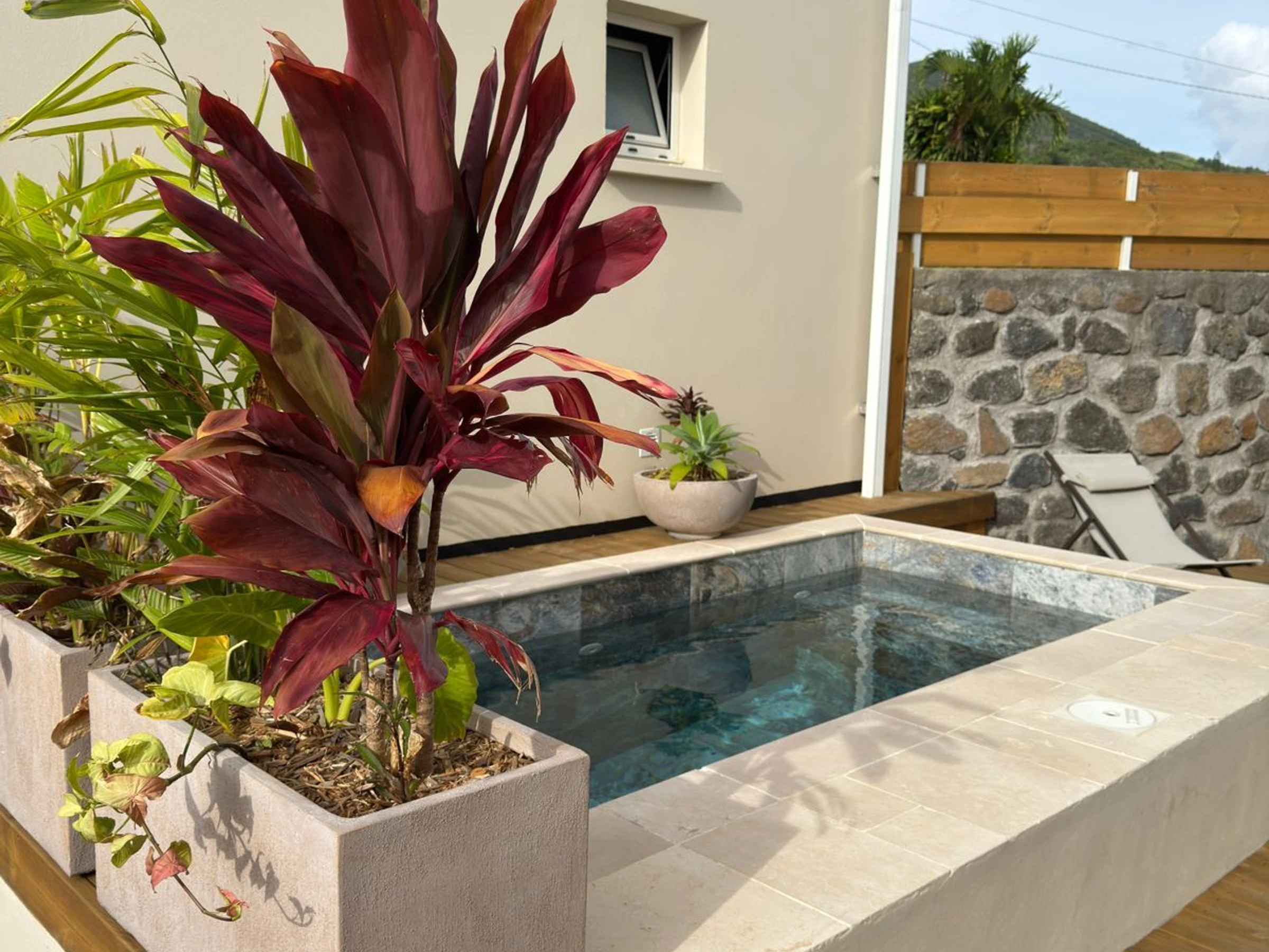 À l’extérieur, vous pourrez savourer des moments privilégiés autour de la piscine privative, parfaite pour se rafraîchir après une excursion ou simplement se détendre sous le soleil du sud. Une baignoire extérieure, installée dans un cadre intime et naturel, invite à des instants de relaxation uniques, en harmonie avec l’environnement. Le jardin et les espaces extérieurs permettent de profiter pleinement de la douceur de vivre réunionnaise, que ce soit pour un café le matin, un moment de lecture ou un dîner en plein air.
