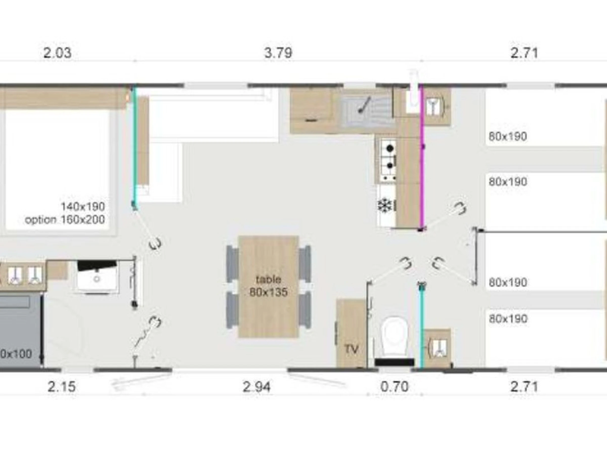 Mobile-home de 35m² pour 6 personnes :