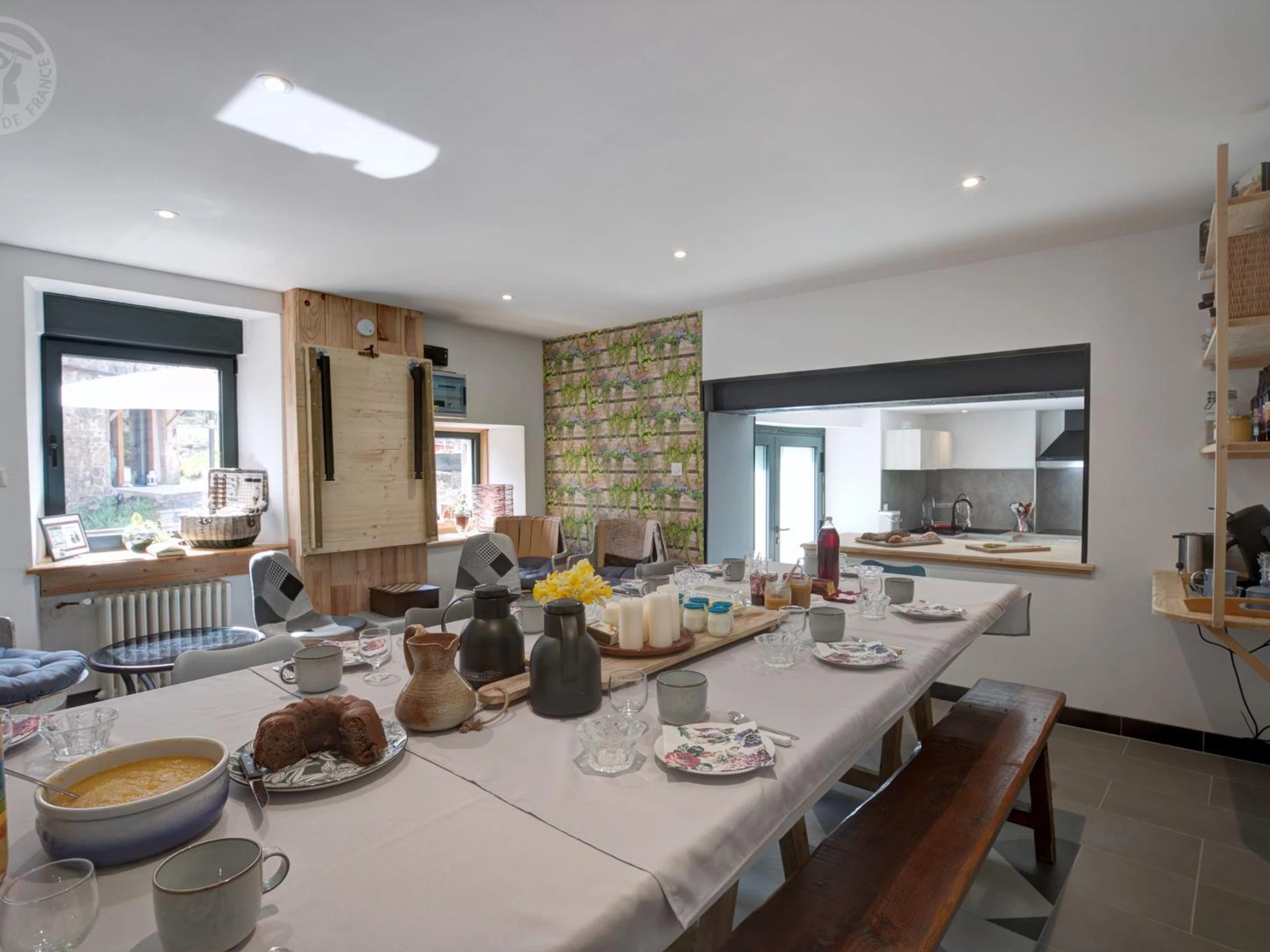 Deux gîtes regroupables et mitoyens, gîte "Angie" de 110m² & gîte "Coron" de 40m² (rdc surélevé & étage). "Angie" s'ouvre sur une belle pièce à vivre avec une salle à manger pouvant accueillir 11 / 13 personnes à table, et une cuisine équipée et intégrée entièrement aménagée pour partager des bons plats en famille. Dans cette partie, 3 chambres très confortables et spacieuses sont aménagées avec chacunes sa salle d'eau privative et son WC indépendant. Au 1er niveau : la suite Émeraude avec un lit Queen Size, à l'étage la suite Ternay avec un lit 140*200 & la chambre familiale Pilat qui se compose de deux chambres traversantes avec 1 lit 180 / 3 lit 90 avec un lit superposé. "Coron" dispose d'un séjour avec cuisine ouverte sur espace repas et salon avec canapé convertible, d'une chambre avec deux lits 90 pouvant être jumeler en lit 180, d'une salle d'eau et d'un WC indépendant. Entre Loire et Ardèche, au cœur d'un paisible hameau de campagne vous serez charmé par le calme de la nature environnante. Découvrez cette ravissante et authentique ferme en pierre du 18ème siècle chargée d'histoire et soigneusement restaurée et décorée par les propriétaires. "Le chant de l'eau" est le regroupement de deux gîtes mitoyen pour vous offrir un séjour cosy en petit groupe. Vous trouverez en ces lieux charme et ambiance douce pour vous détendre. L'hébergement se situe en face de chez les propriétaires et domine la vallée offrant une agréable vue depuis les terrasses et la cour commune de la propriété. Pour rendre votre séjour encore plus agréable, les charges et le chauffage sont inclus, les lits sont faits à votre arrivée, le linge de toilette est à disposition et le forfait ménage est inclus !