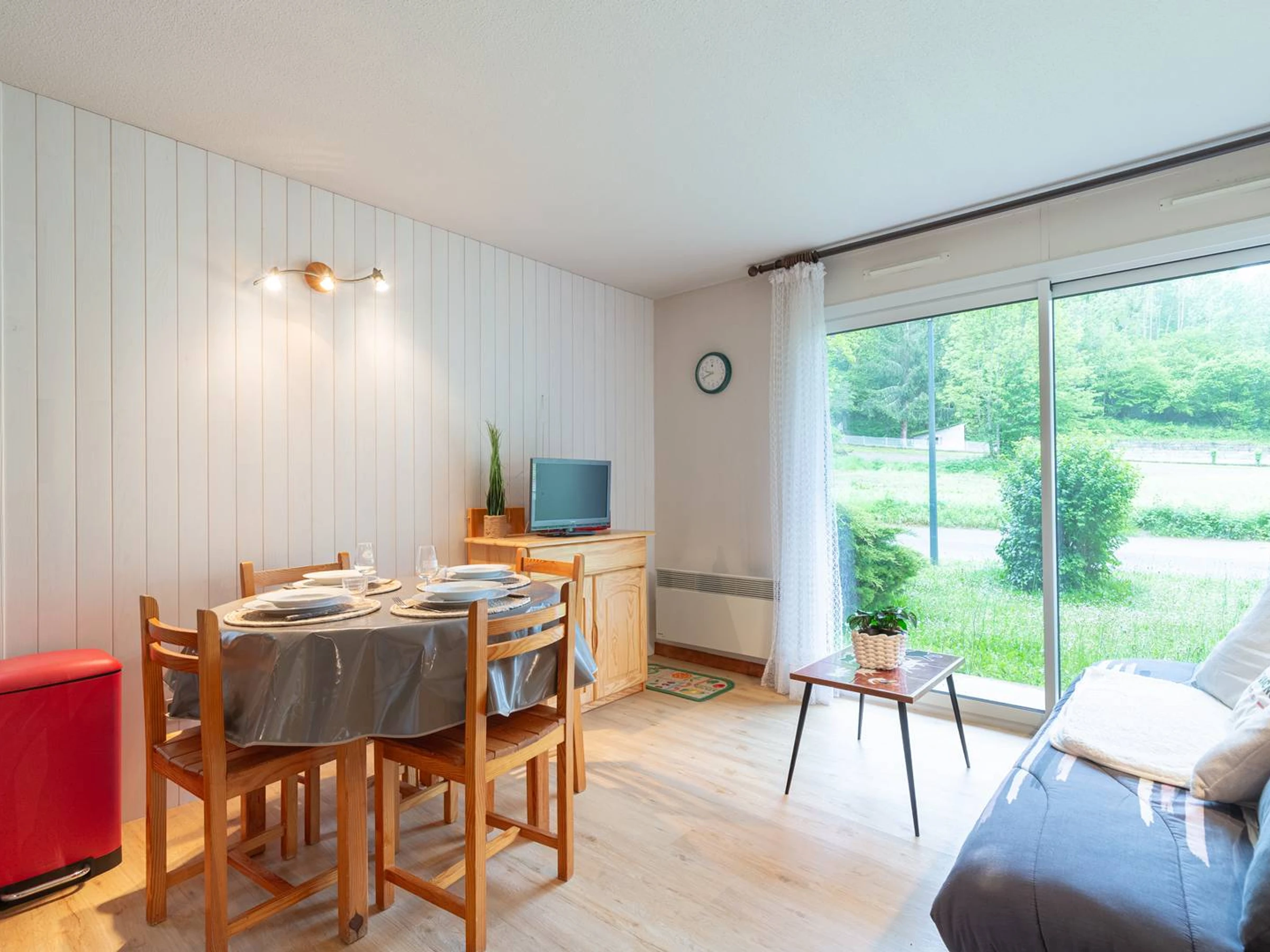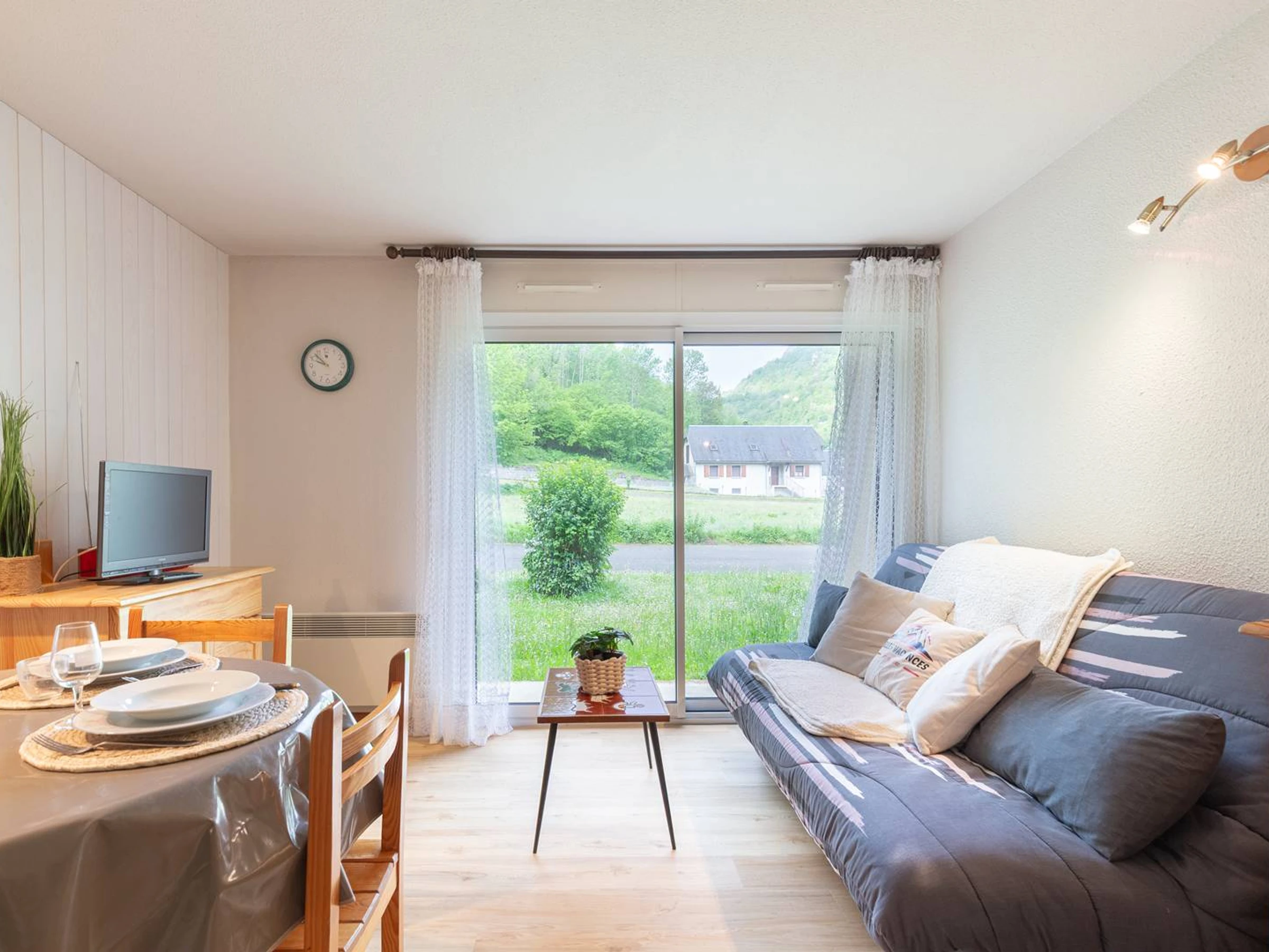 Une grande baie vitrée orientée plein sud inonde le salon de lumière naturelle et donne accès à une petite terrasse ensoleillée, parfaite pour vos moments de détente après une journée en montagne.