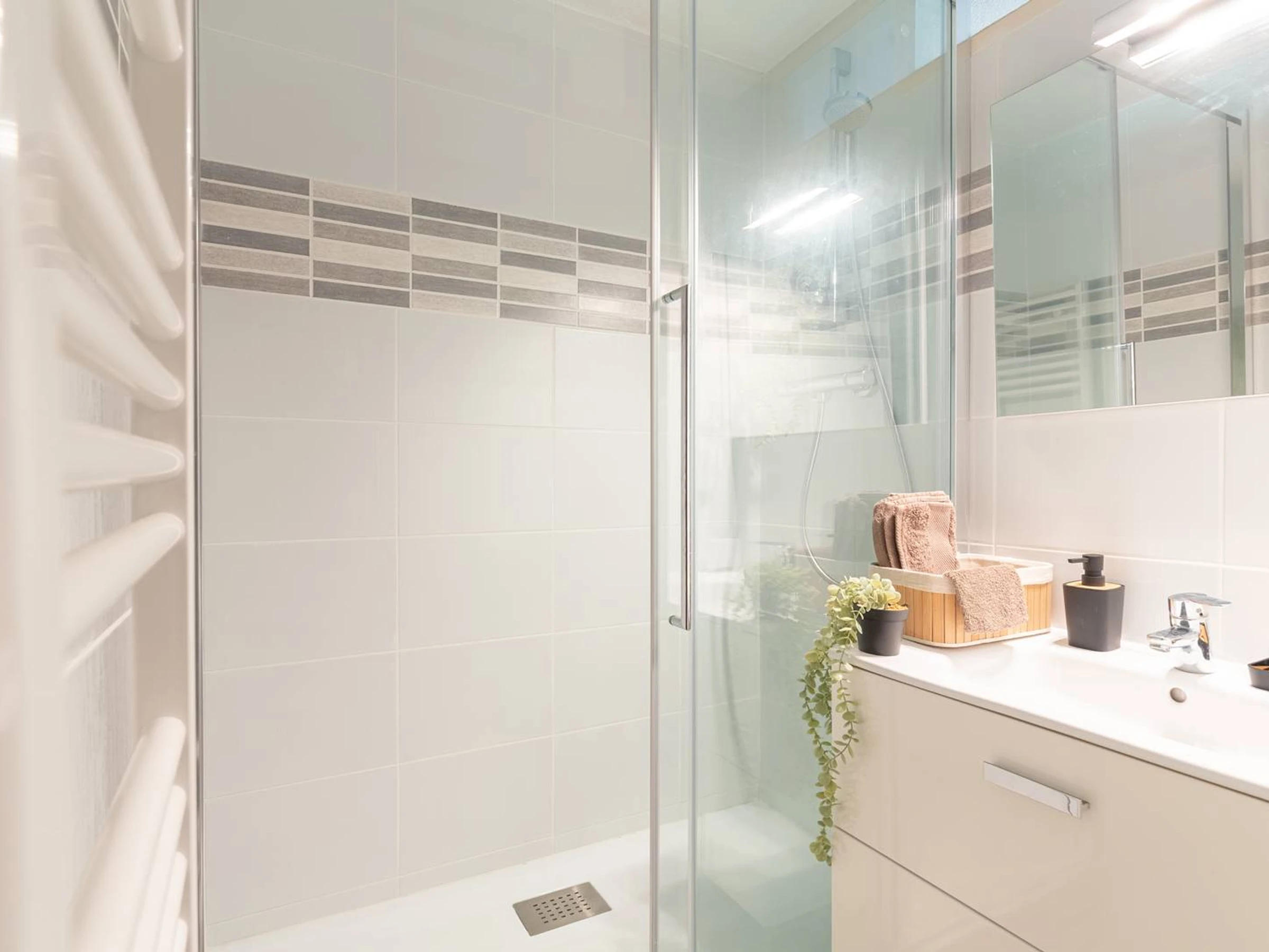 En rez-de-chaussée, l’appartement offre une capacité d’accueil de 6 personnes. Il se compose de deux chambres : une première chambre avec un lit double, et une seconde équipée de deux lits superposés 70x 200, idéale pour les enfants. La salle d’eau a été récemment rénovée pour un confort optimal, tout comme la cuisine ouverte, moderne et fonctionnelle, qui s’ouvre sur un séjour convivial.