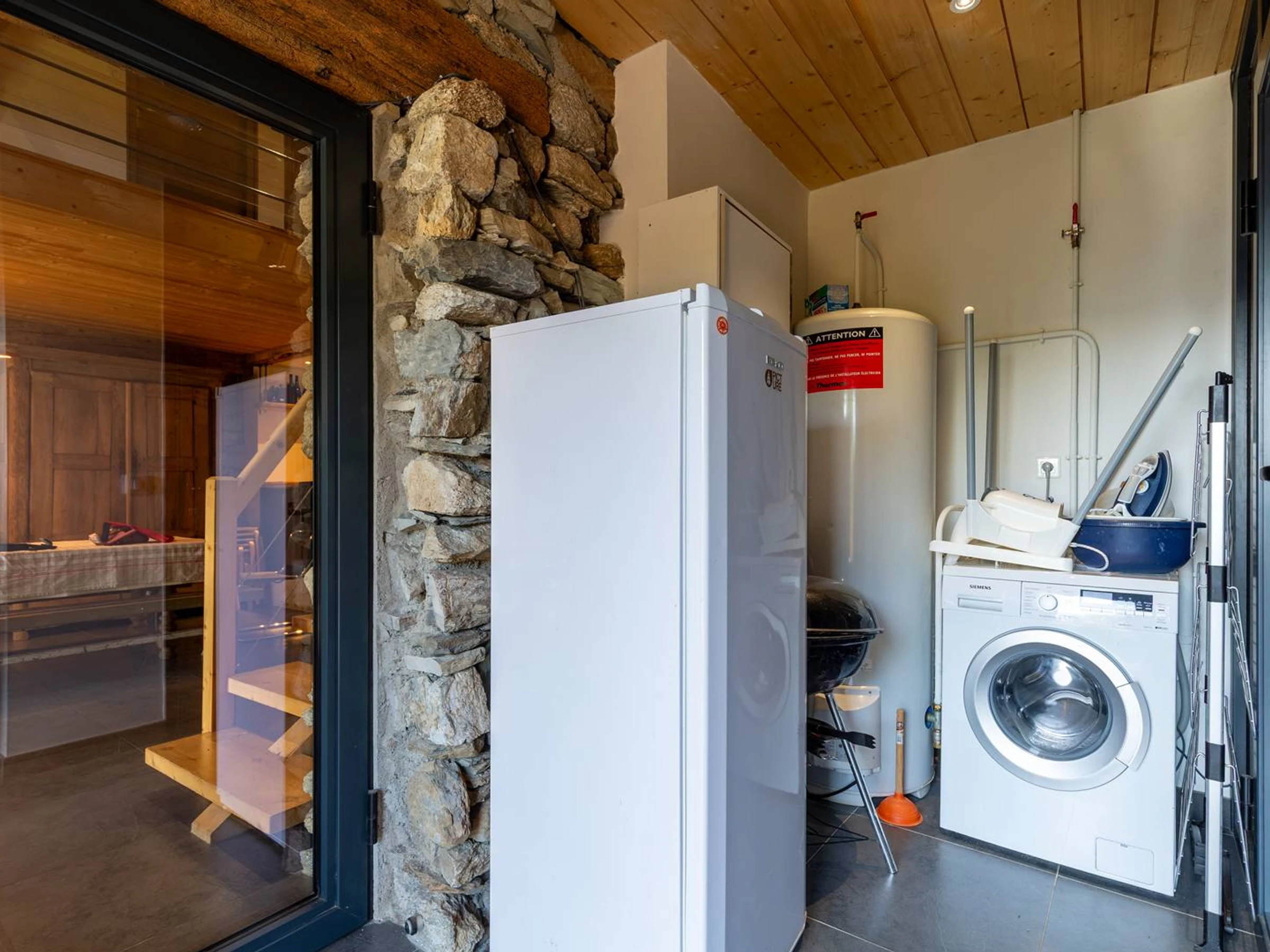Sas d’entrée pratique avec machine à laver, espace de rangement et coin pour faire sécher skis et chaussures