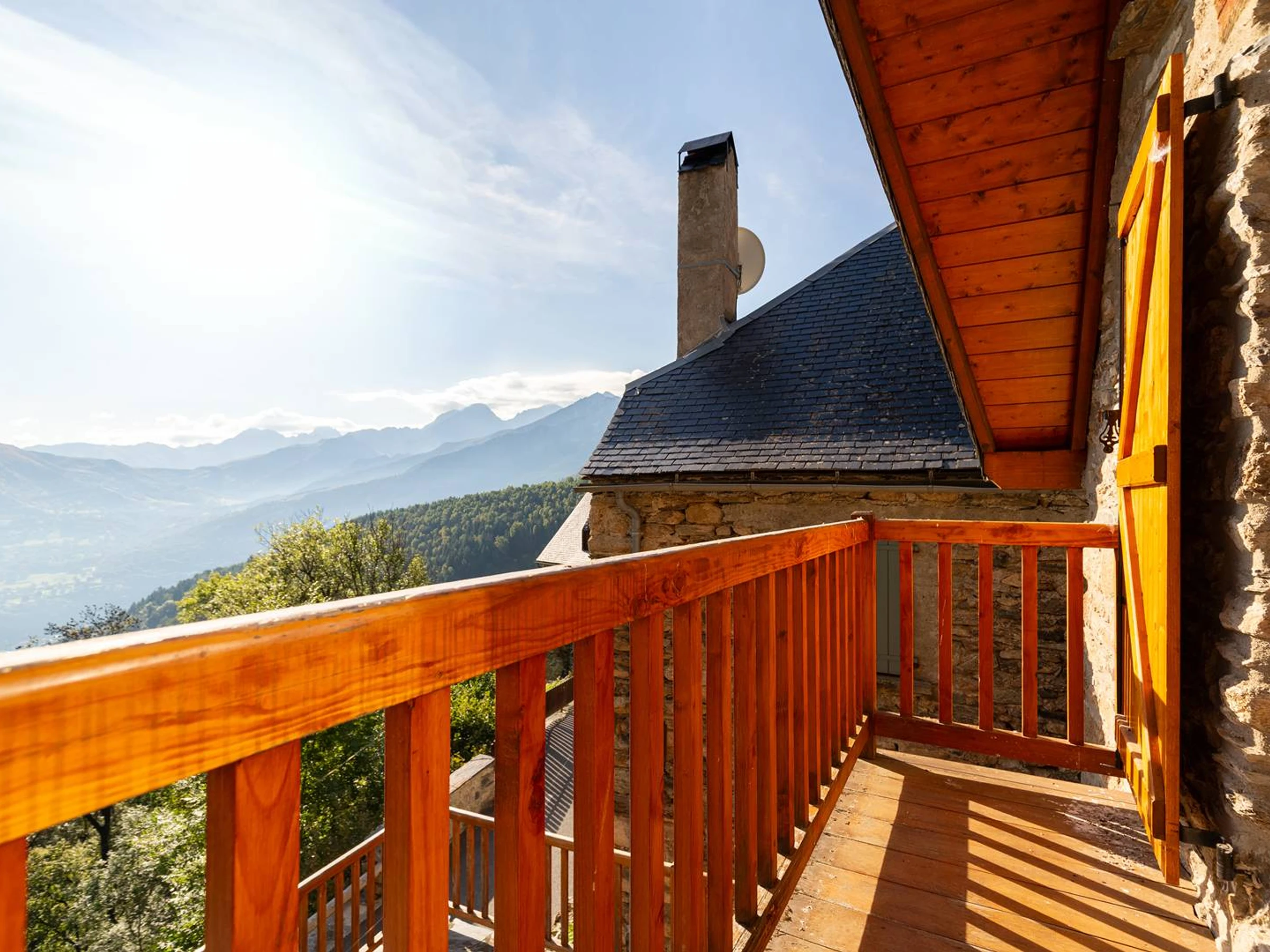 Terrasse exposée sud-est avec table et vue magnifique sur la vallée
