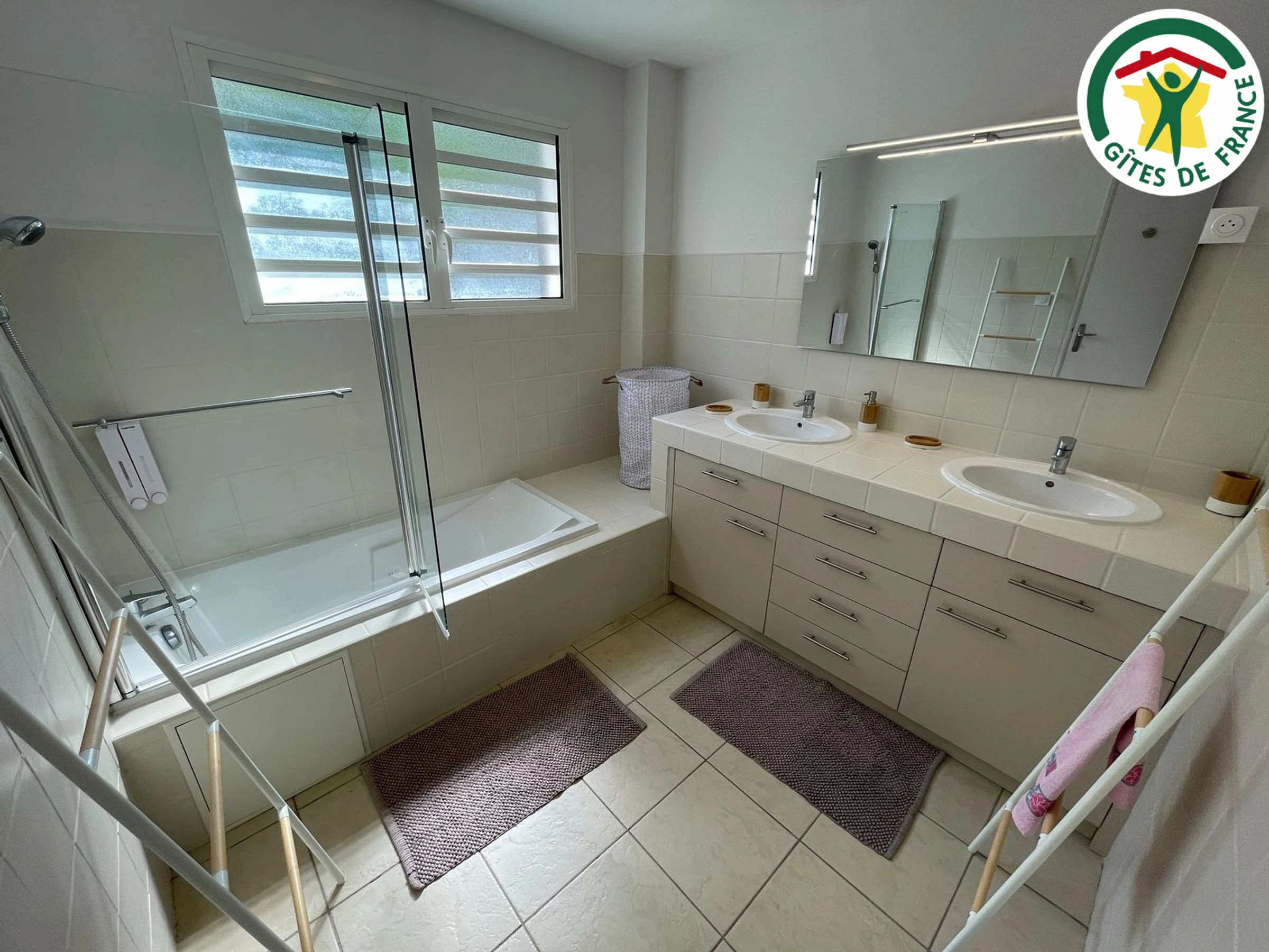 - 2 chambres au rez-de-chaussée : Chaque chambre fait 12 m² et dispose d’un lit double en 160x200, offrant un espace confortable et paisible.