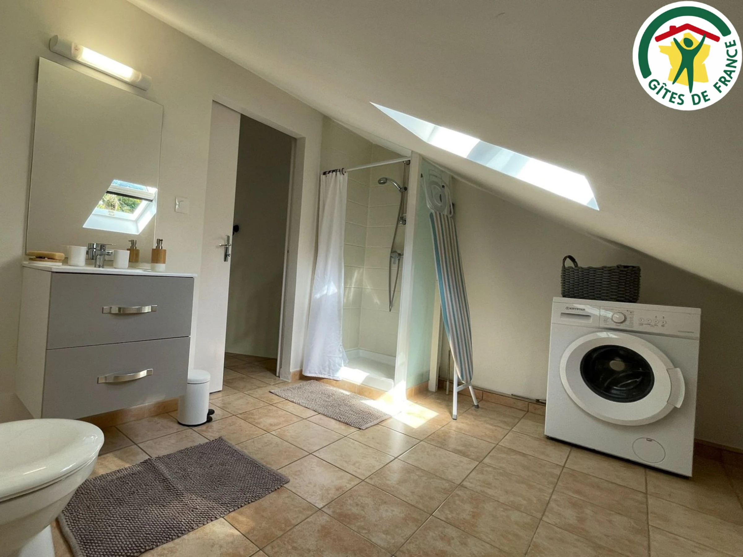 - Chambre familiale à l’étage : Idéale pour les familles, cette chambre comprend un lit double en 160x200 et deux lits simples en 90x200, parfaite pour accueillir petits et grands dans un cadre convivial.
