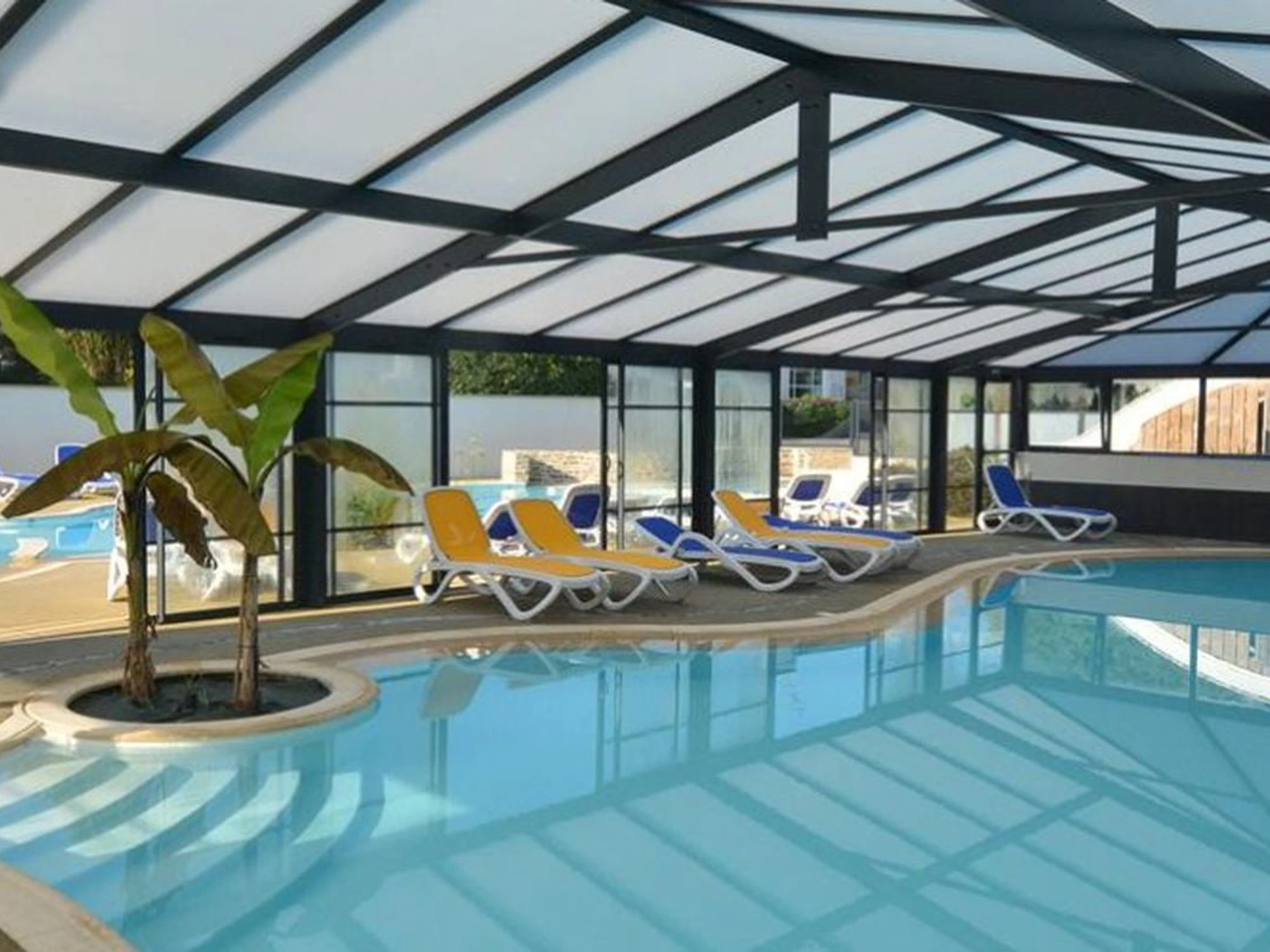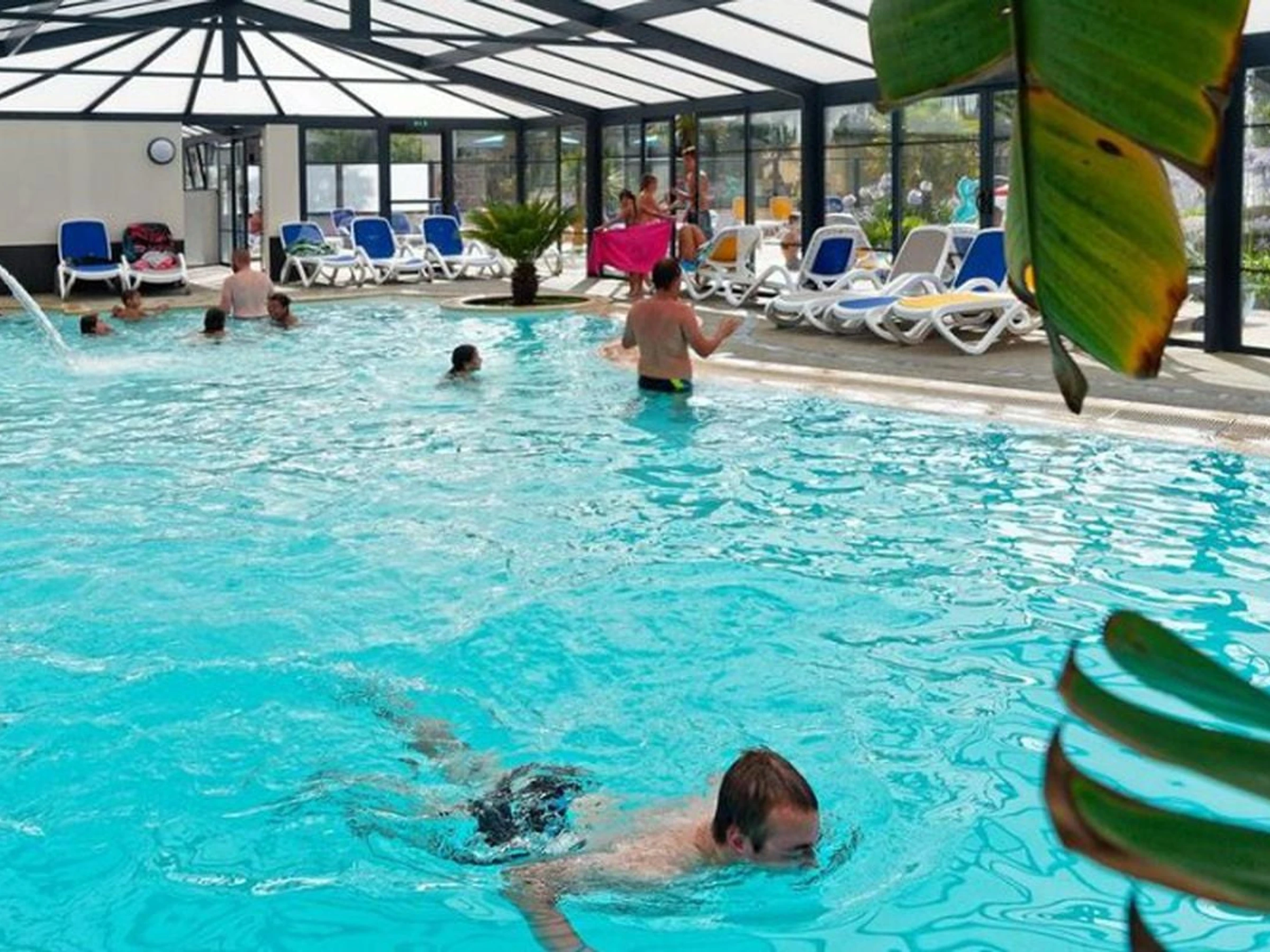 - Un grand bassin avec un espace nage u00e0 contre courant, 3 pistes de toboggans et une pataugeoire.,