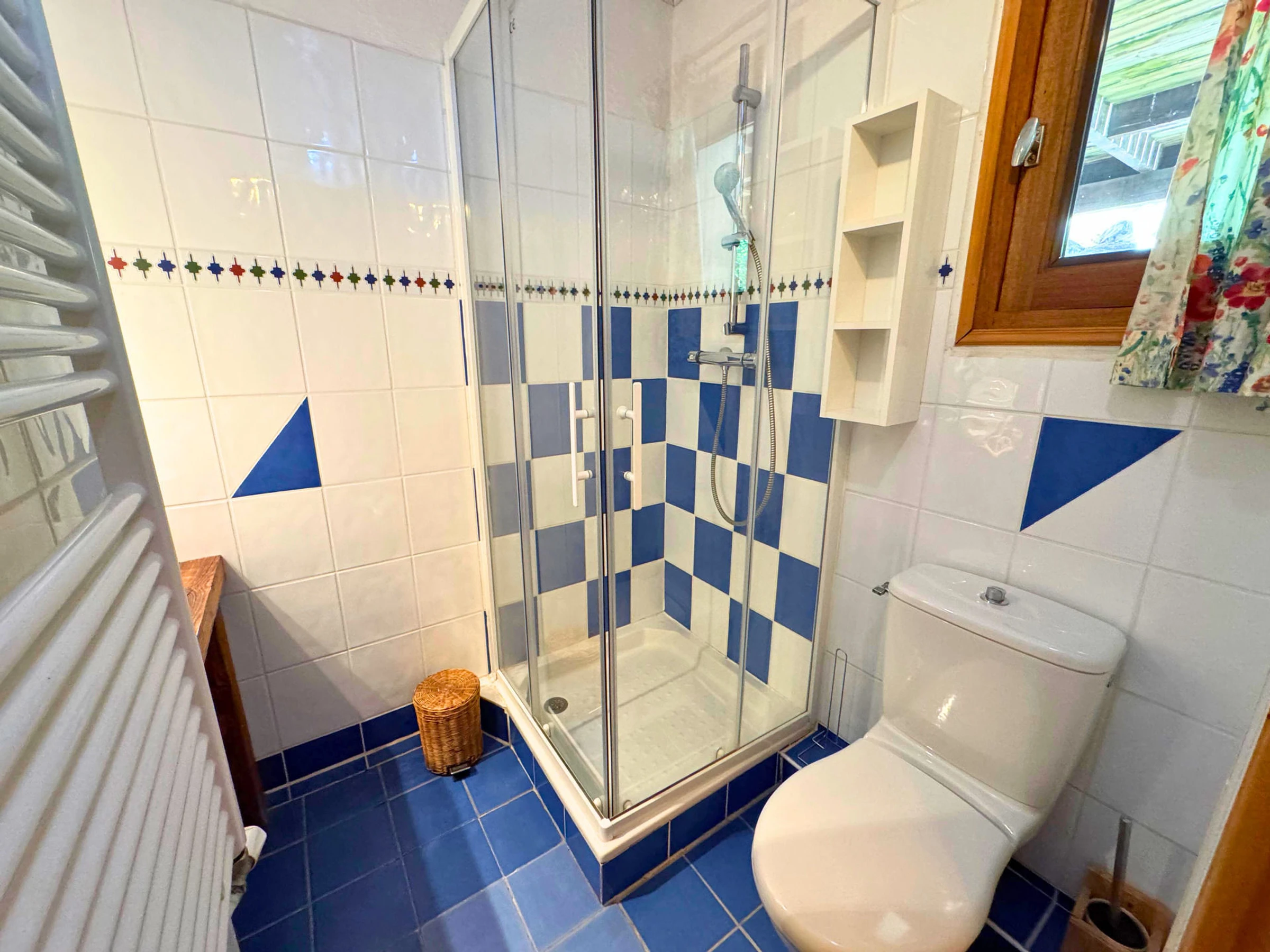 Chambre "Fouine" : lits simples jumellés (2x90 cm), commode, salle de bains attenante (lavabo, douche, toilettes, sèche-serviettes),