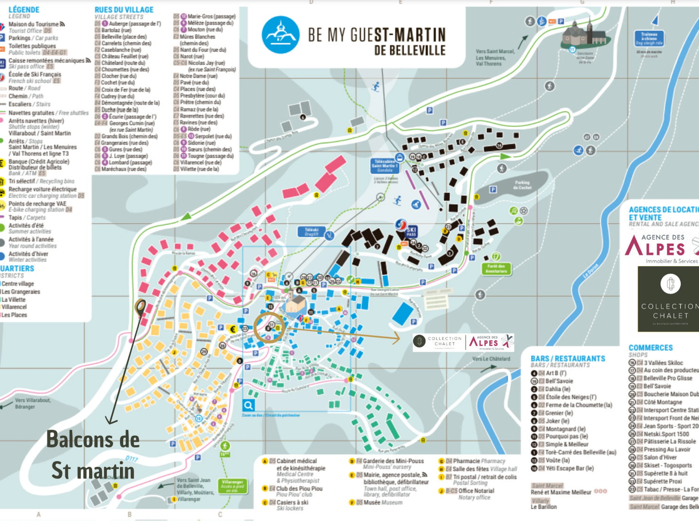 Les Balcons de St Martin est un petit ensemble de style chalet où la pierre et le vieux bois dominent. La résidence est à quelques minutes du centre de la station-village de St Martin de Bellevilles et de ses commodités : pistes de skis, commerces (alimentation, magasins de sports, restaurants...), services (école de ski, garderie, pharmacie, Maison du Tourisme...). Un arrêt navette gratuite se trouve en côté de la résidence (en hiver uniquement).