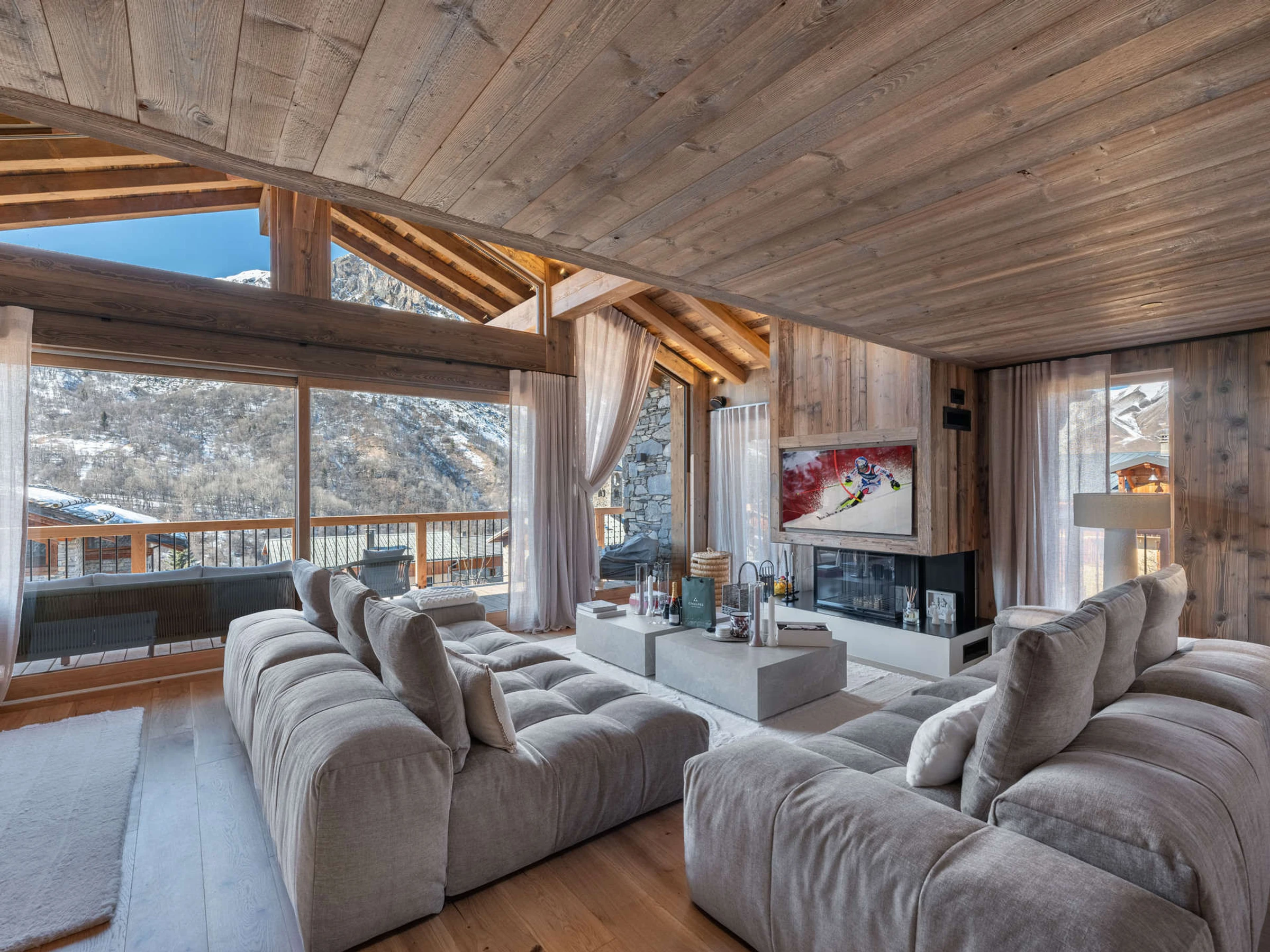Magnifique chalet neuf de 300m² en plein centre de Saint Marcel à quelques minutes en voiture des premières pistes de ski. Piscine, bain nordique et salle de cinéma.