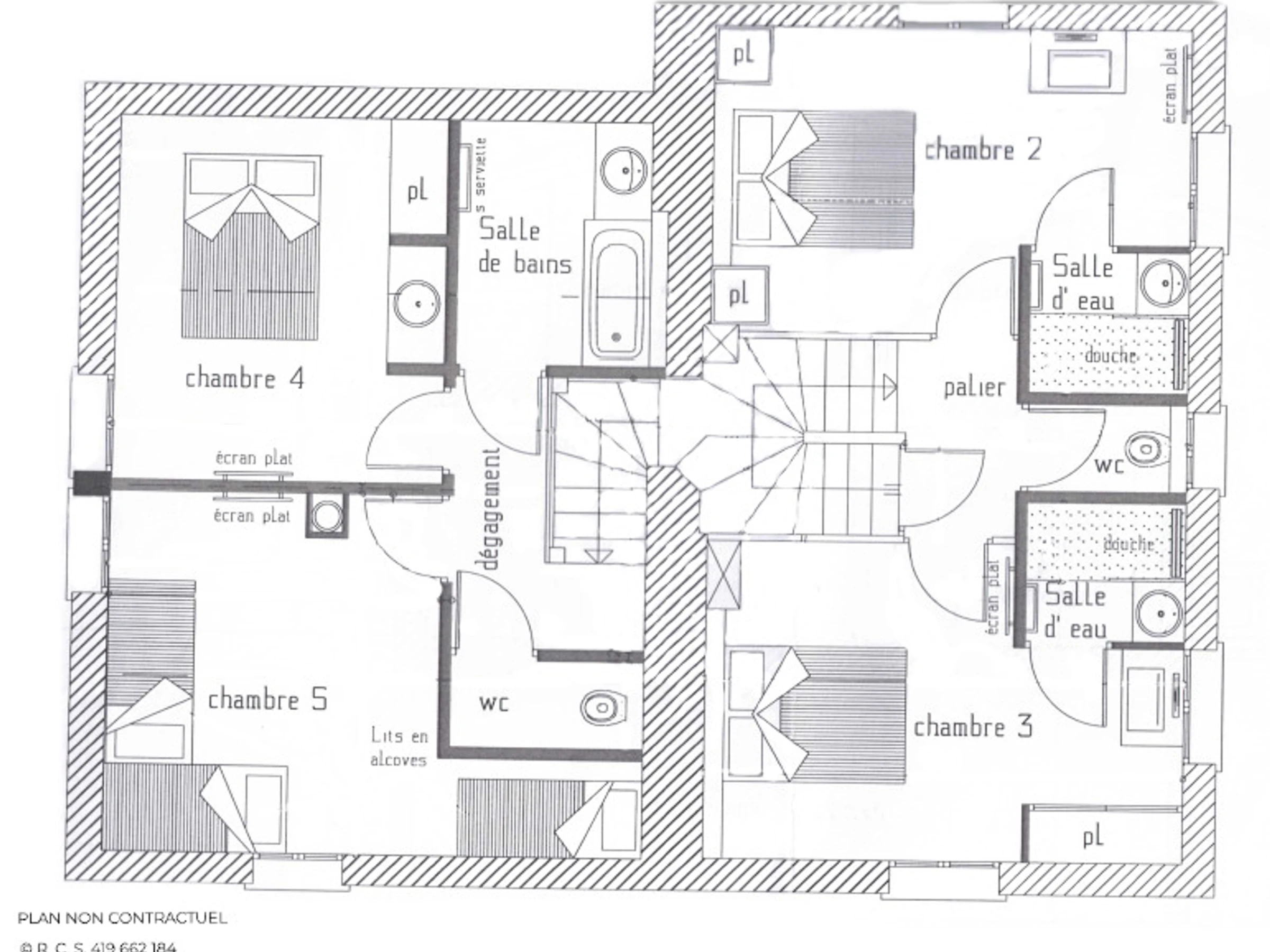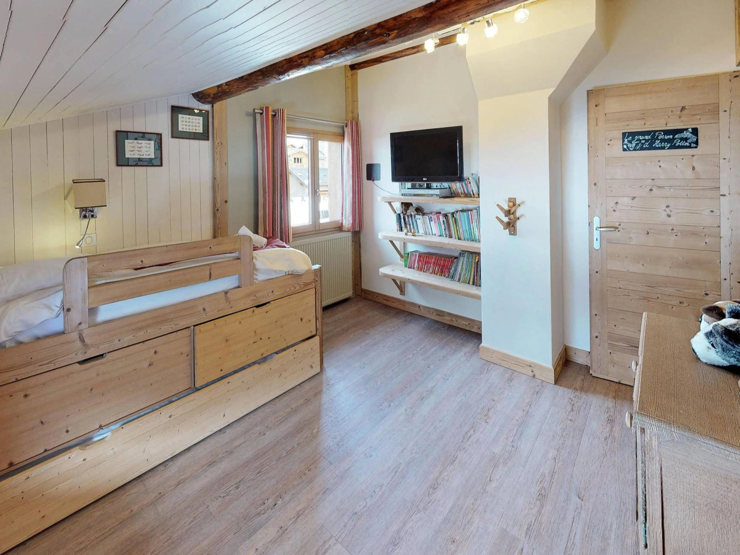 Chambre 5 : 1 lit double en alcove (140x190cm), 1 lit simple (90x190cm), 1 lit tiroir (80),1 télévision