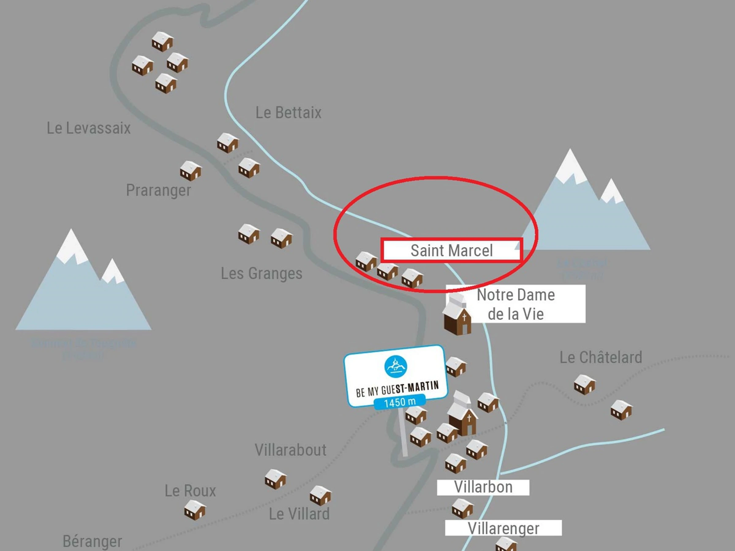 Le Chalet de Manou est situé dans le centre de St Marcel. Ce hameau niché à 1 500 m d'altitude se trouve à 1.5 kilomètres de Saint Martin de Belleville et de l'ensemble des commodités de la station village : commerces (alimentation, magasins de sports, restaurants...), services (école de ski, garderie, pharmacie, Maison du Tourisme...), remontées mécaniques et pistes de ski.