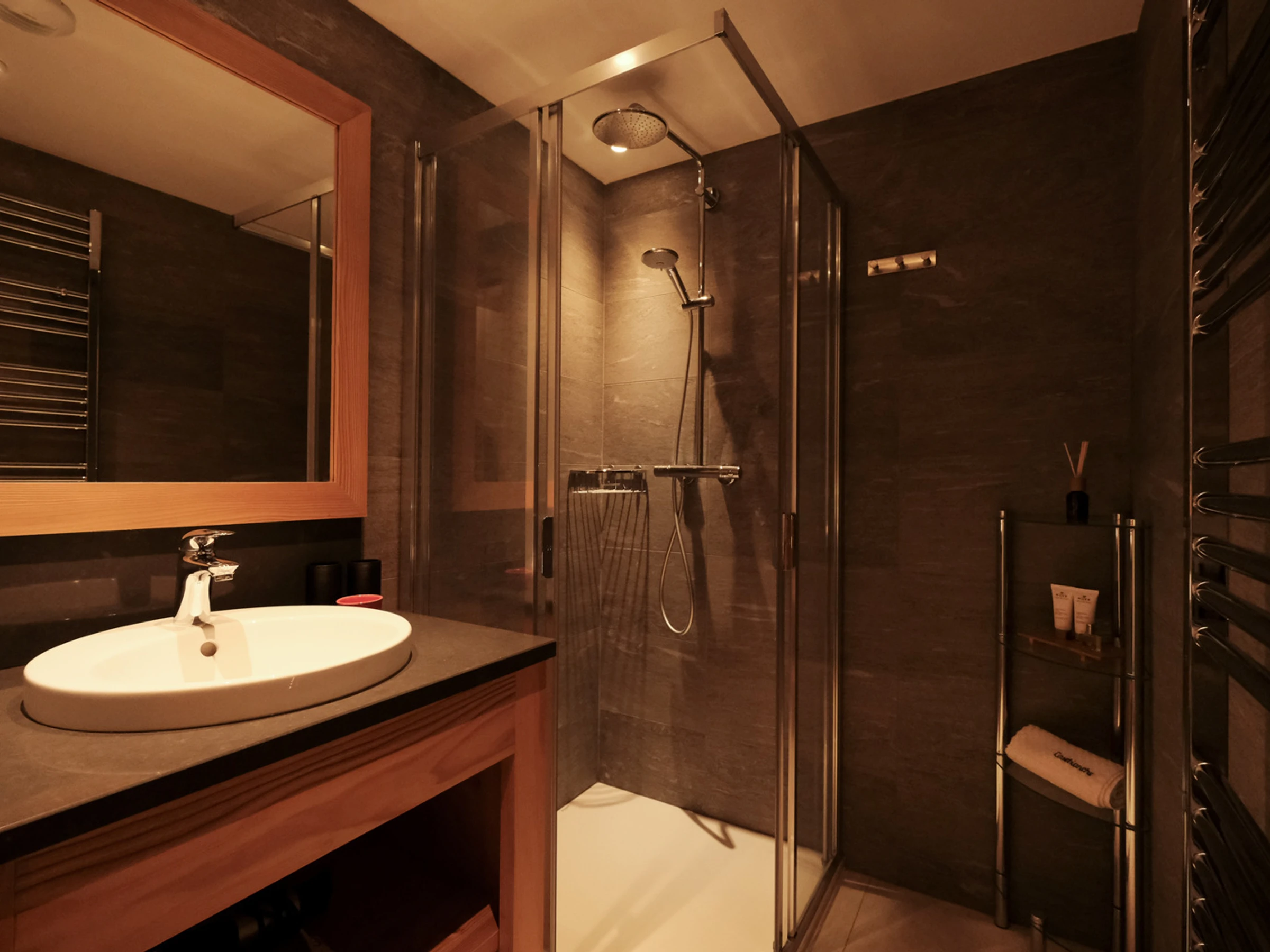 Sauna avec sa grande douche à l’italienne.