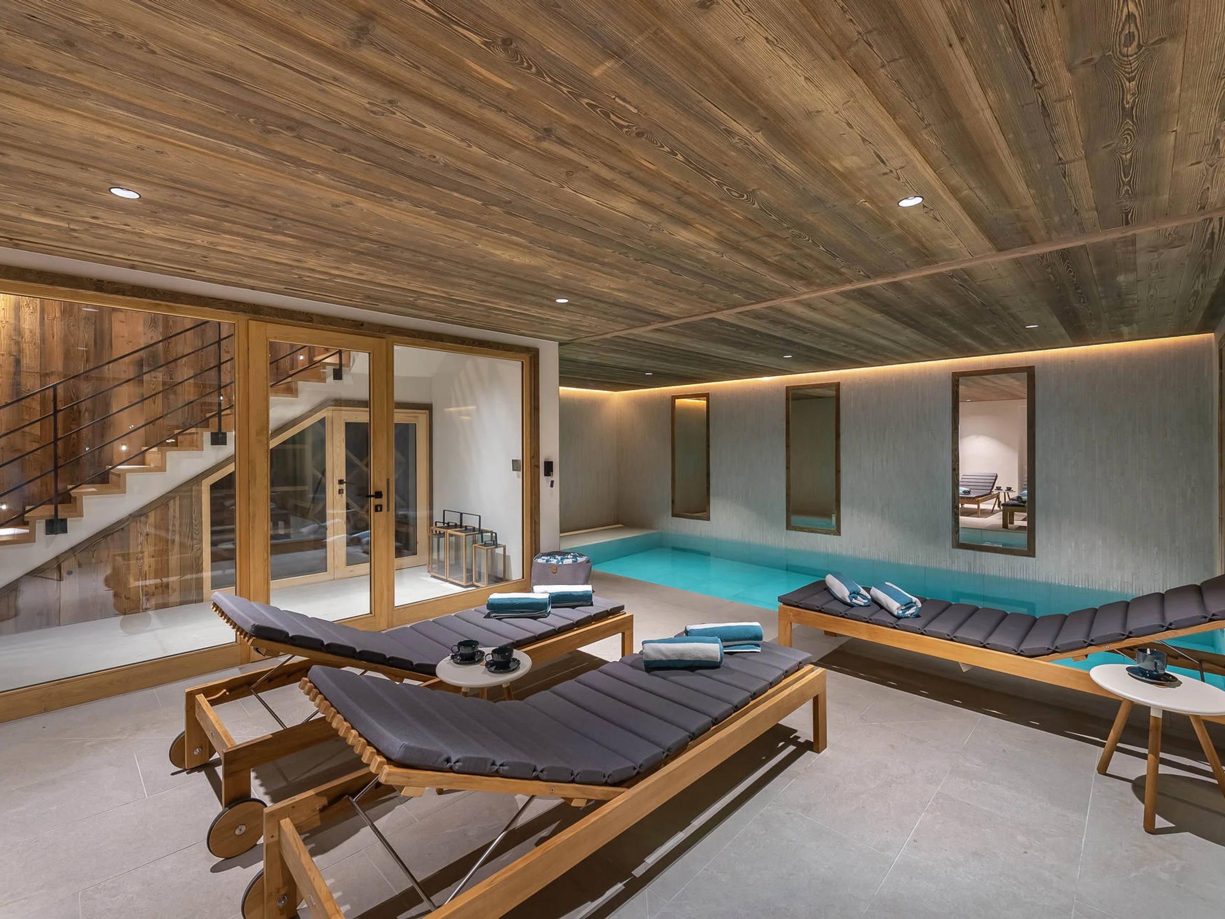 mécaniques. Ce chalet offre des prestations haut de gamme et un maximum de confort grâce à son espace détente avec piscine et sauna.