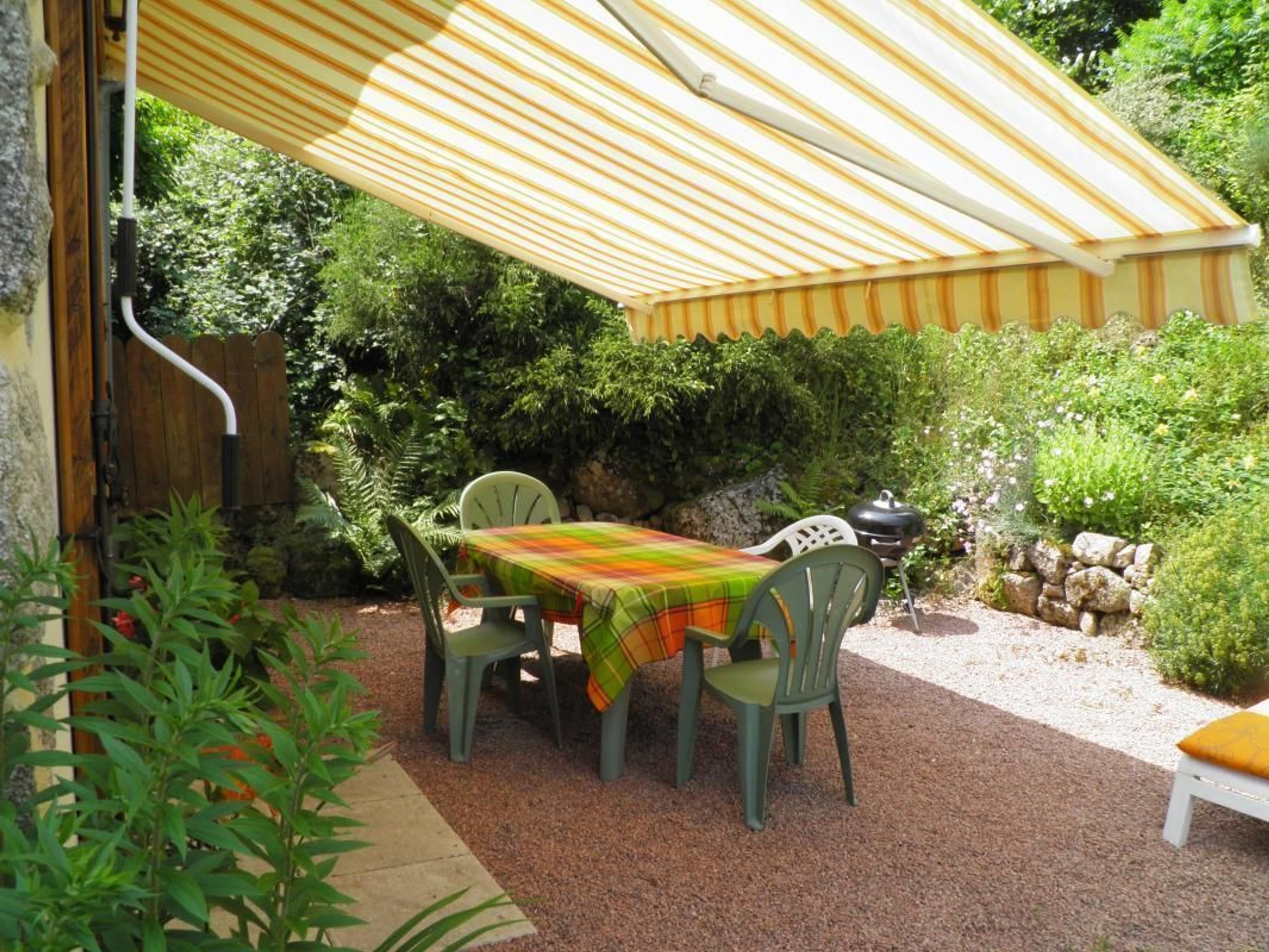 Cour commune et jardin à l'arrière du gîte de 700 m² entouré de pervenches, non clos.