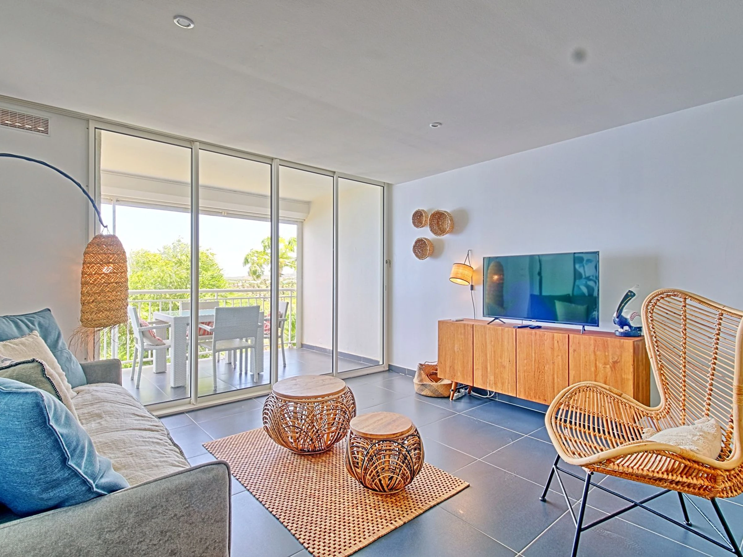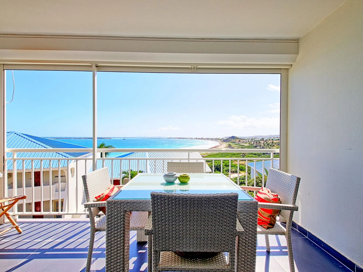 Situé dans la résidence sécurisée de Mont Vernon, à quelques pas de la plage de la Baie Orientale et à proximité des commerces, ce spacieux studio en étage vous offre tout le confort nécessaire pour des vacances agréables. En plus de cela, il offre une vue magnifique sur la baie Orientale et la mer.