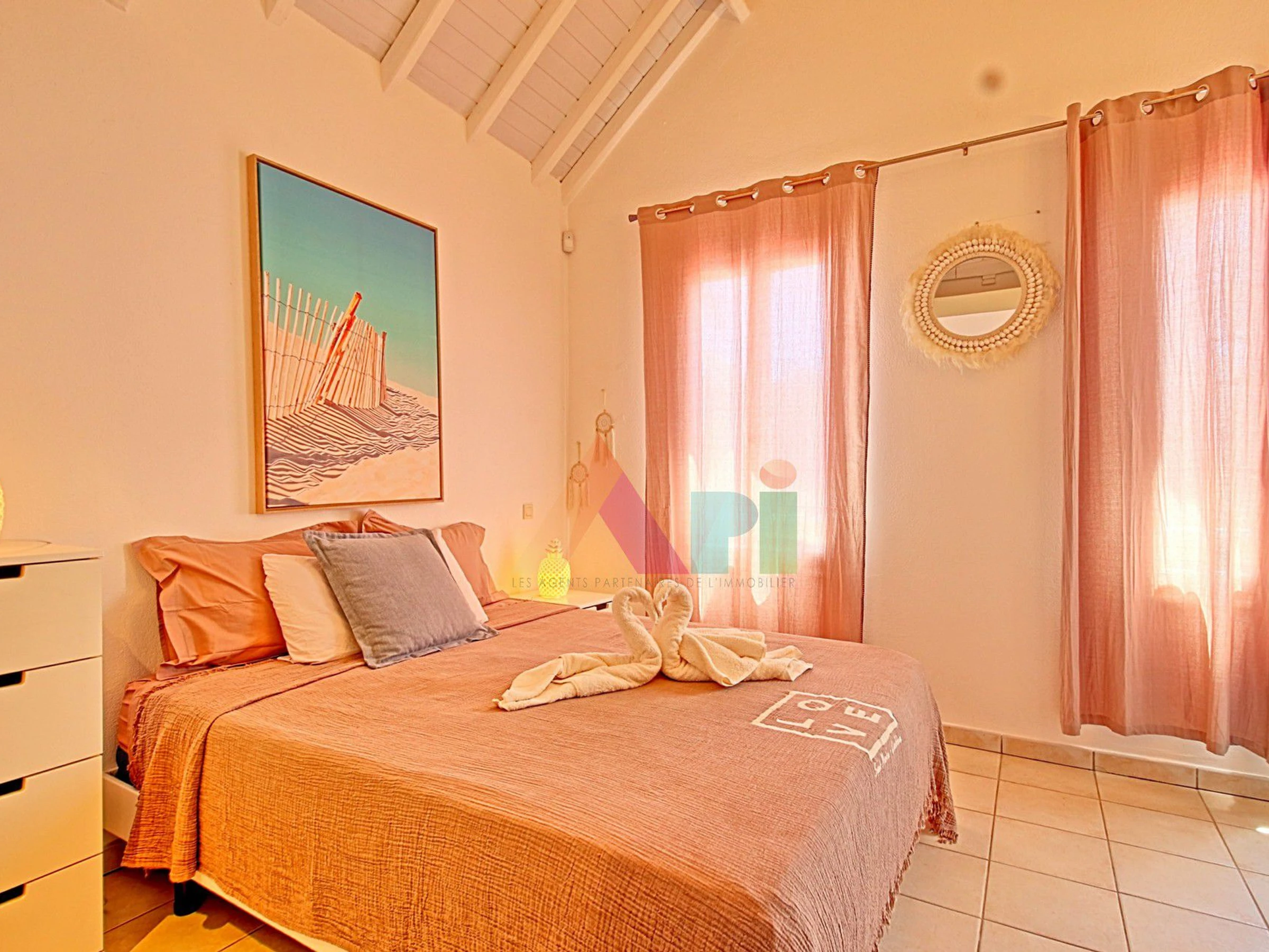 La villa Rainbow vous accueille dans un espace ouvert où la cuisine se marie harmonieusement au salon, favorisant les moments conviviaux en famille ou entre amis. À l'extérieur, une terrasse couverte et une immense terrasse en deck donnent sur la piscine de la résidence, créant le cadre idéal pour des soirées mémorables. Une table pour vos repas en plein air, un salon extérieur et des transats pour vous détendre et un barbecue vous attendent sur le deck , prêts à satisfaire vos envies gourmandes.