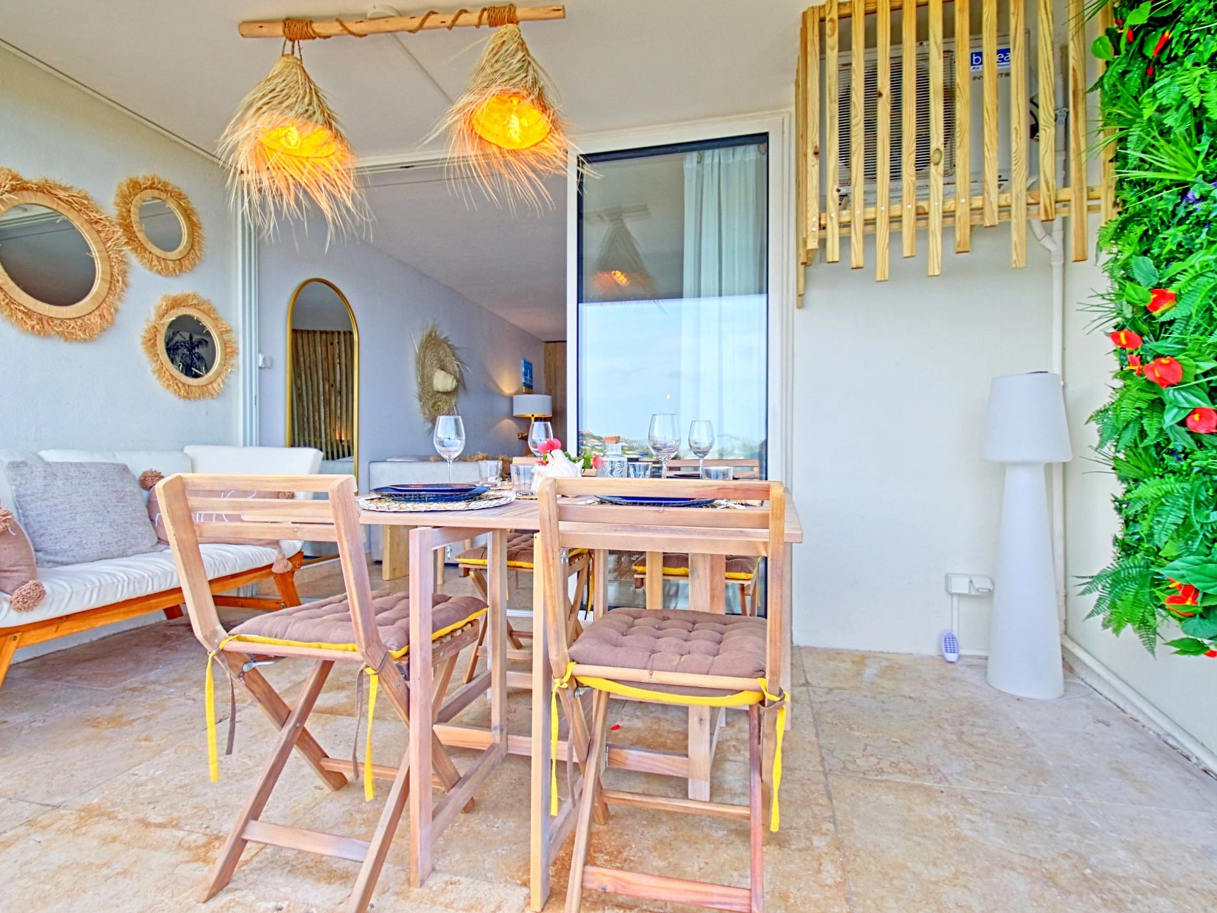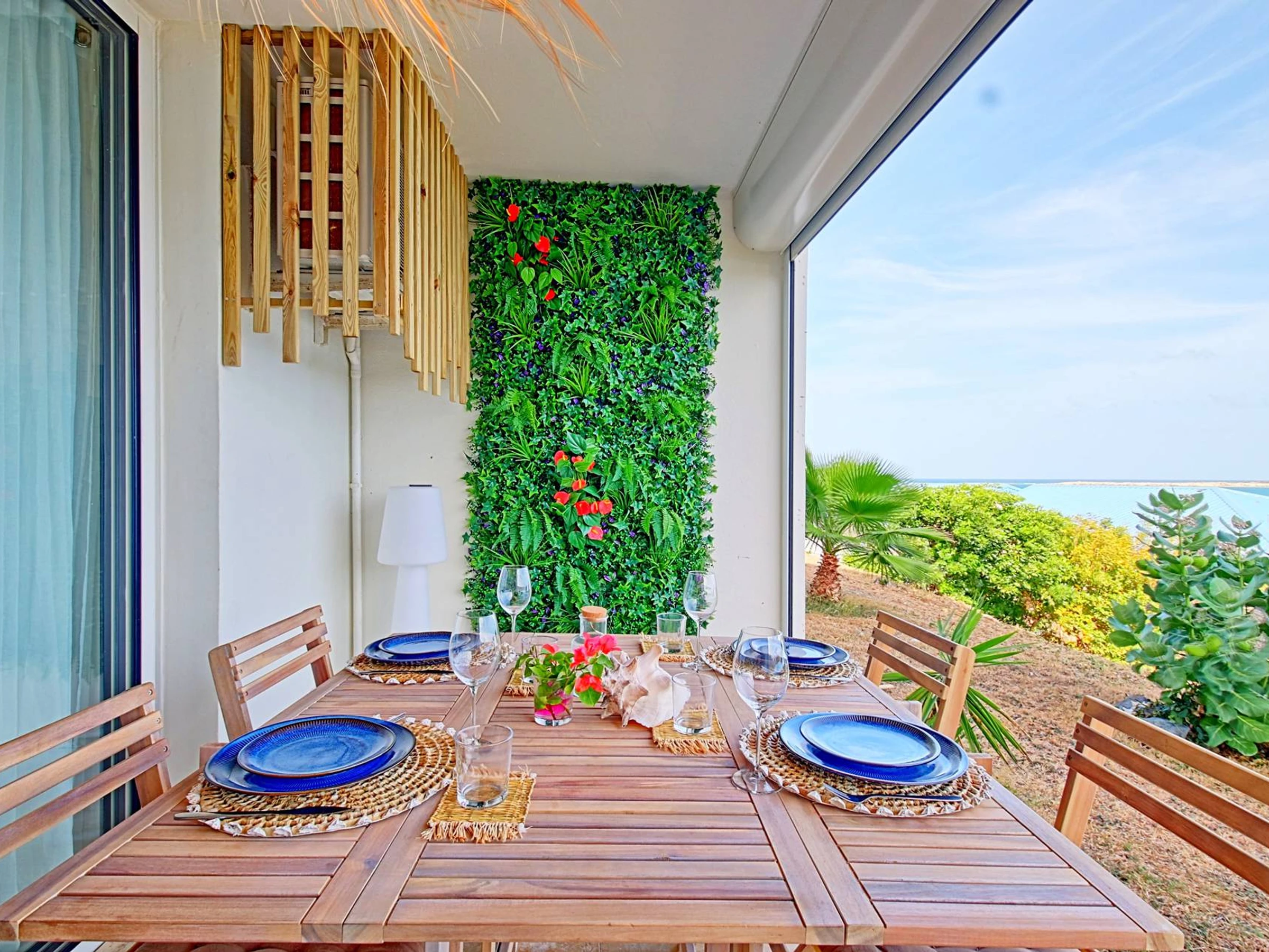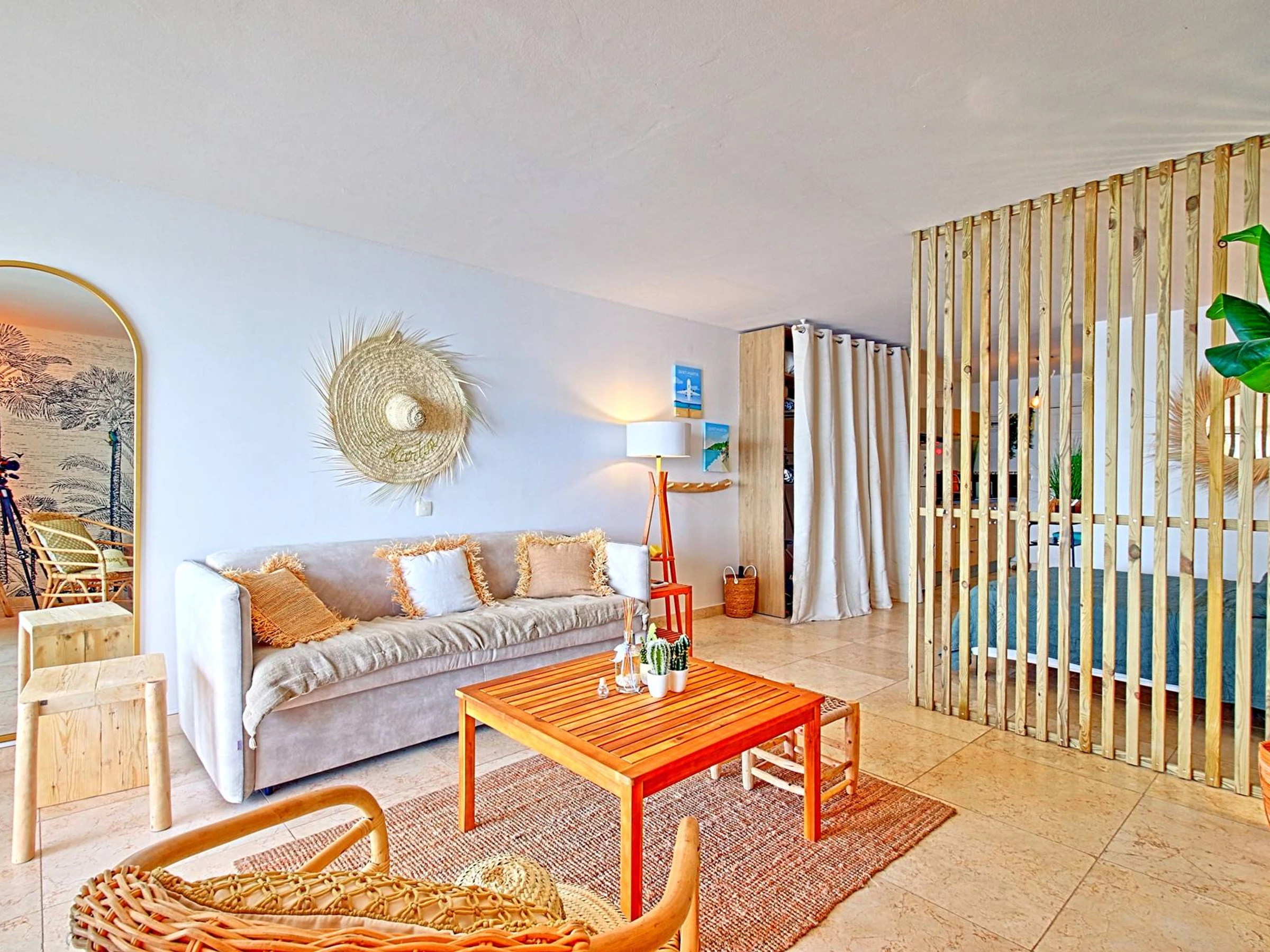 Le studio comprend une entrée avec une cuisine entièrement équipée et aménagée, où vous trouverez tout le nécessaire pour préparer vos repas. Il dispose également d'un espace nuit avec un lit queen size (160x200) et un dressing pour ranger vos affaires. Le salon/séjour est équipé d'un véritable canapé-lit (140x190) et s'ouvre sur une terrasse couverte où vous pourrez vous détendre en écoutant le bruit des vagues.