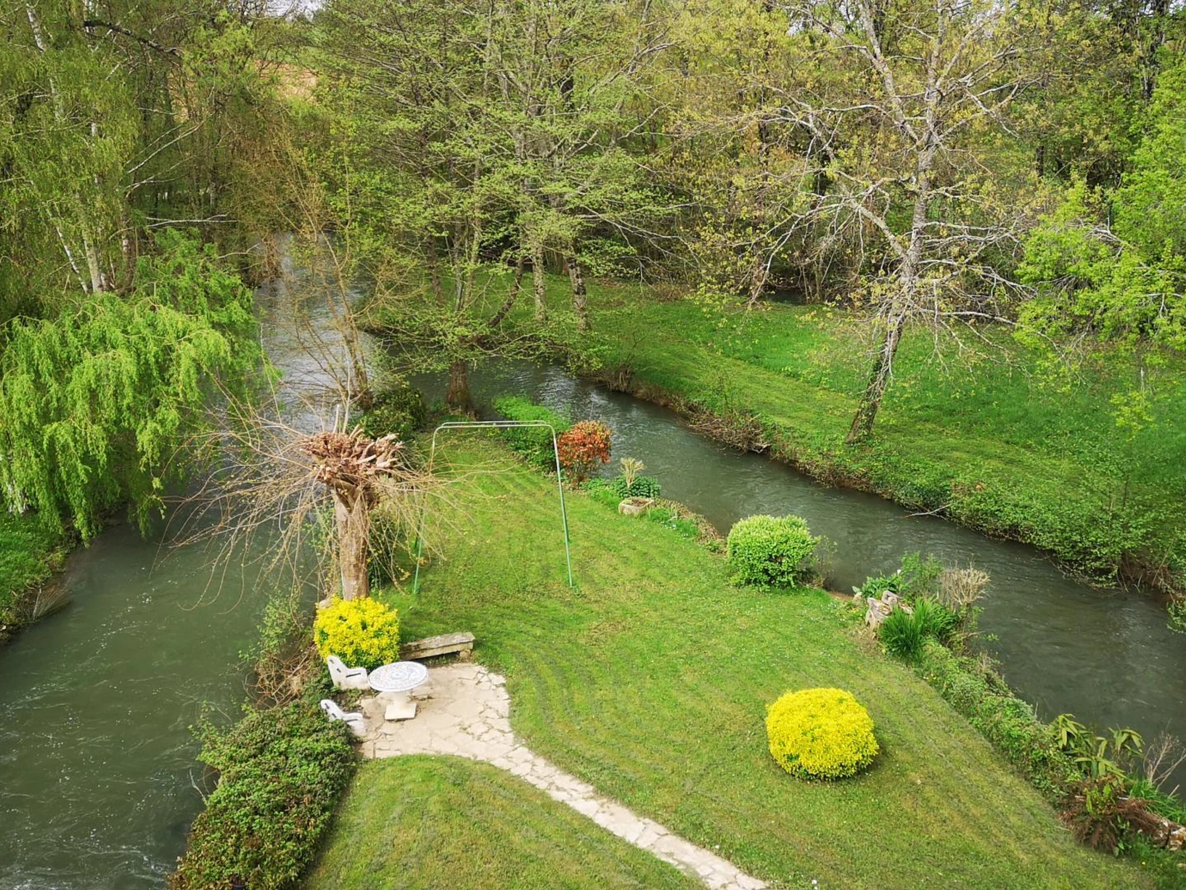 Au RDC : cuisine, salon salle à manger, bureau, cellier avec douche et WC indépendants. Véranda avec vue sur la rivière.