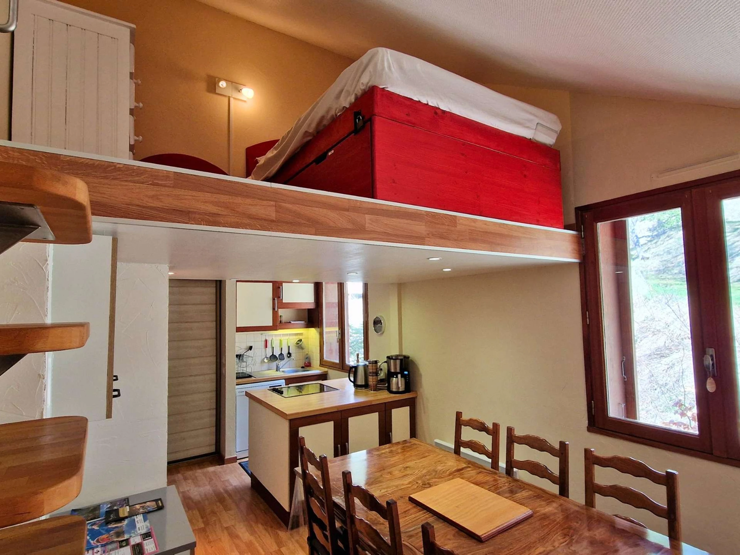 - Une première mezzanine avec 1 lit 2 places (accessible par une échelle depuis la salle à manger).