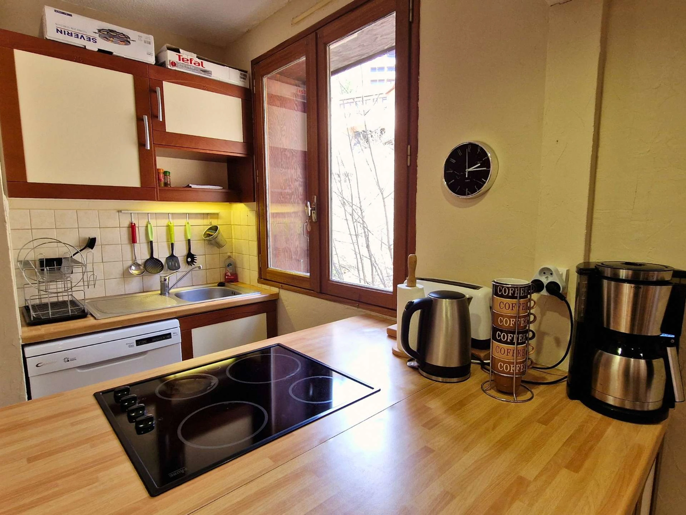 - Une cuisine ouverte toute équipée (réfrigérateur, plaques induction, lave-vaisselle, four, micro-onde, cafetière filtre).
