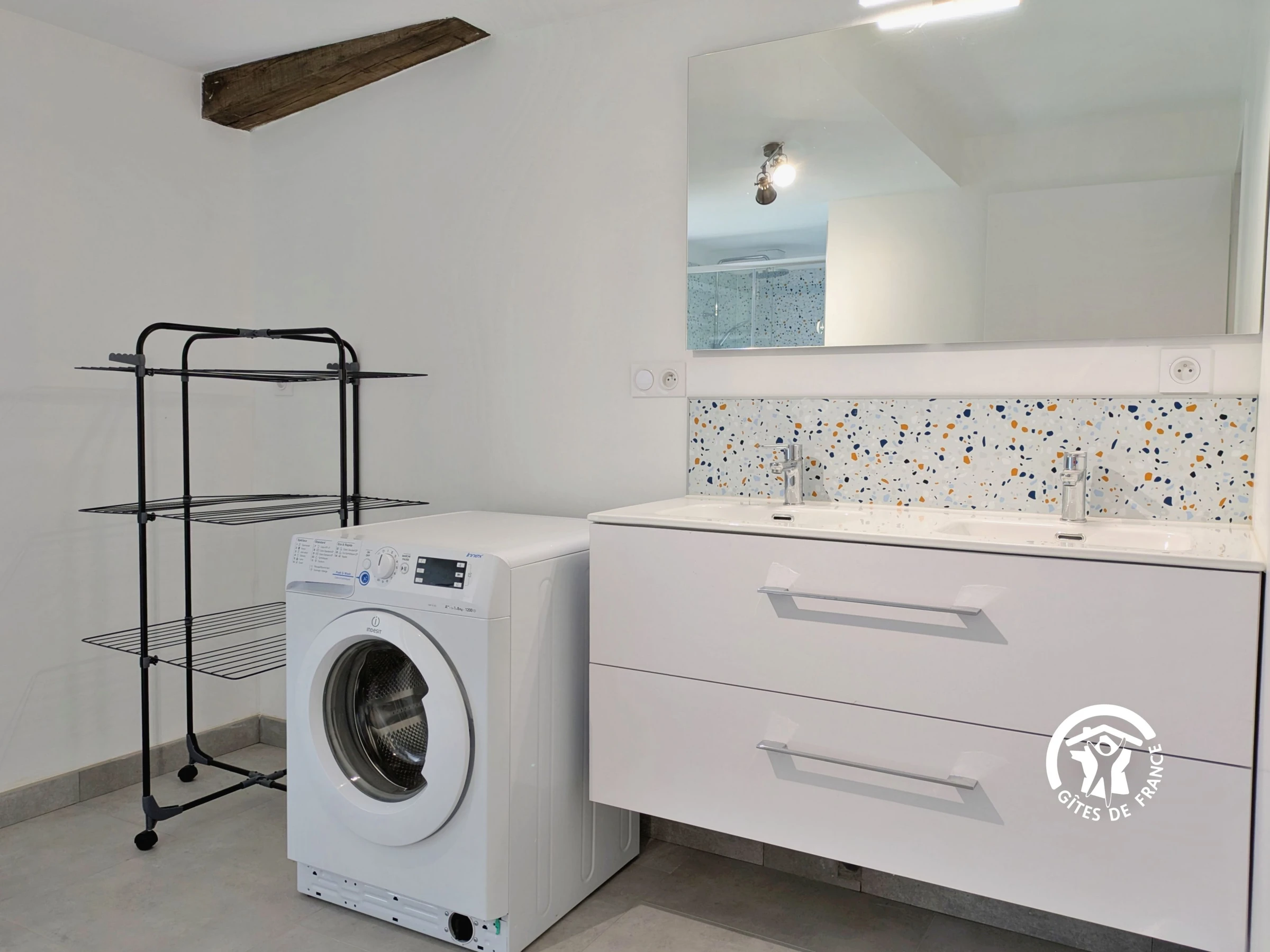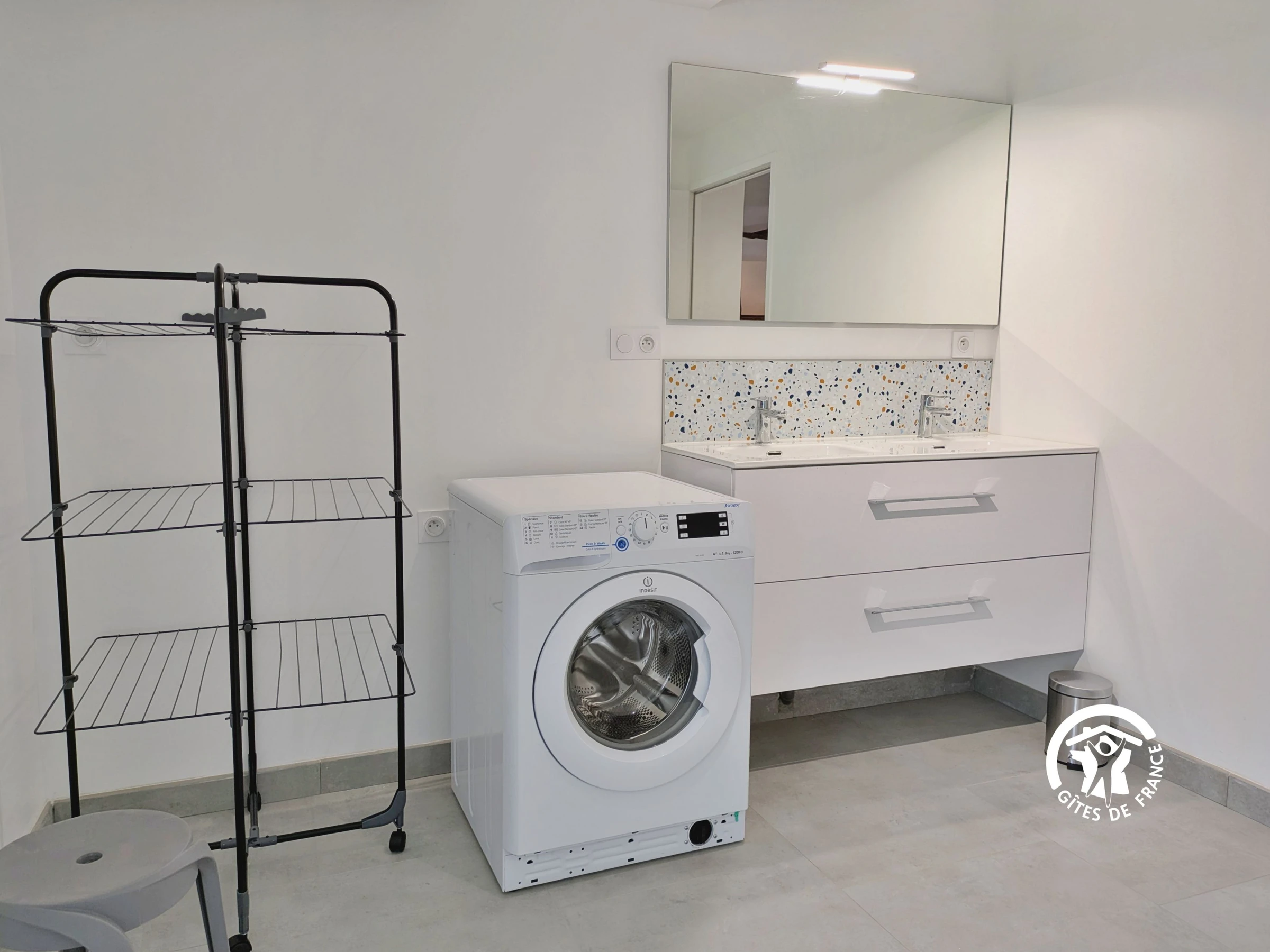 Séjour professionnel : 3 personnes maximum, ménage obligatoire Maison de plein pied : Salon séjour (50m²) avec table à manger, canapés, télévision, cheminée - Cuisine équipée (20m²) four, plaque de cuisson 3 feux, hotte, micro-ondes, réfrigérateur avec compartiment congélateur, lave-vaisselle, bouilloire, grille-pain, machine à café filtre, machine à café dosettes, machine à café italienne type Bialetti, mixeur - WC indépendant (2.8m²) avec barre d'appuie et lave-mains - Salle d'eau (9m²) douche avec chaise et barre d'appui, lavabo, sèche serviettes, sèche cheveux, machine à laver le linge - Chambre 1 (12m²) lit 160*200, placard - Chambre 2 (13.5m²) lit 160*200, placard - Chambre 3 (10m²) lit 140*190, étagère.