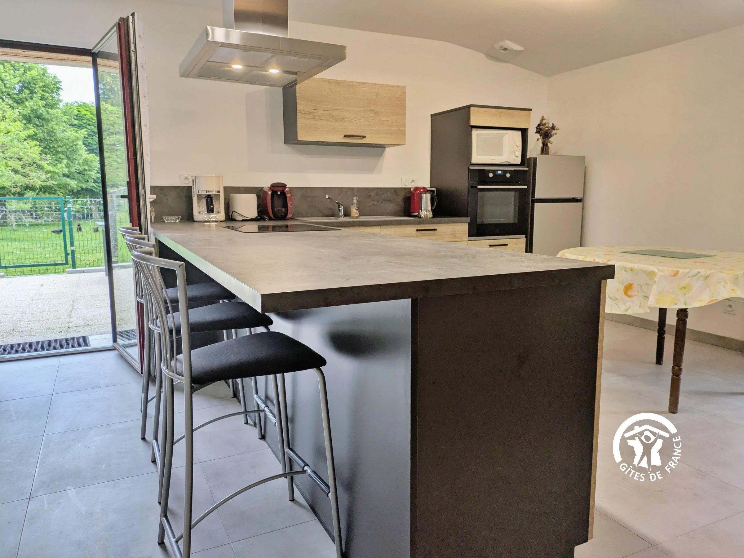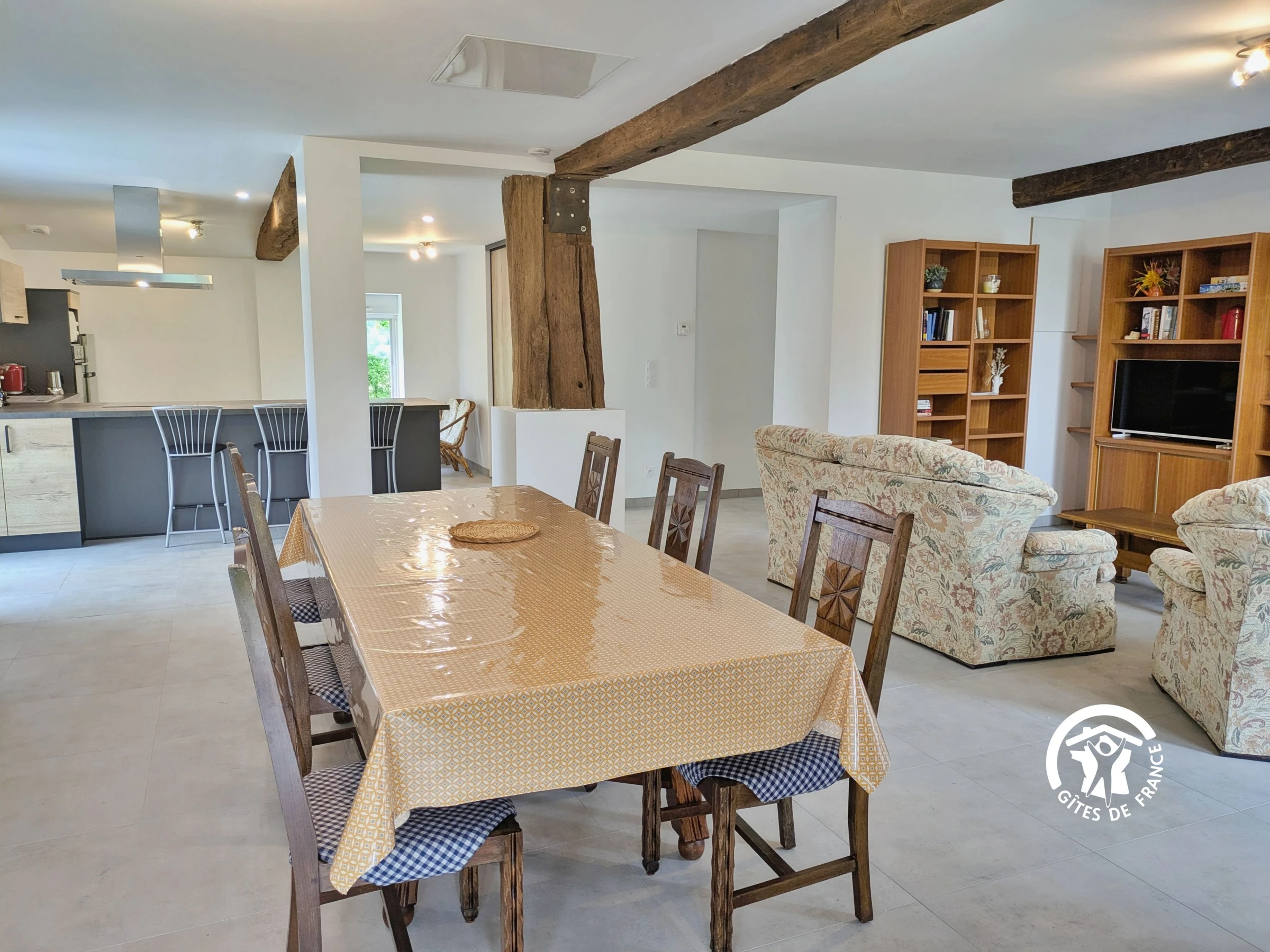 Ce gîte de plain-pied, récent et confortable, vous accueille pour un séjour convivial en famille ou entre amis. Vous y apprécierez sa grande cuisine ouverte et son salon spacieux, parfaits pour partager de bons moments.
