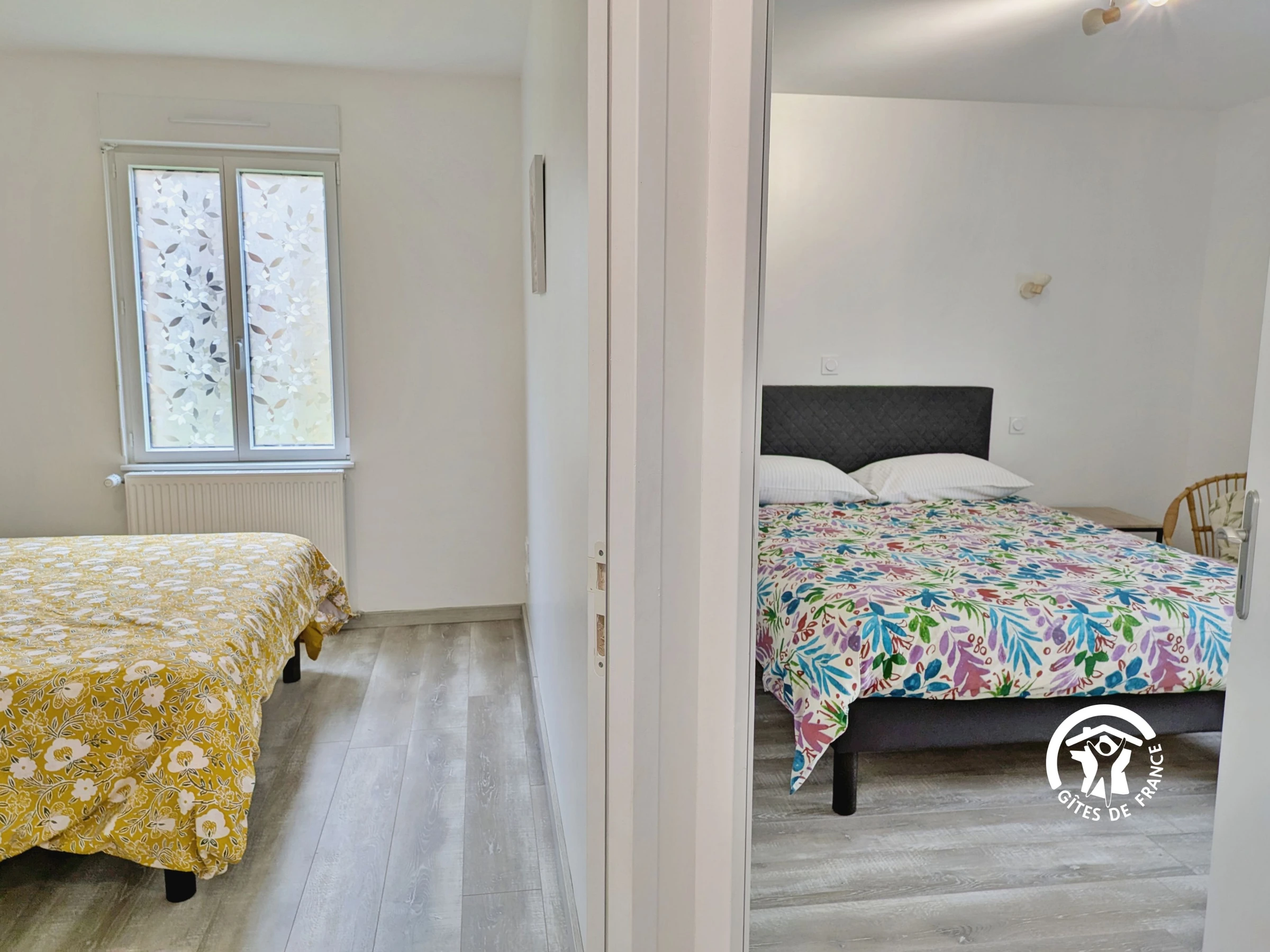 Animal non admis (chien sur la propriété). Gite de plein pied. Grandes pièces. 3 chambres au RDC.
