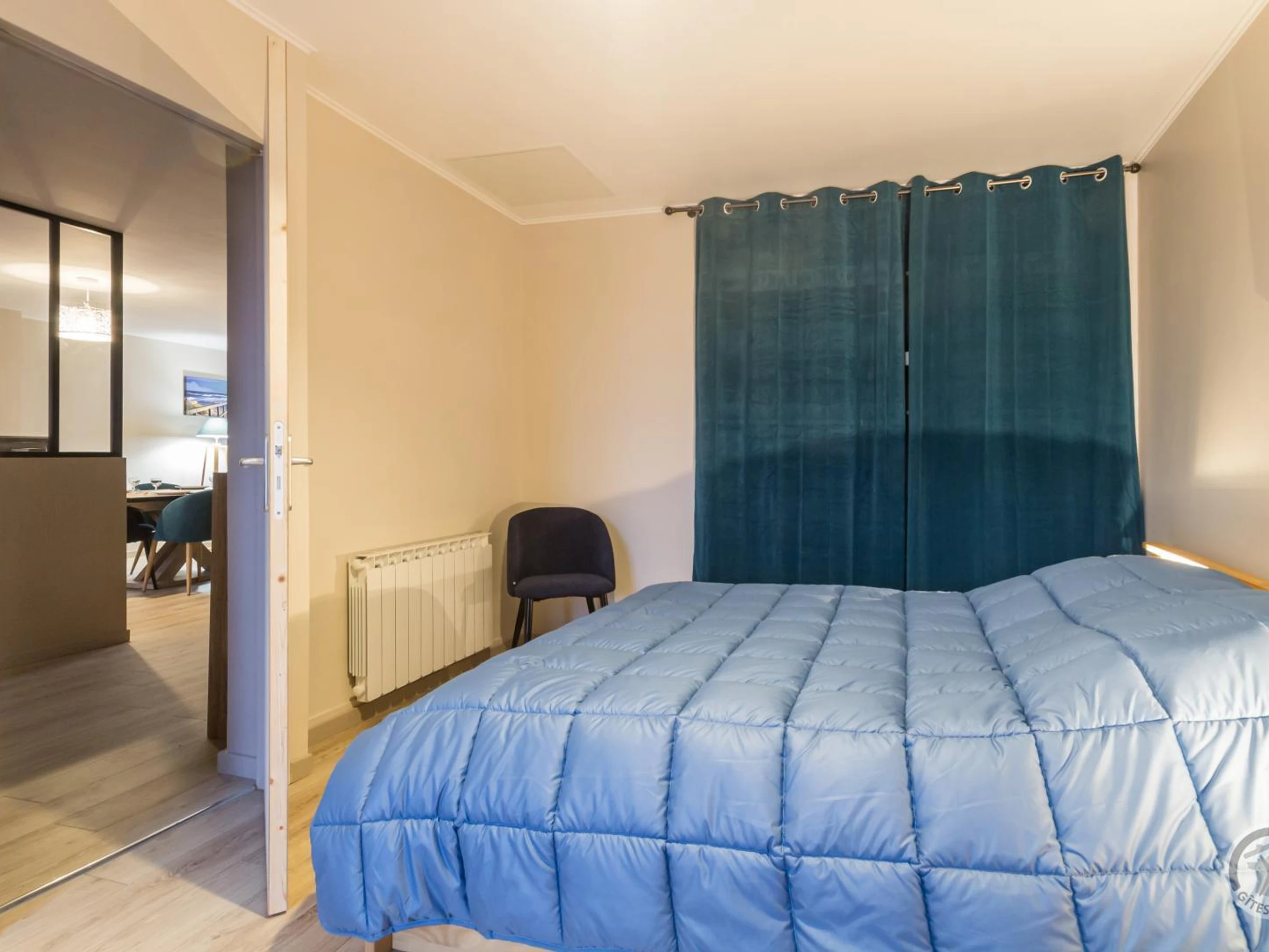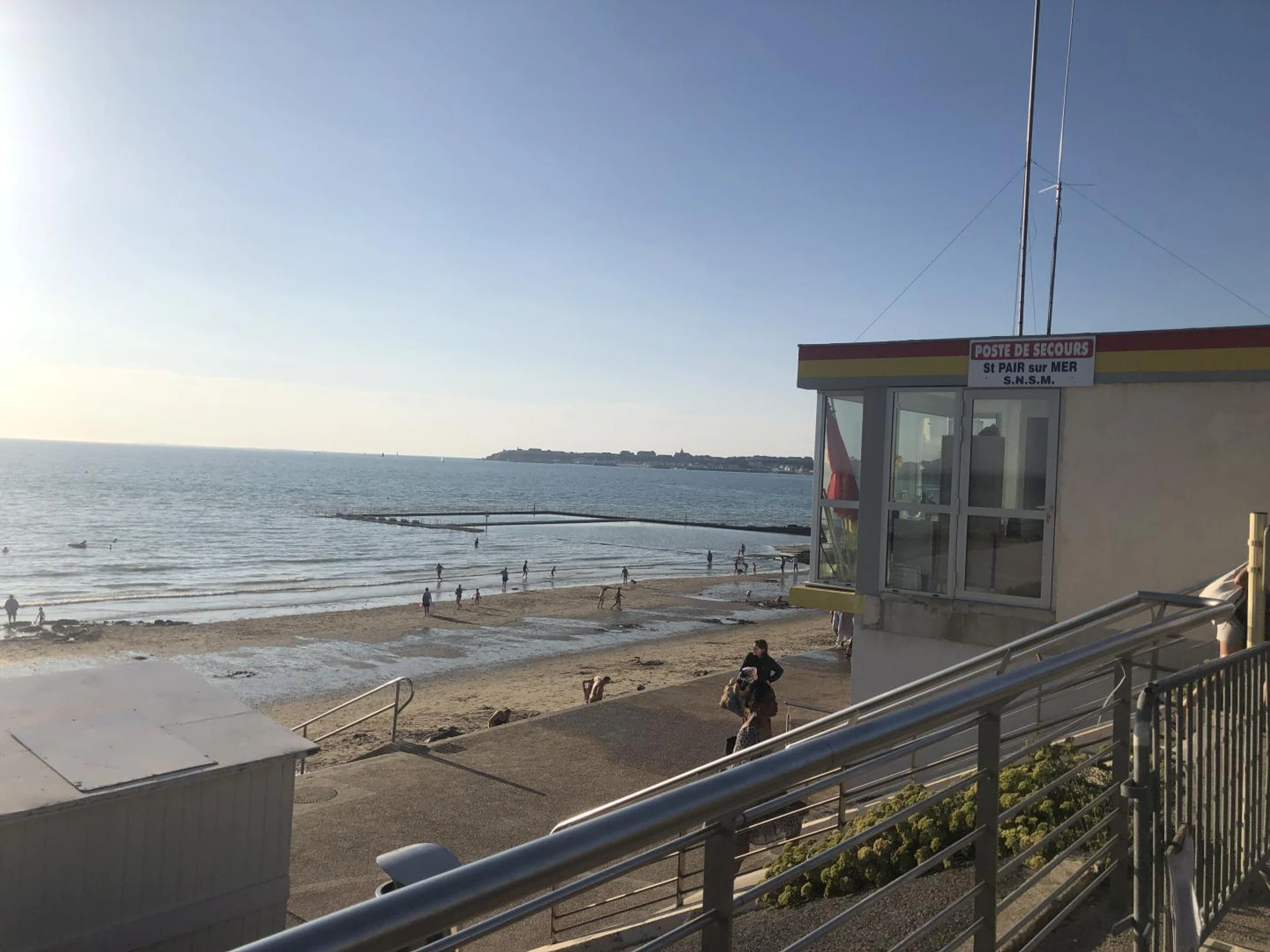 Appartement au 2ème étage d'une résidence sans ascenseur. Séjour (TV, internet wifi, hifi, DVD blue ray). Espace cuisine ouvert sur séjour (four, plaques induction, réfrigérateur avec congélateur, lave-vaisselle, micro-ondes, machine expresso). 1 chambre (lit 160x200) avec placard mural. Chambre 2 (3 lits 90x200) avec placard mural. Salle d'eau avec WC (lave-linge). Équipement bébé sur demande. Chauffage électrique compris. Service ménage en supplément. Draps fournis. Linge de maison en location. Pas de stationnement privé. Au coeur du village de St Pair sur Mer, ce bel édifice en pierre dispose au dernier étage d'un superbe appartement meublé. Tombés sous le charme de cette petite station balnéaire aux portes de Granville, les propriétaires ont entièrement réaménagé les 90m² disponibles. Le grand séjour offre ainsi un espace cuisine très confortable, un vrai salon pour toute la famille et une entrée dégagée pour plus de commodités. La lumière y est traversante et le coup d'oeil sur la corniche et le port de Granville est remarquable depuis la cuisine comme de la chambre parentale. Depuis cette butte et ce quartier résidentiel très paisible, vous pourrez descendre à pied rejoindre les commerces tout proche (300m) et bien sûr la grande plage (500m). La piscine d'eau mer vous assure des baignades quelque soit les marées et le casino est une très belle idée de sortie en famille!