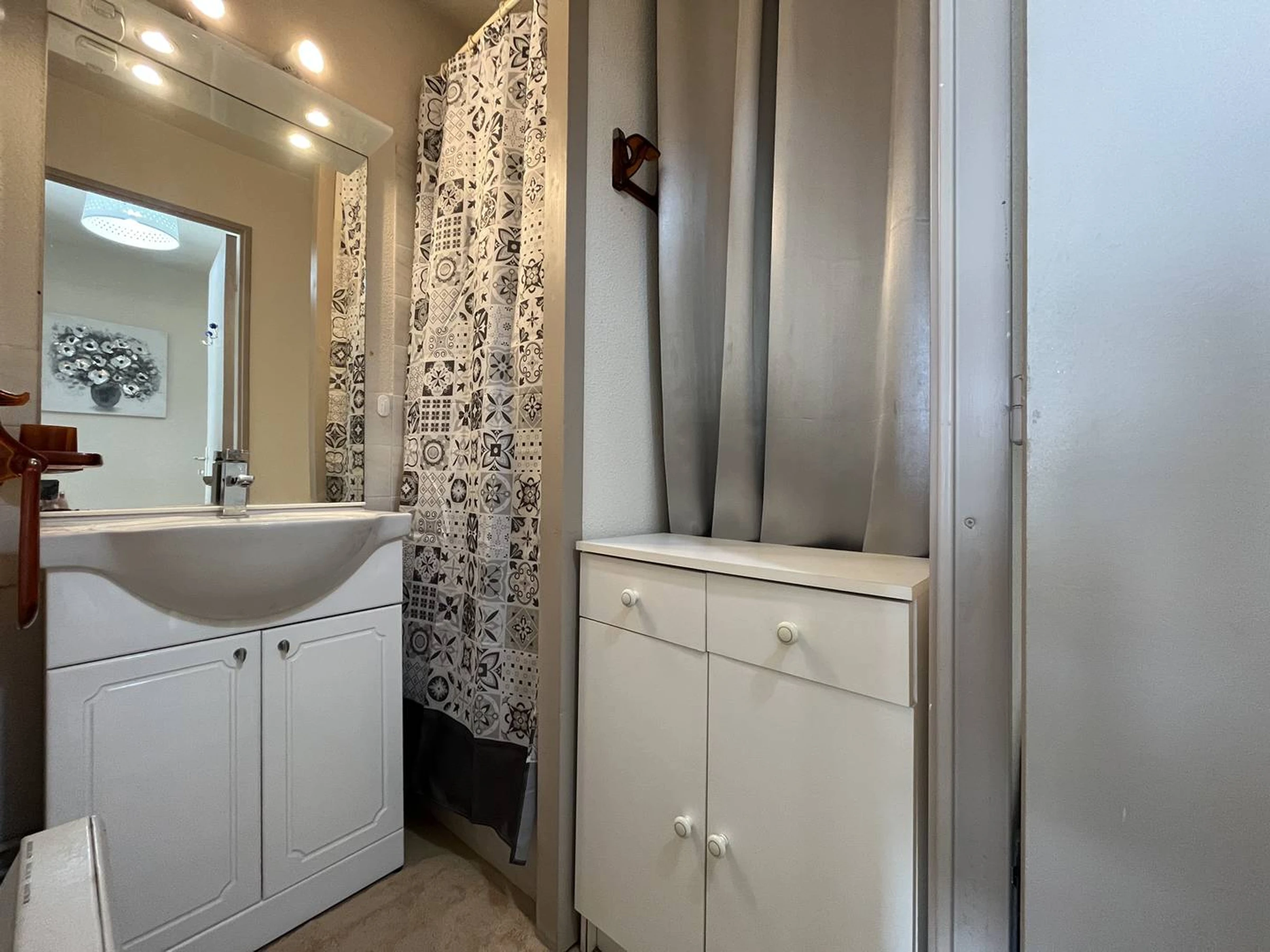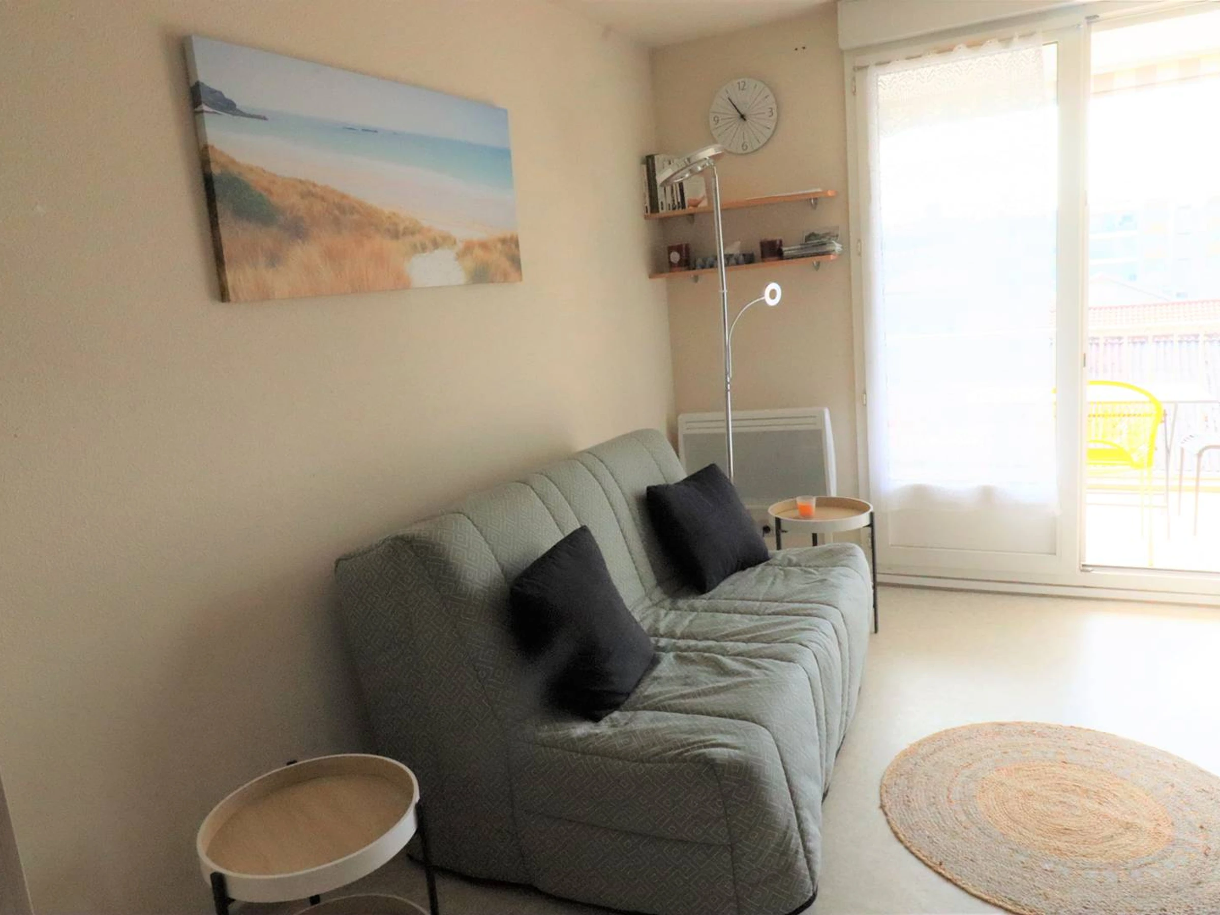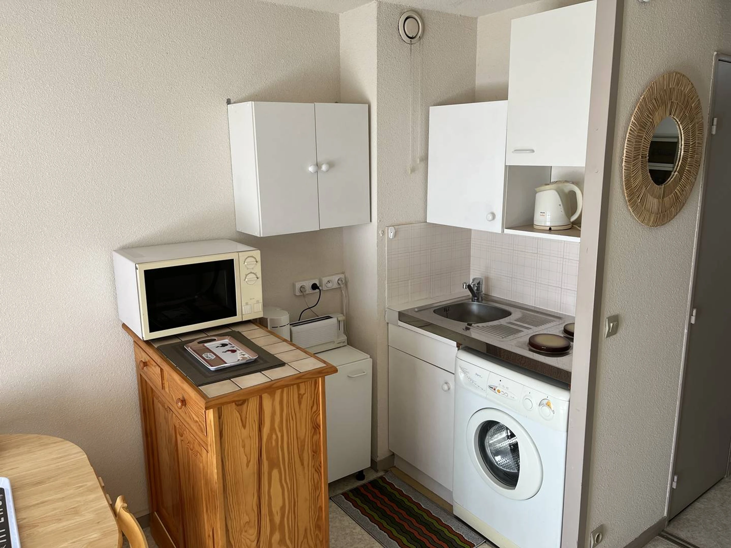 Venez profiter de la charmante station balnéaire de Saint-Palais-sur-Mer dans ce studio, classé 1 étoile, situé à 400 m des plages et à deux pas des commerces. Situé au 2ème étage avec ascenseur, ce studio dispose d'une entrée avec un couchage (80x190), d'une salle d'eau (douche fermée par rideau et meuble vasque) ainsi qu'un wc séparé. Ce coin couchage peut être séparé de la pièce de vie par une porte coulissante. La pièce principale ouvre sur un balcon couvert (table et chaises) avec store banne (canapé bz 140cm), une kitchenette toute équipée (plaque électrique 2 feux, micro-ondes, bouilloire, cafetière filtre, grille-pain, lave-linge, frigo-congélateur), un coin repas avec télévision écran plat et placard. Pour votre stationnement, un garage fermé à clé en sous-sol (4.80 de long sur 2.77 de large). Bonne situation pour de belles vacances !!