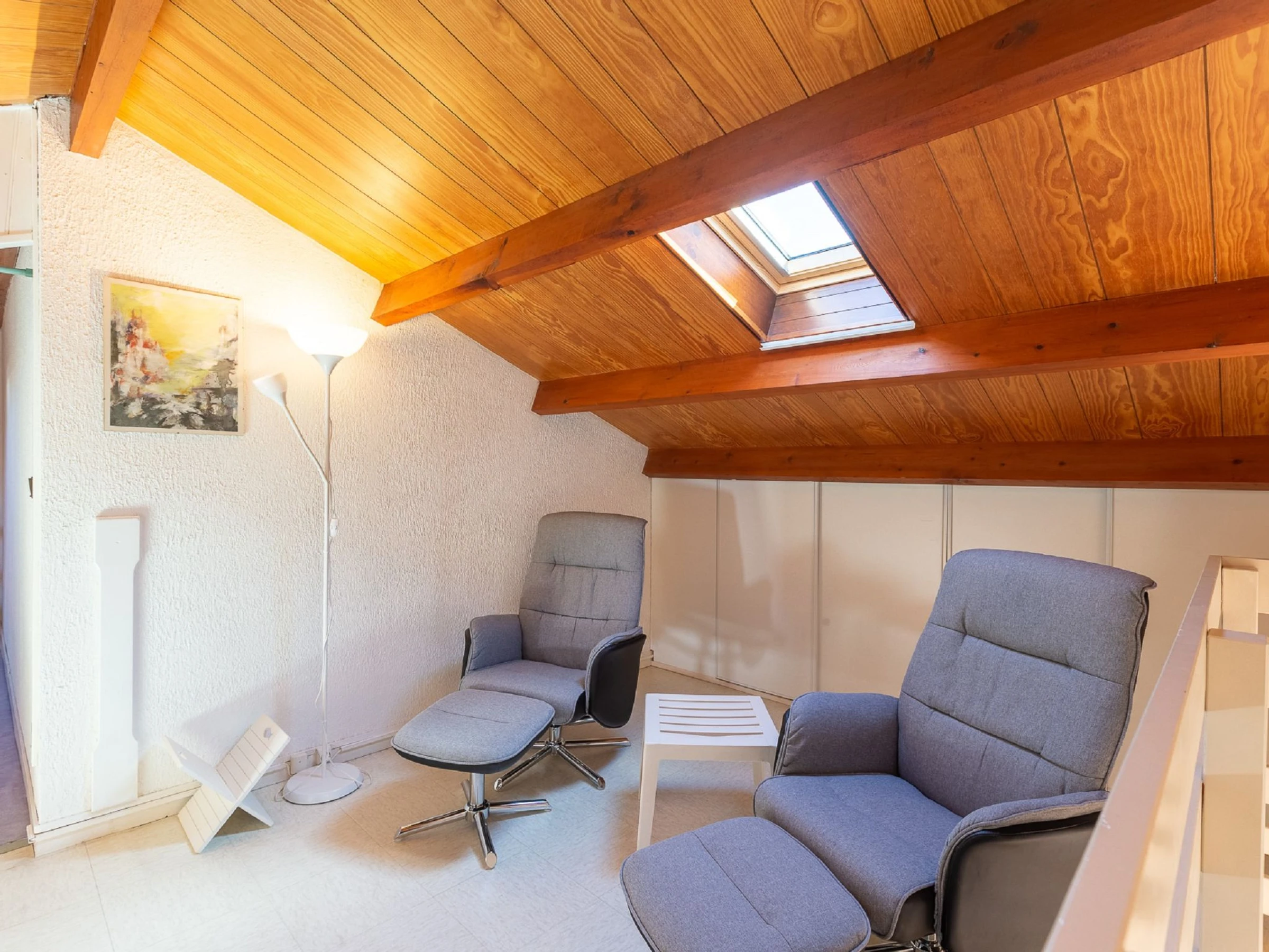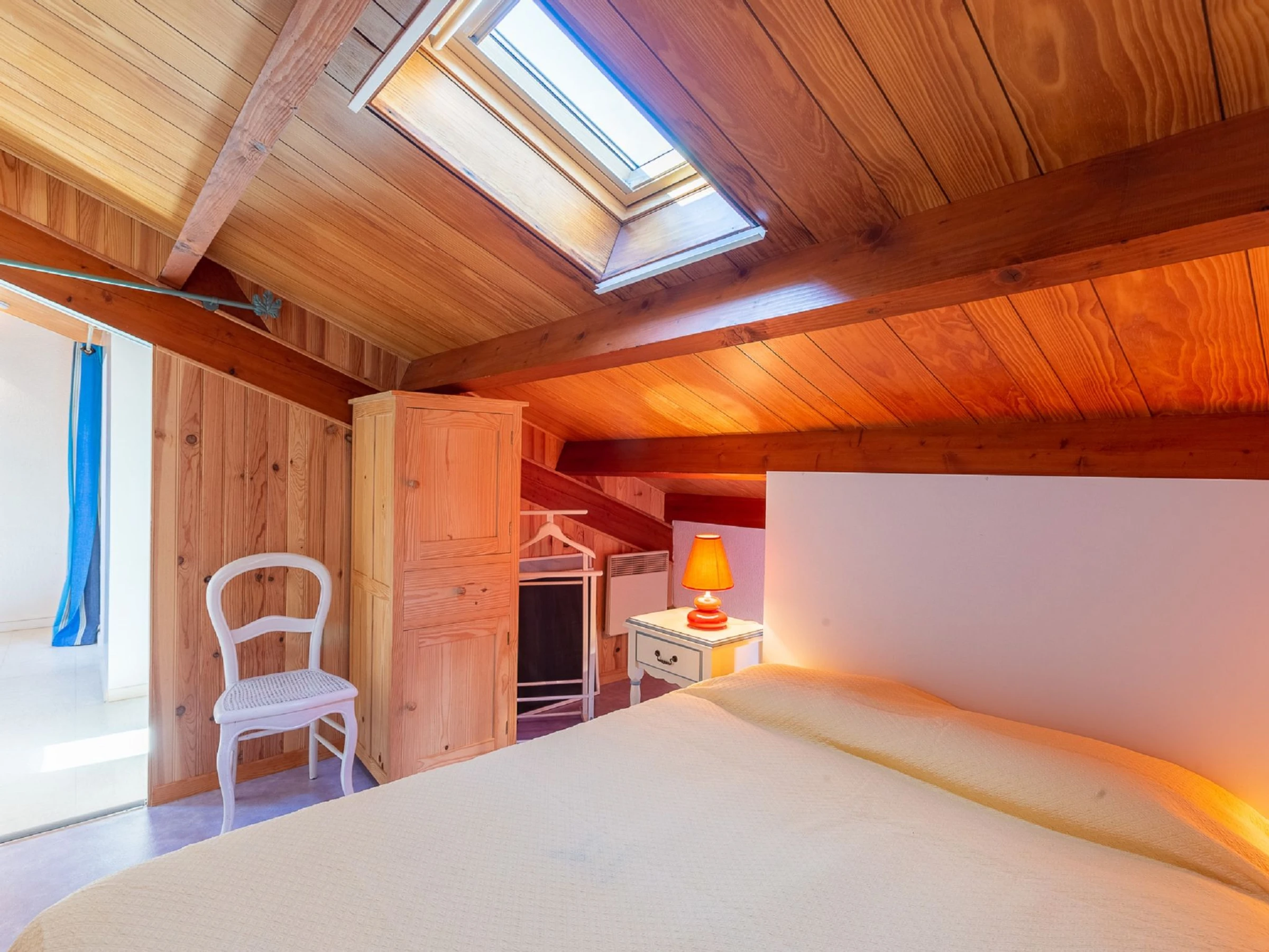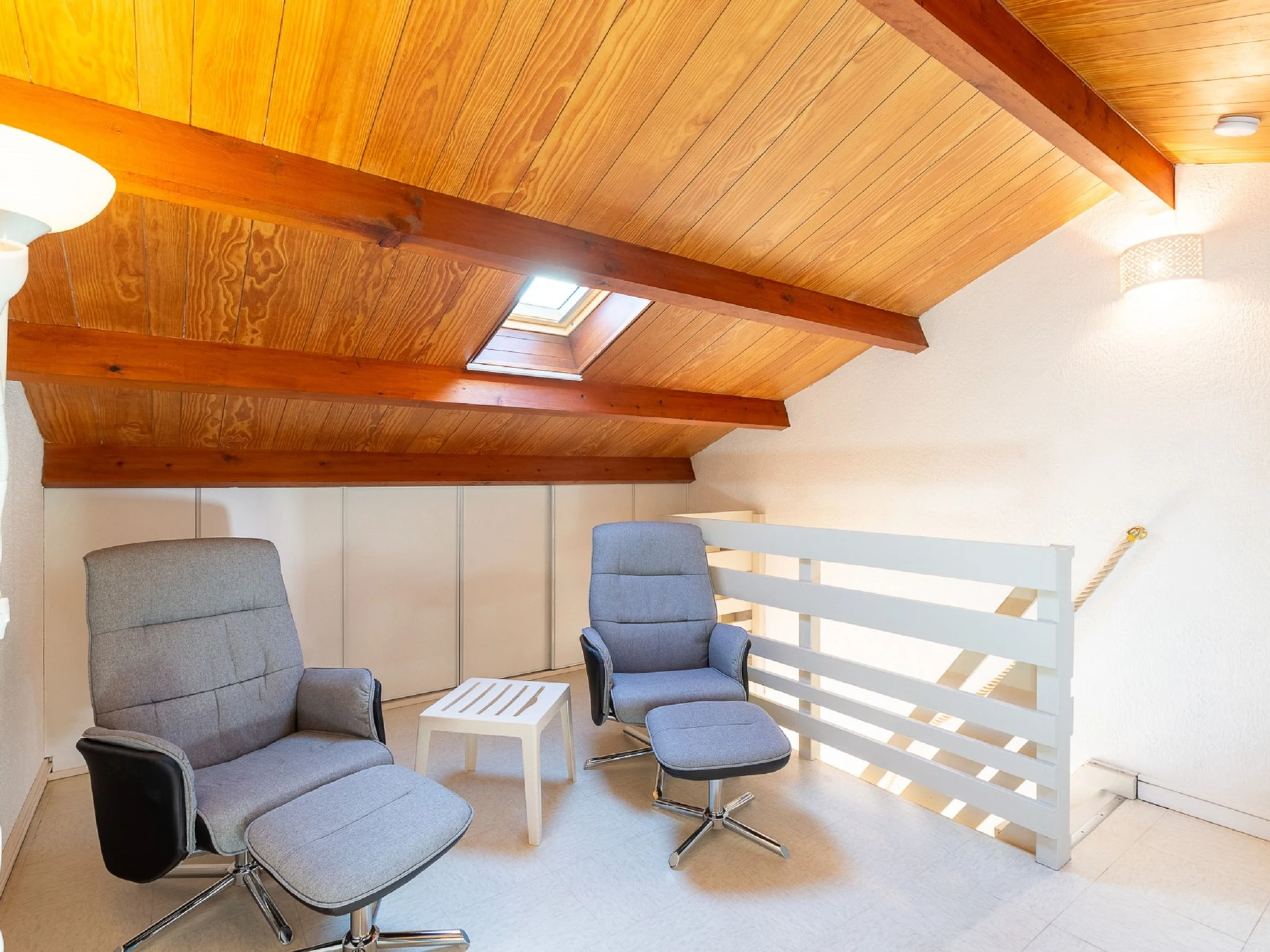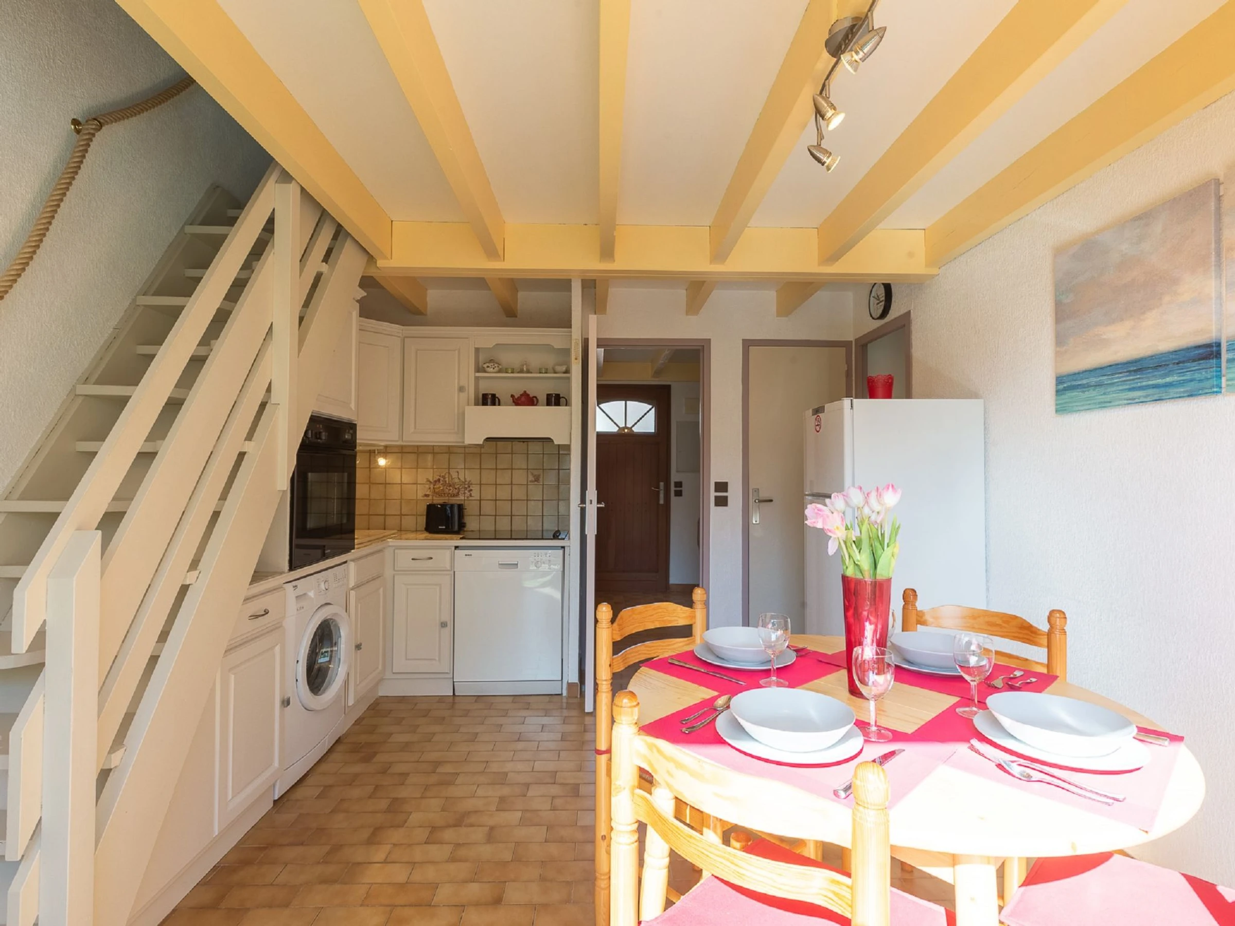Maison mitoyenne 3 pièces 45 m2. Aménagement fonctionnel: séjour/salle à manger avec TV (écran plat). Sortie sur la terrasse. 1 chambre avec 1 lit double (1 x 160 cm, longueur 190 cm). Coin cuisine (4 plaques de cuisson, four, lave-vaisselle, grille-pain, four micro-ondes, cafetière électrique). Salle de bains, WC séparé. Chauffage électrique. À l'étage supérieur: salon mansardé avec fenêtre sous le toit avec TV (écran plat). 1 chambre, mansardée avec fenêtre sous le toit avec 1 grand-lit (1 x 140 cm, longueur 190 cm). WC séparé. Terrasse 25 m2. Meubles de terrasse, barbecue électrique. A disposition: lave-linge, fer à repasser, sèche-cheveux. Internet (Connexion WIFI, en sus). Place de parking No 18. Veuillez noter: détecteur de fumée.