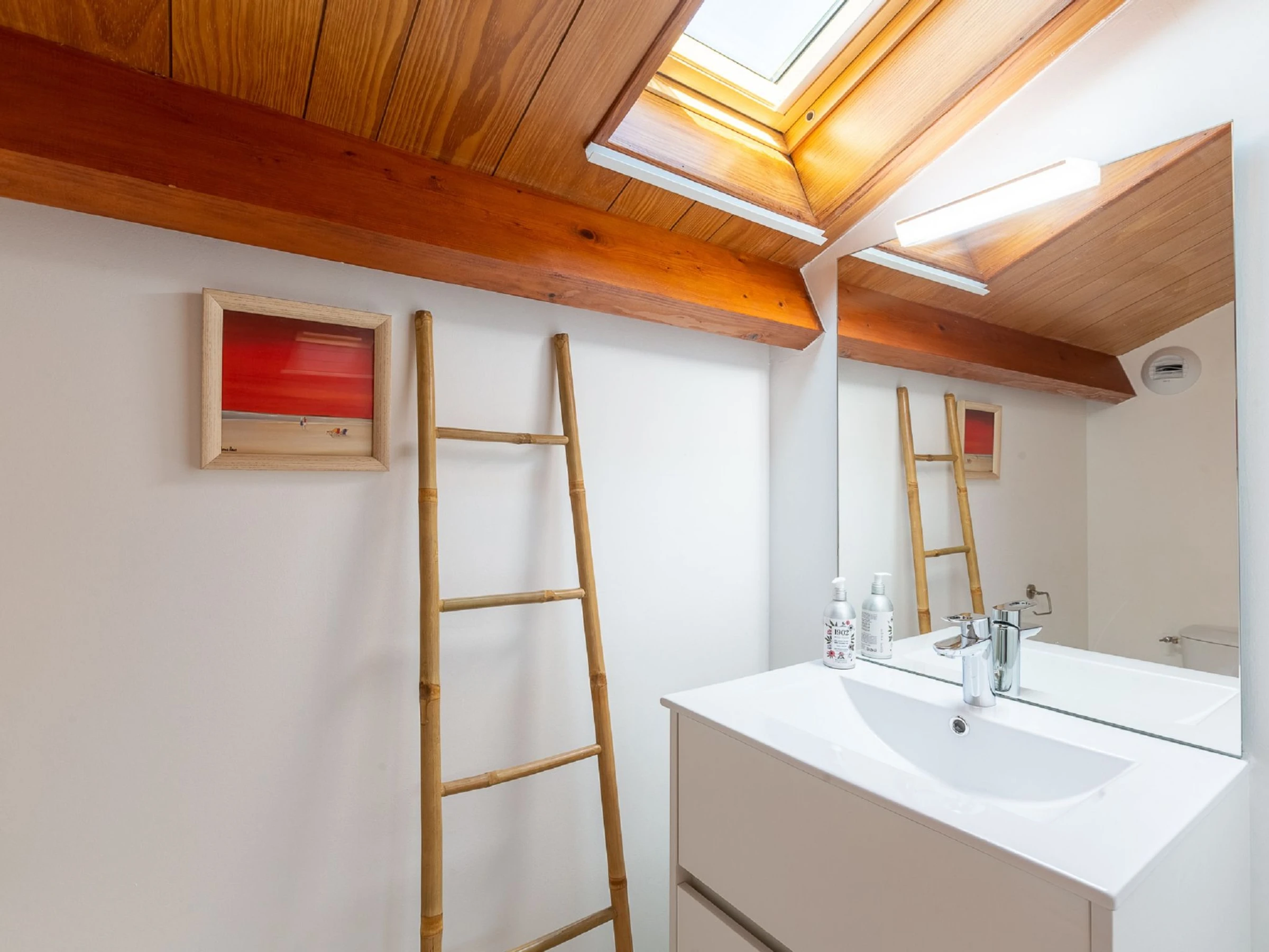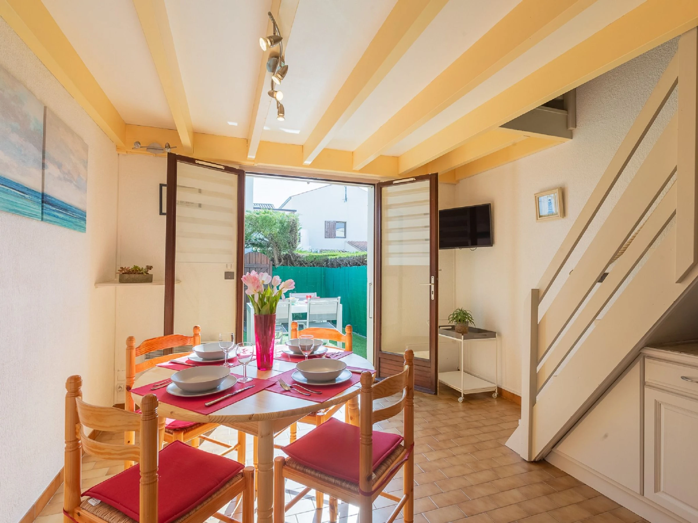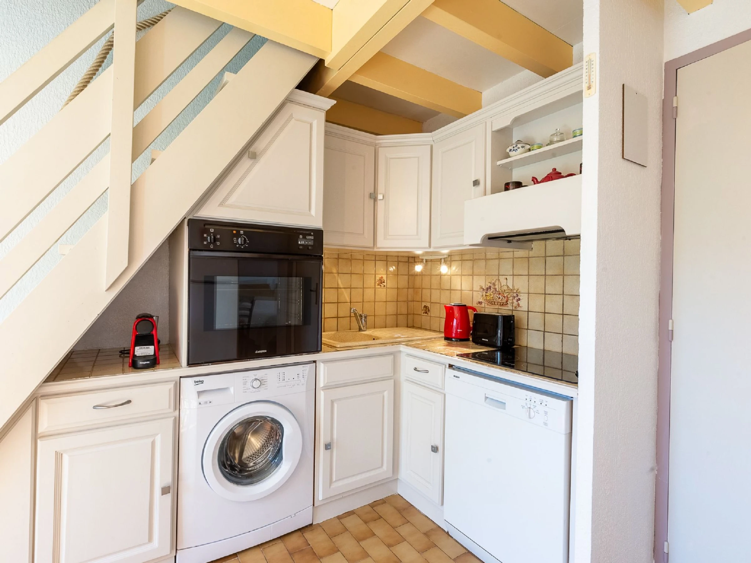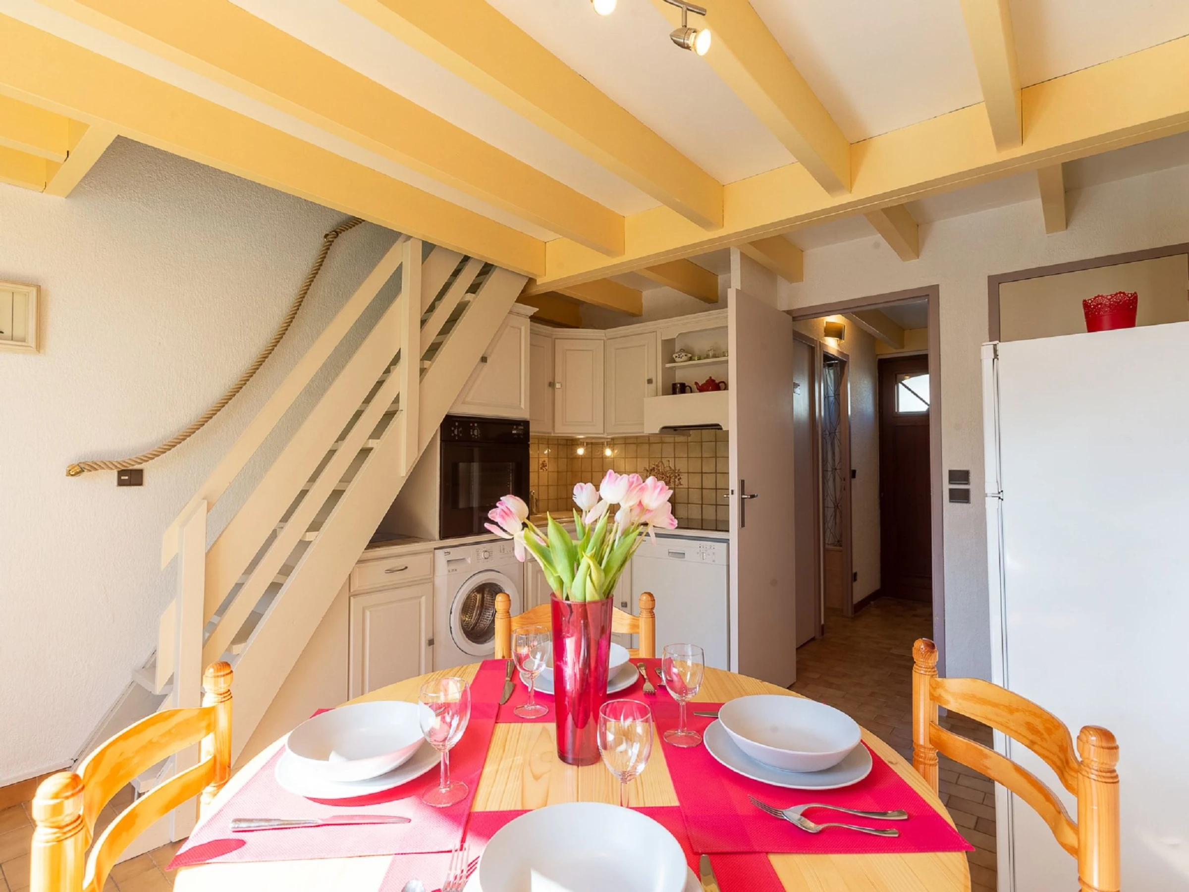 Maison mitoyenne 3 pièces 45 m2. Aménagement fonctionnel: séjour/salle à manger avec TV (écran plat). Sortie sur la terrasse. 1 chambre avec 1 lit double (1 x 160 cm, longueur 190 cm). Coin cuisine (4 plaques de cuisson, four, lave-vaisselle, grille-pain, four micro-ondes, cafetière électrique). Salle de bains, WC séparé. Chauffage électrique. À l'étage supérieur: salon mansardé avec fenêtre sous le toit avec TV (écran plat). 1 chambre, mansardée avec fenêtre sous le toit avec 1 grand-lit (1 x 140 cm, longueur 190 cm). WC séparé. Terrasse 25 m2. Meubles de terrasse, barbecue électrique. A disposition: lave-linge, fer à repasser, sèche-cheveux. Internet (Connexion WIFI, en sus). Place de parking No 18. Veuillez noter: détecteur de fumée.