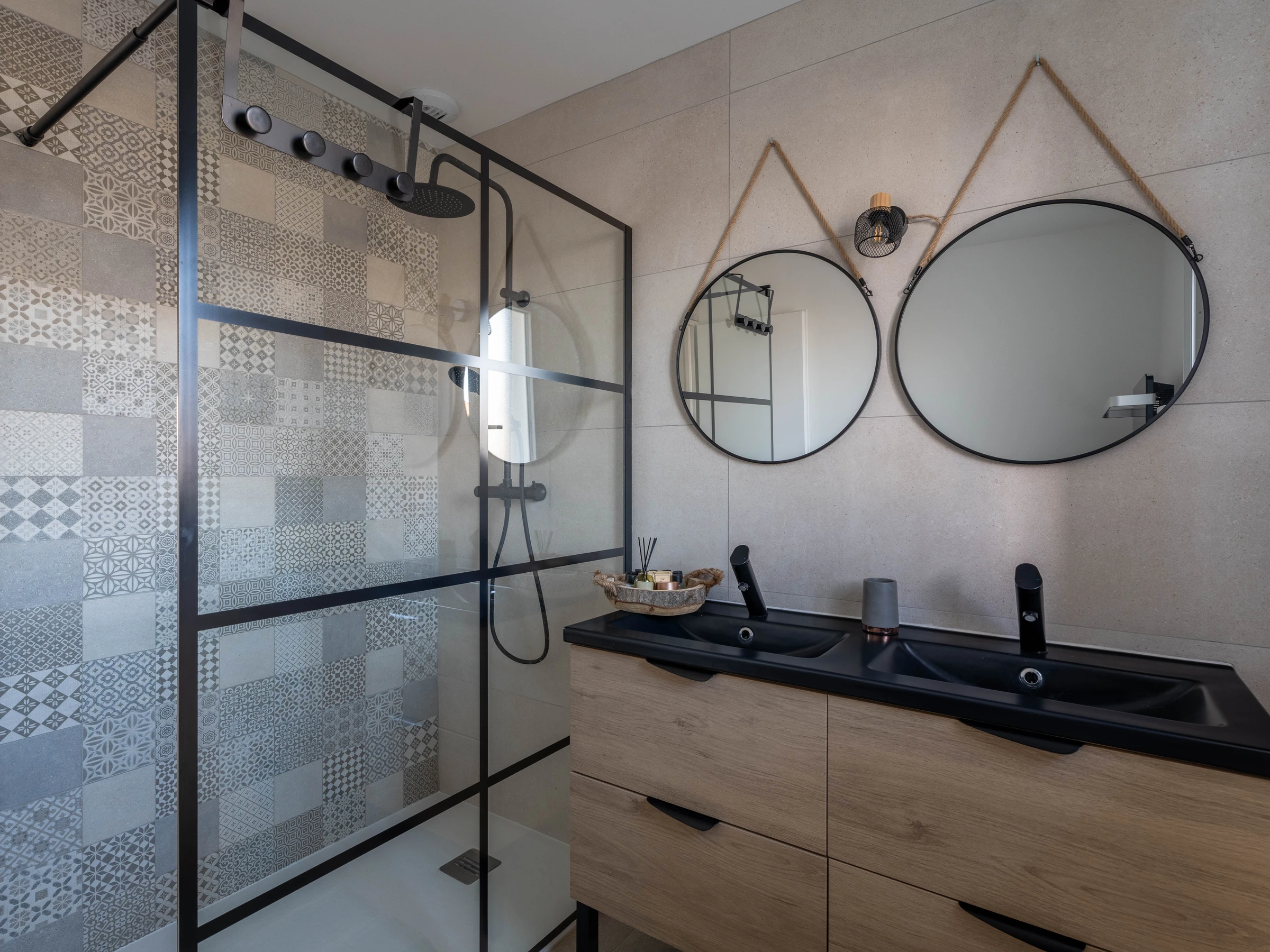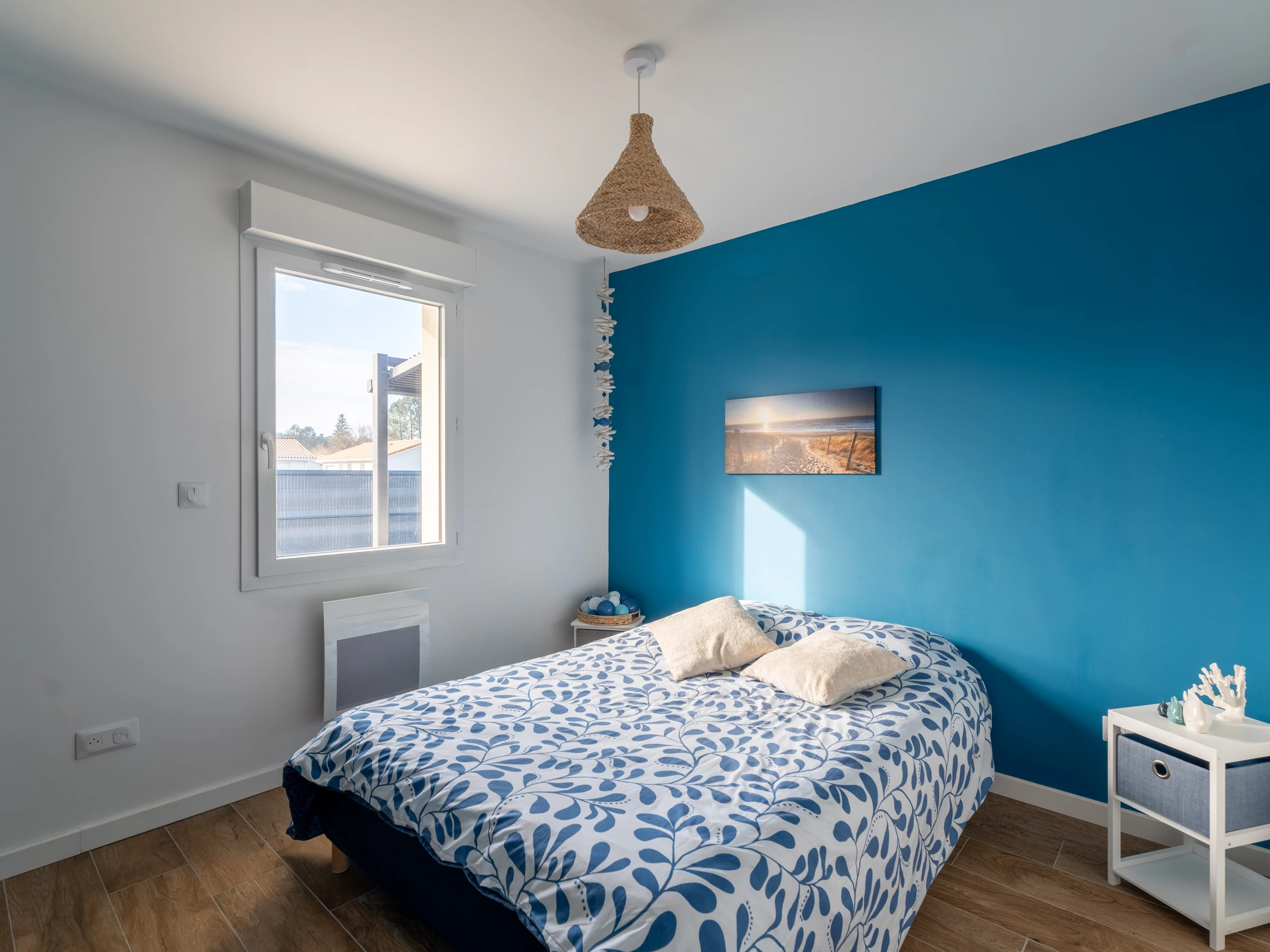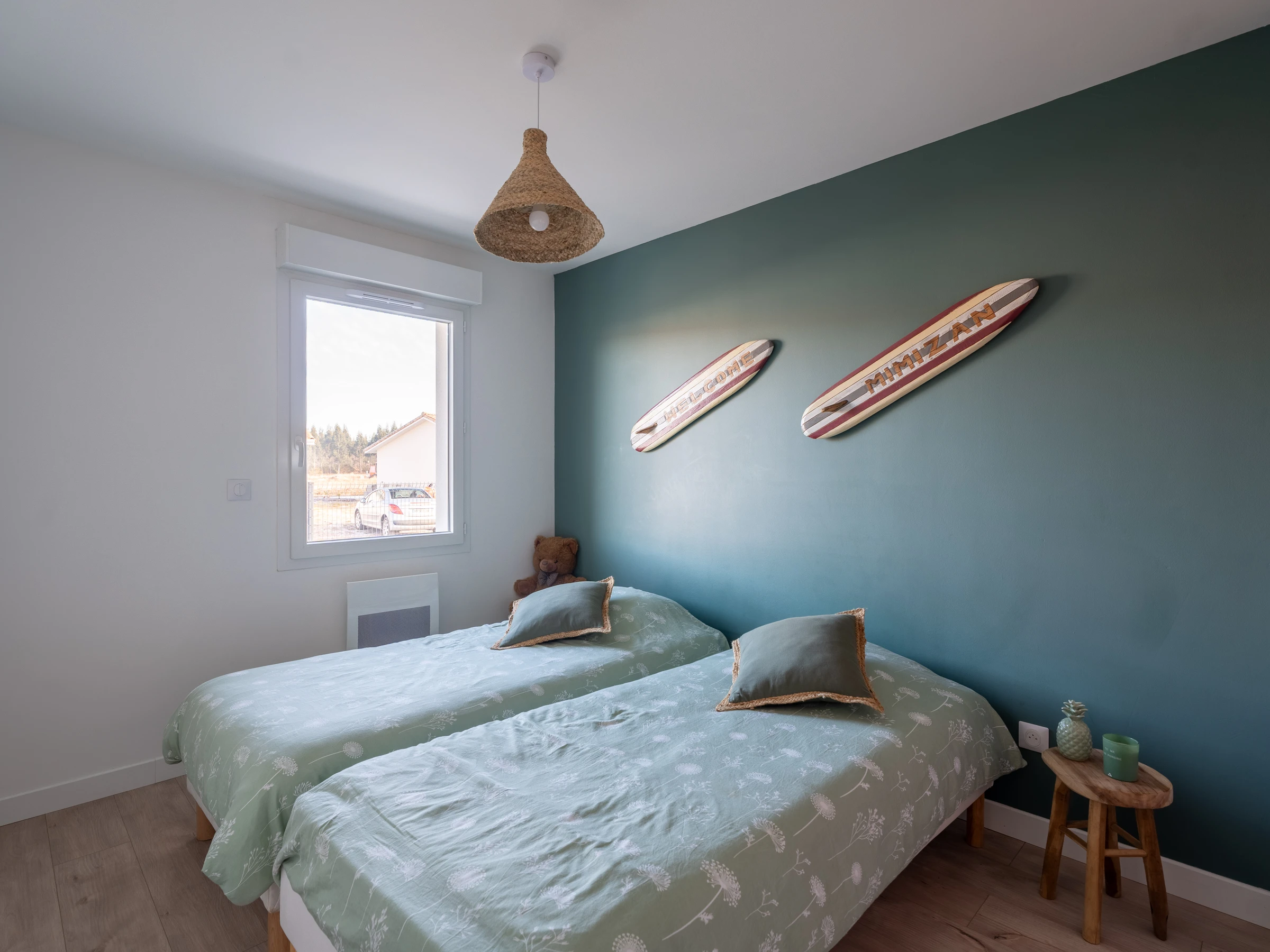 Vous trouverez également une salle d’eau moderne avec sèche-cheveux et trois chambres : une chambre avec un lit de 160, une autre avec un lit de 140, et une troisième avec deux lits de 90. La literie est neuve pour vous garantir un confort optimal. Les WC sont séparés pour plus de commodité.