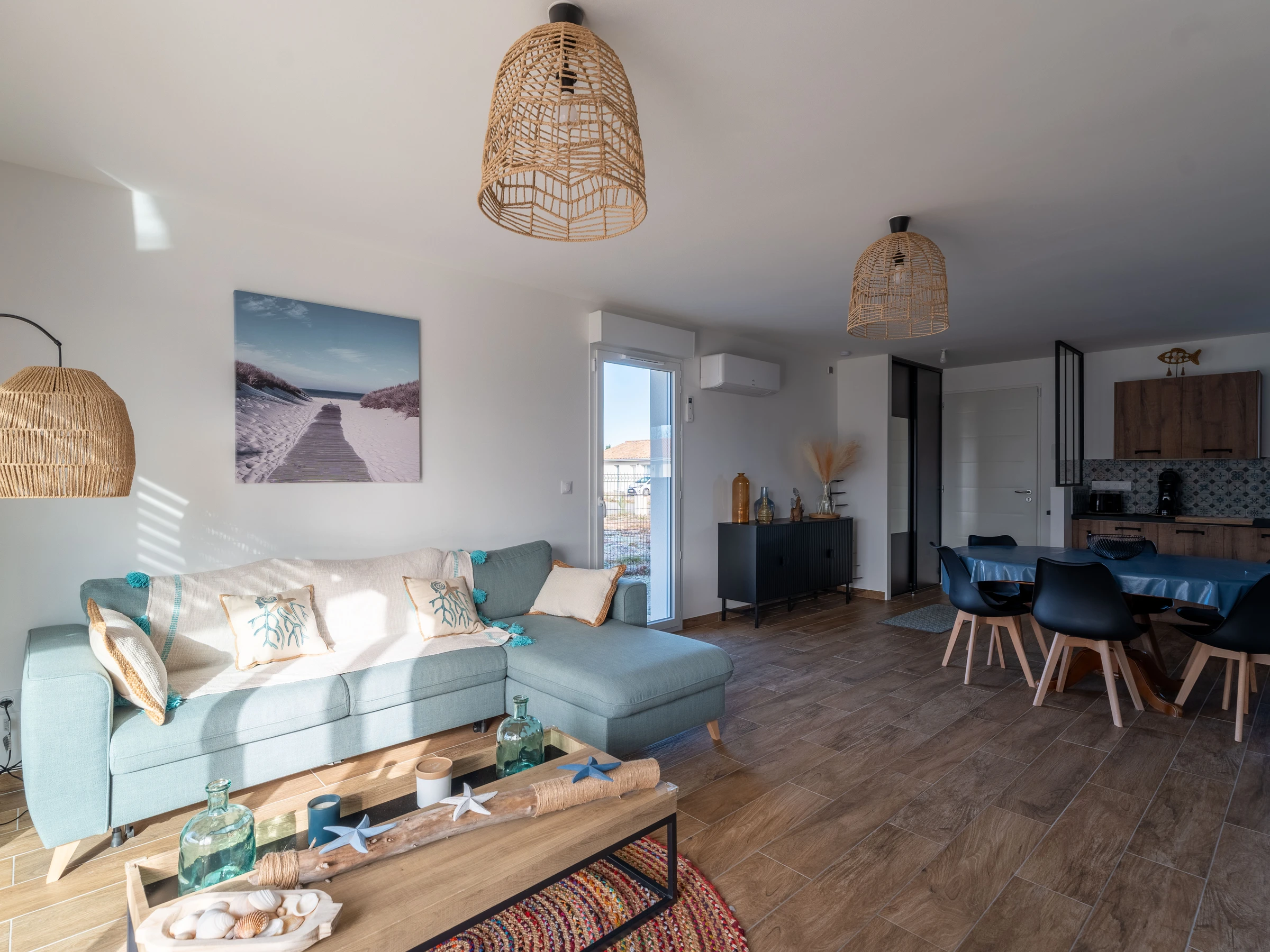 La maison offre une spacieuse et lumineuse pièce de vie avec un séjour confortable, canapé, TV à écran plat et WIFI. La cuisine est entièrement équipée pour que vous puissiez préparer vos repas avec tout le nécessaire : réfrigérateur-congélateur, four, micro-ondes, plaque à induction, cafetière à dosettes, bouilloire, grille-pain, lave-vaisselle et lave-linge.