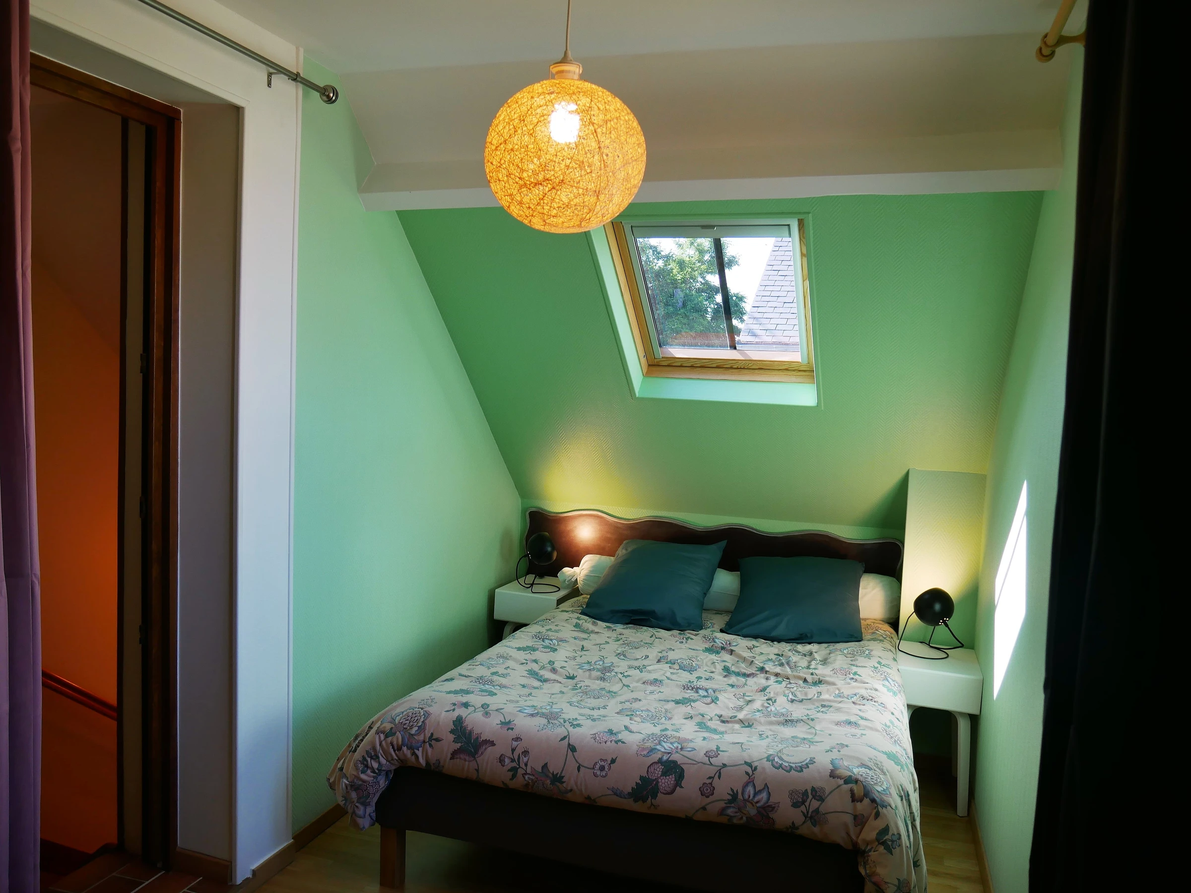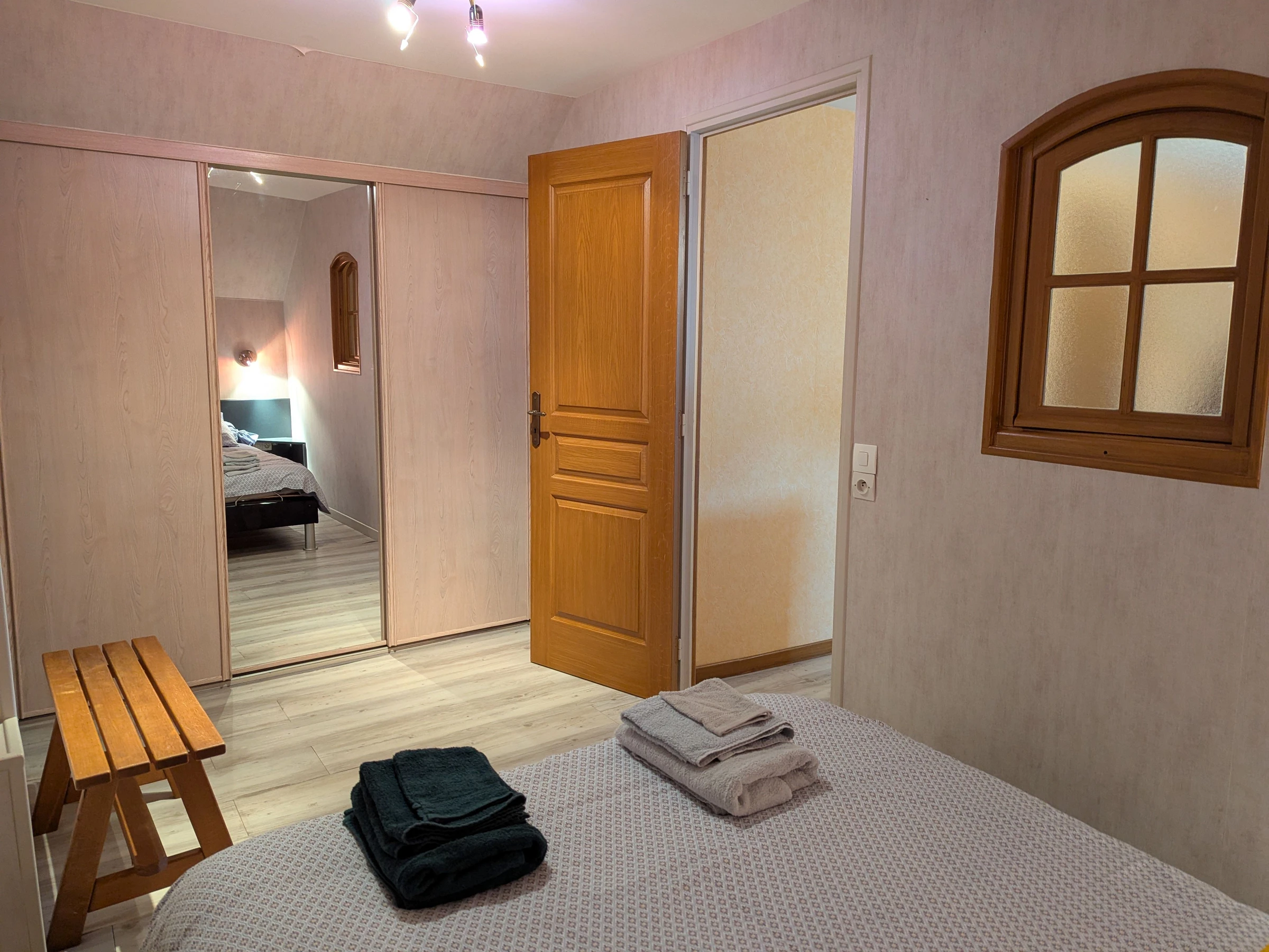 A L'ÉTAGE : un grand palier (avec possibilité de canapé lit 140x190 sur demande) ; un espace nuit (sans ouverture sur l'extérieur) avec 1 lit de 140X190 ; puis une chambre avec 1 lit de 140X190. Une salle d'eau indépendante et un wc séparé.