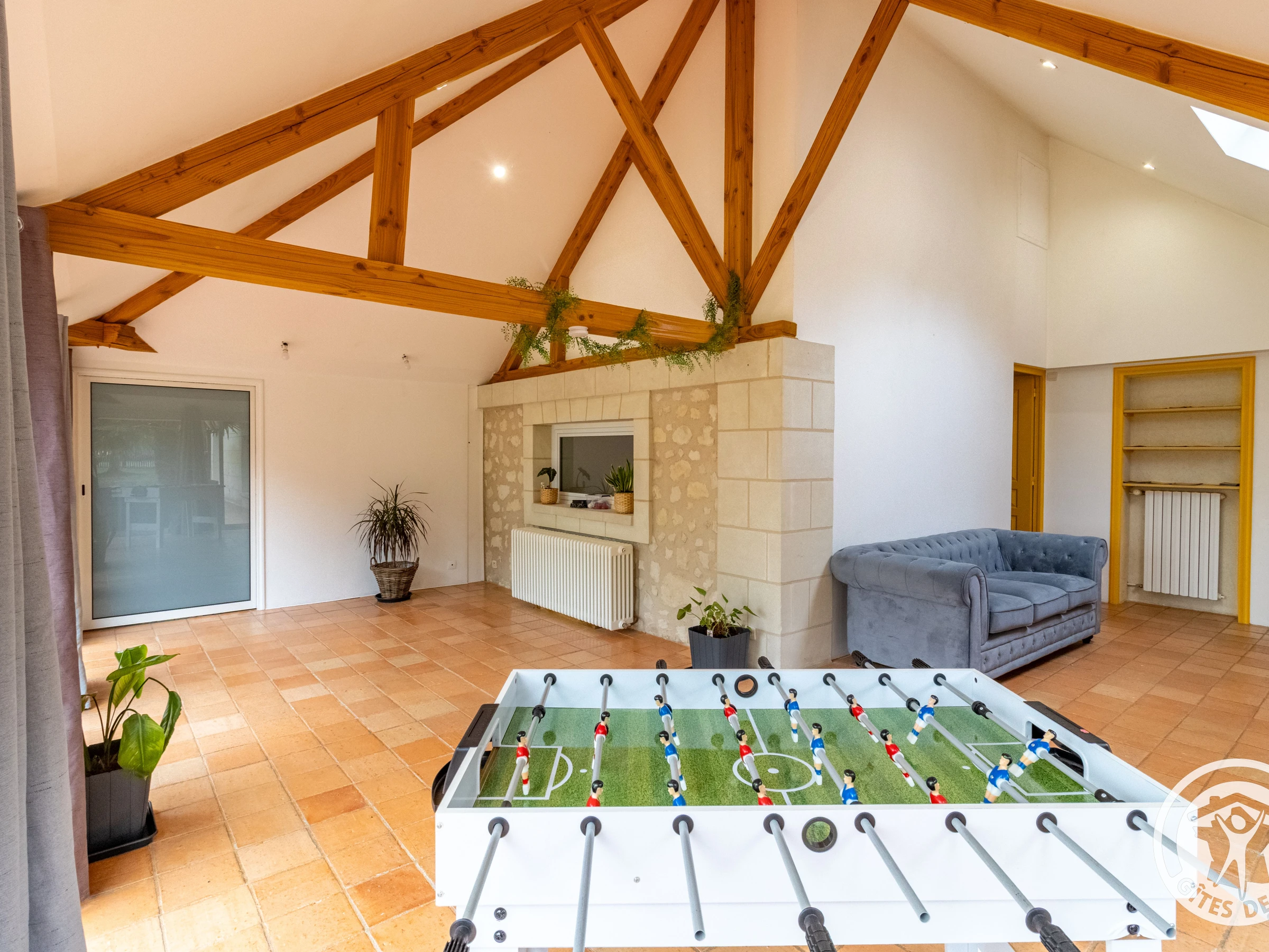 Gîte de 270m2 dont 140m² de pièces de vie permettent de passer un séjour en famille ou entre amis en toute sérénité : cuisine ergonomique avec îlot central, entièrement équipée et ouverte sur le séjour, salon vitré sur 3 côtés avec 4 canapés, un grand écran plat connecté avec barre de son. Véranda donnant sur la piscine avec petit baby-foot (réversible en petit billard) et canapé.