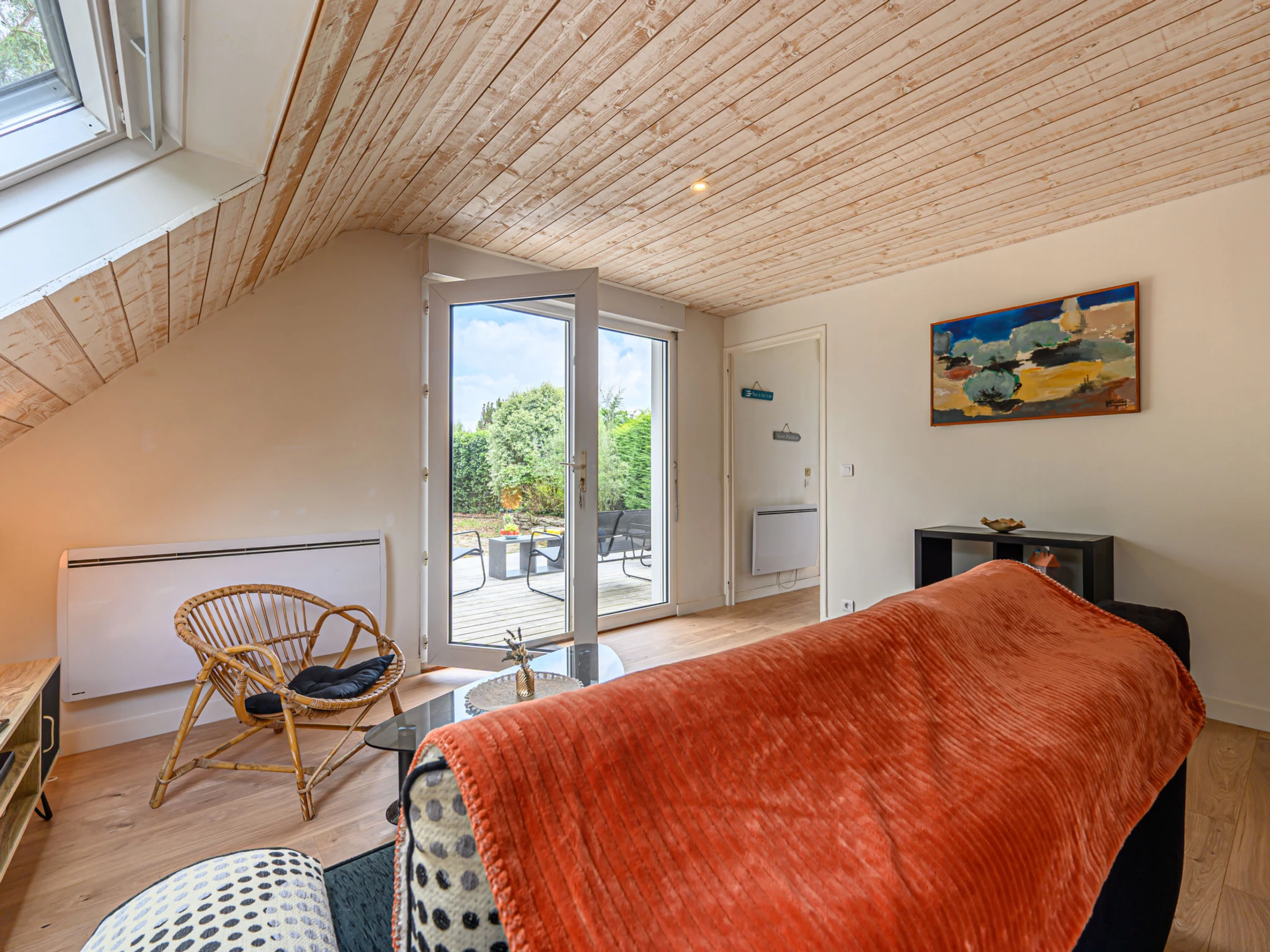 "Bisquine", apt 2 pièces 50 m2 sur 2 niveaux, au rez-de-chaussée. Aménagement confortable: séjour/salle à manger avec 1 divan-lit (140 cm, longueur 190 cm), TV (écran plat). Sortie sur la terrasse. Cuisine (4 plaques de cuisson, four, lave-vaisselle, grille-pain, bouilloire électrique, micro-ondes, cafetière électrique). Douche/WC. Chauffage électrique. À l'étage supérieur: 1 chambre avec 2 lits (90 cm, longueur 190 cm), 1 grand-lit (1 x 140 cm, longueur 190 cm). Sol en bois. Terrasse 15 m2. Meubles de terrasse. A disposition: lave-linge, sèche-cheveux. Internet (Connexion WIFI, en sus). Place de parking (2 Voitures) près de la maison. Veuillez noter: maximum 1 animal/ chien autorisé. Détecteur de fumée. Annonce d'un particulier (art 155, IV du CGI). [hidden]