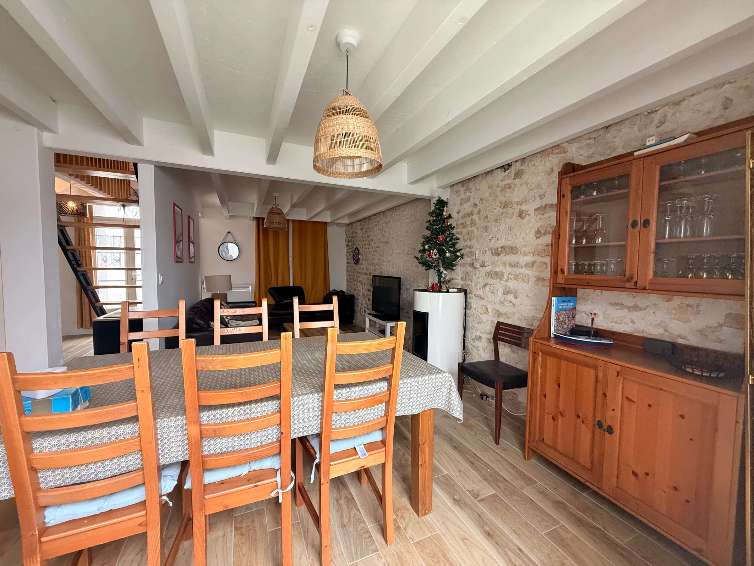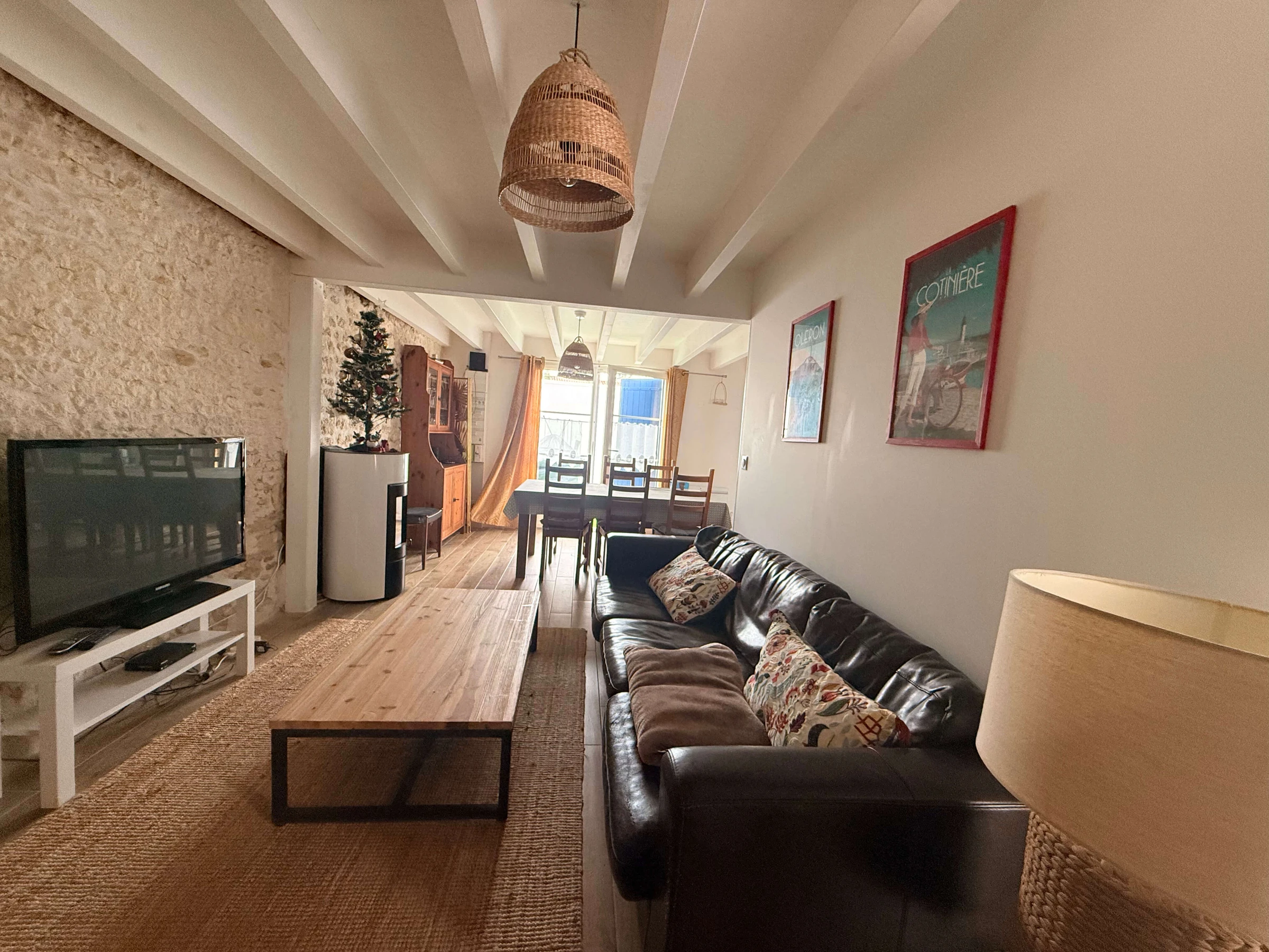 Ancien chai rénové, idéal pour une grande famille ou deux couples avec enfants (8 pers.). Située dans un hameau familial, cette maison tout équipée avec terrasse fermée se trouve à 1 km de la mer, 2 km de La Cotinière et 2,5 km de St-Pierre. Elle offre 3 chambres (1x160, 2x140, 1x160), dont une avec salle d'eau attenante en rez-de-chaussée, ainsi que deux salles d’eau. Spacieuse et lumineuse, elle garantit confort et dépaysement pour un séjour ressourçant.