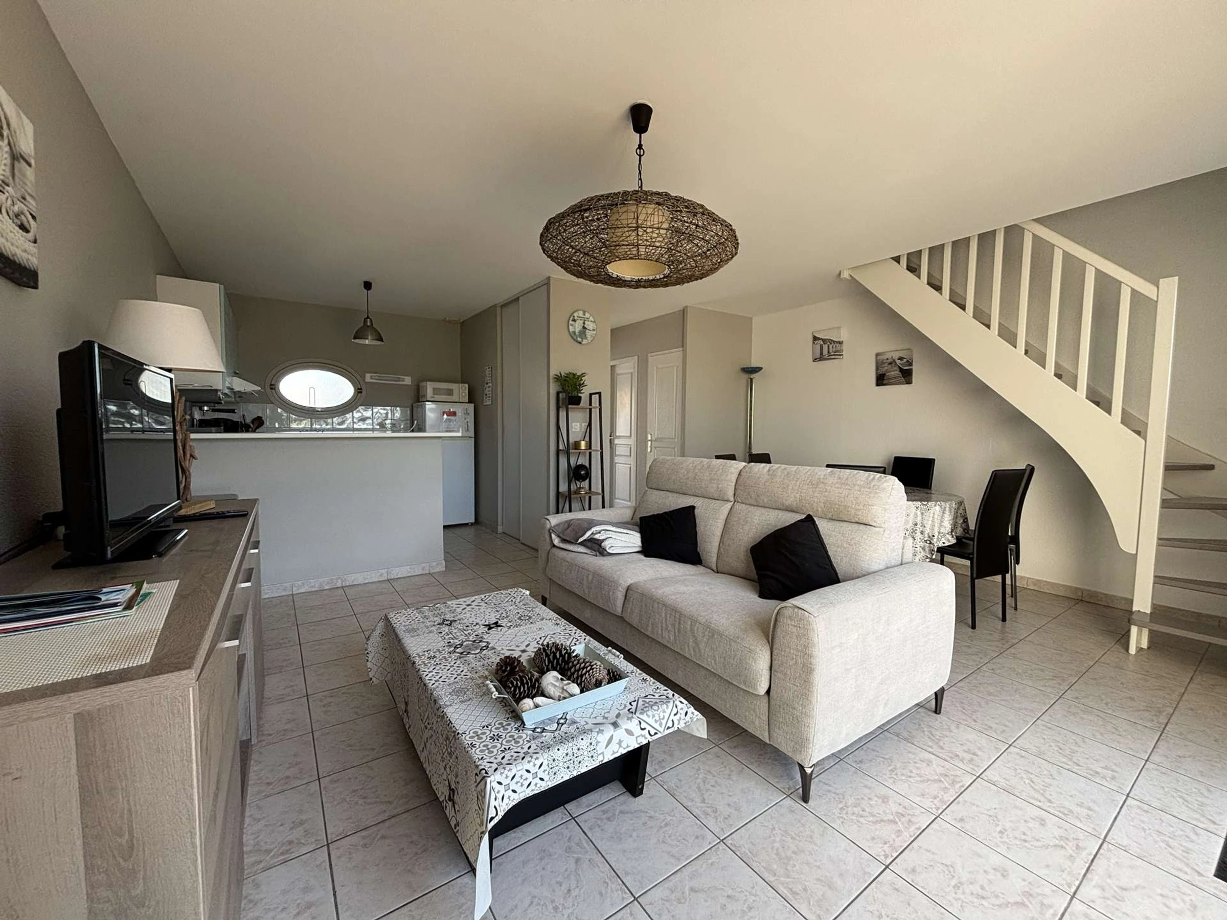 A quelques pas du port de la Cotinière, maison à étage se composant au rez de chaussée d'un séjour/cuisine avec canapé, table basse, télévision, chaises, lave linge, bar et tabourets, 4 feux gaz, four, hotte, réfrigérateur/congélateur, micro-ondes, WC indépendant. A l'étage, une première chambre pour deux couchages 2x90, une deuxième chambre pour deux couchages (1x140), une salle d'eau avec sèche serviette et WC. A l'extérieur, une cour avant commune ouverte,à l'arrière un jardinet clos de 60m² avec terrasse en bois, barbecue, bains de soleil, parasol, salon de jardin.