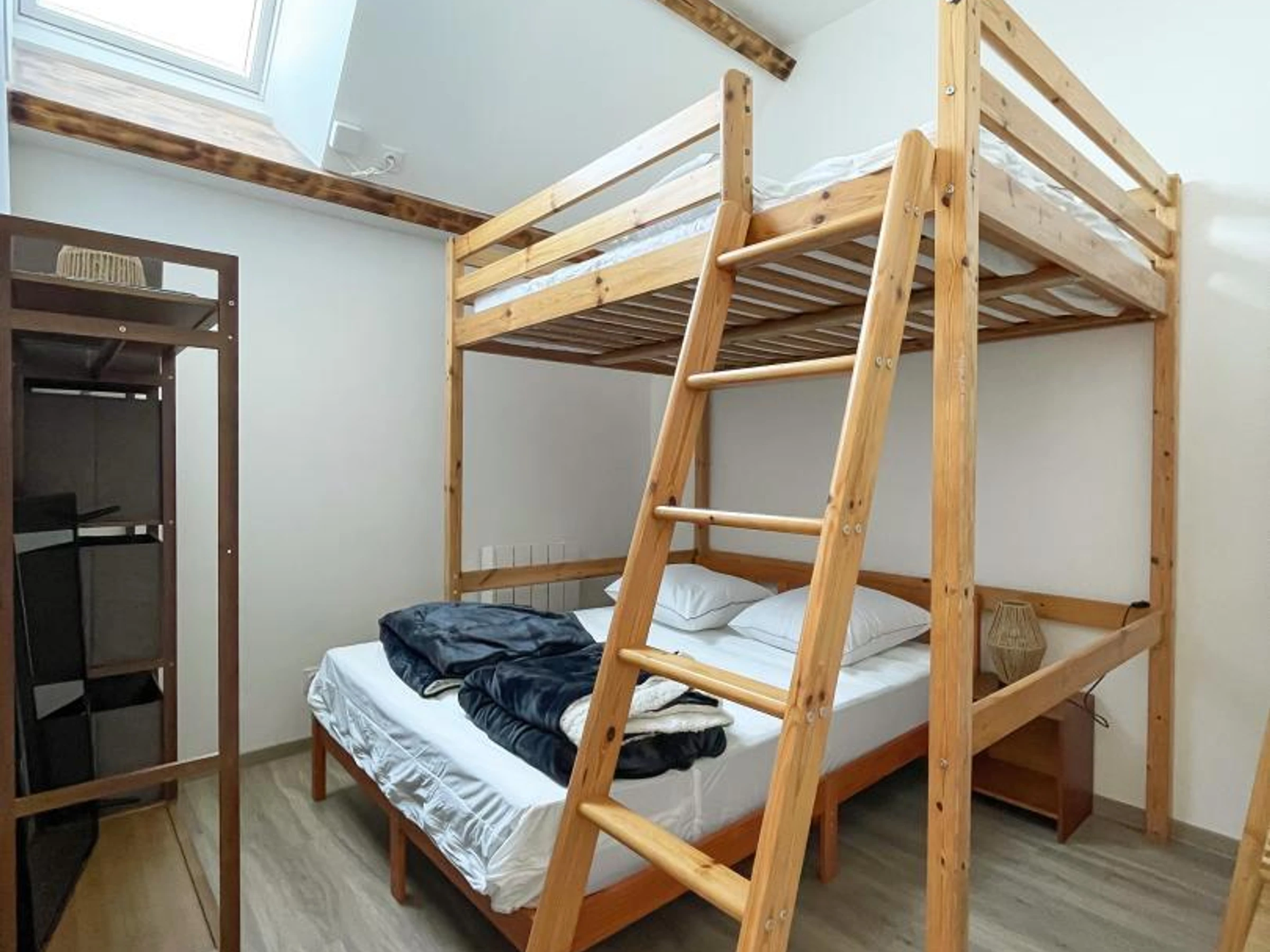 Chambre avec lit superposé 140x190 et TV,