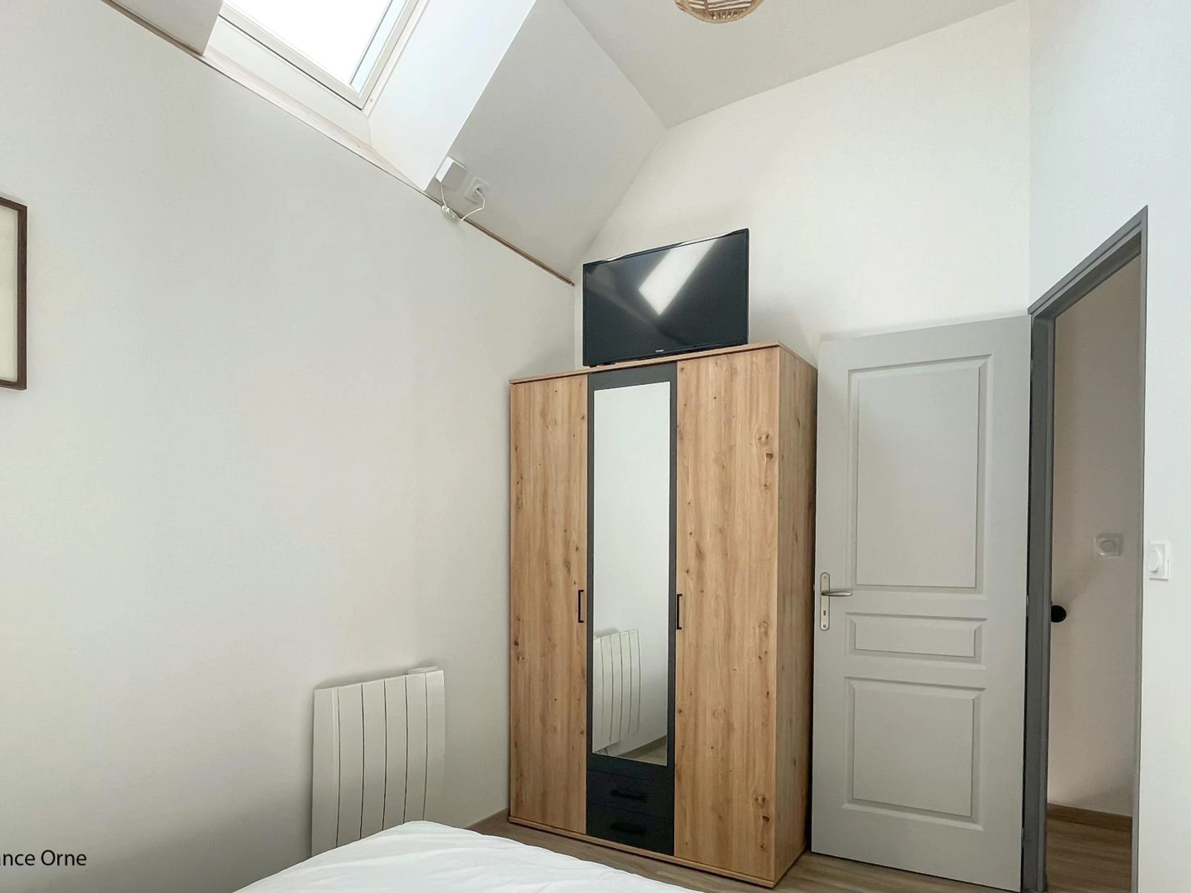 Chambre avec Lit 2 pers. 140 x 190 cm & TV, velux haut à ouvrir avec une perche,
