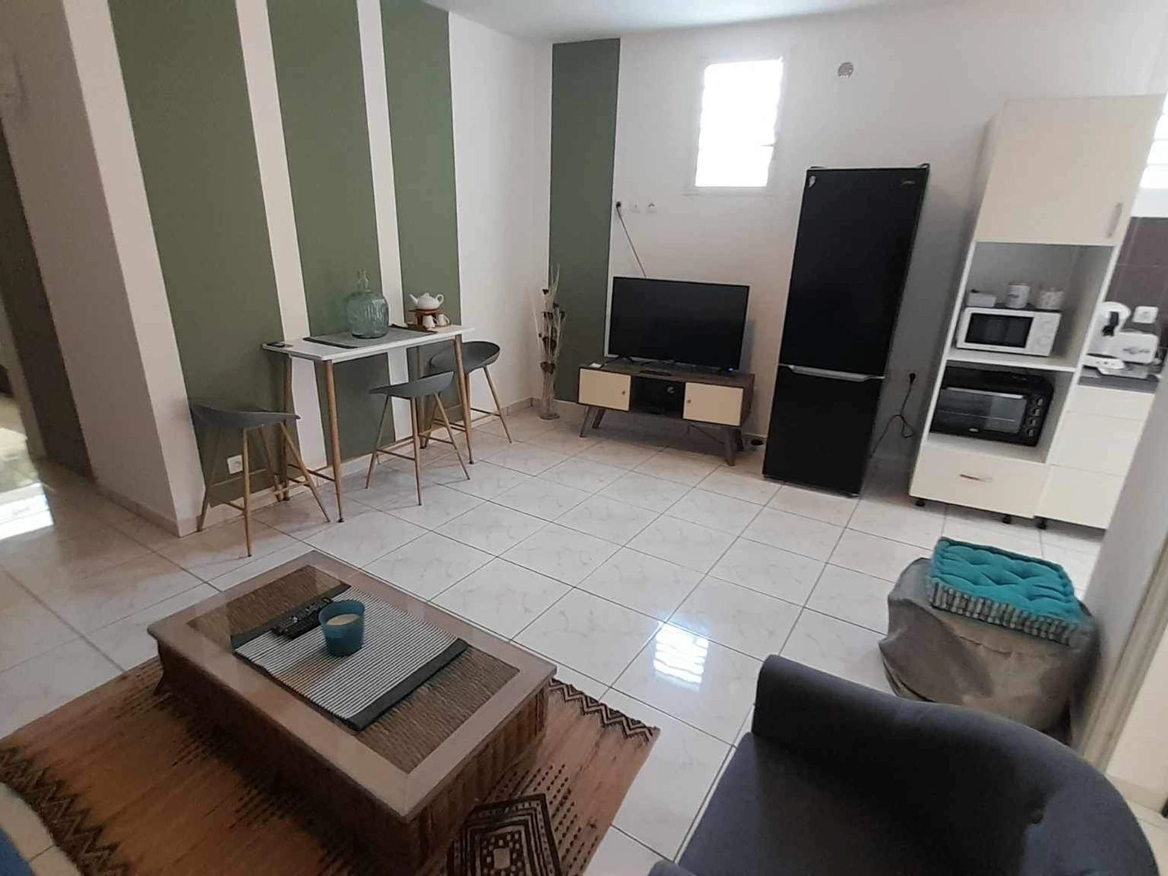 LA KAZ EMERAUDE St Pierre centre appartement au rez de chaussée d'une petite résidence située à 300 m de la plage de notre capitale du sud vous offre un logement confortable pour 2 à 4 personnes . Vous entrez par une grande véranda terrasse équipée d'une salle à manger et d'une cuisine d'été donnant sur la cuisine principale bien équipée , un grand salon canapé télé écran plat climatisé est à votre disposition pour des soirées cosys , le logement est pourvu d'une grande suite parentale comprenant dressing et salle de bain attenante avec douche multi-jets , près du salon un jolie bureau avec un canapé convertible se transformera le soir en une chambre parfaite pour enfants ou couples , le bien idéal pour profiter de la plage et de sa situation centrale proche du marché forain .Une place de parking vous est réservé , les draps , serviettes et le ménage de fin de séjour sont compris dans la prestation