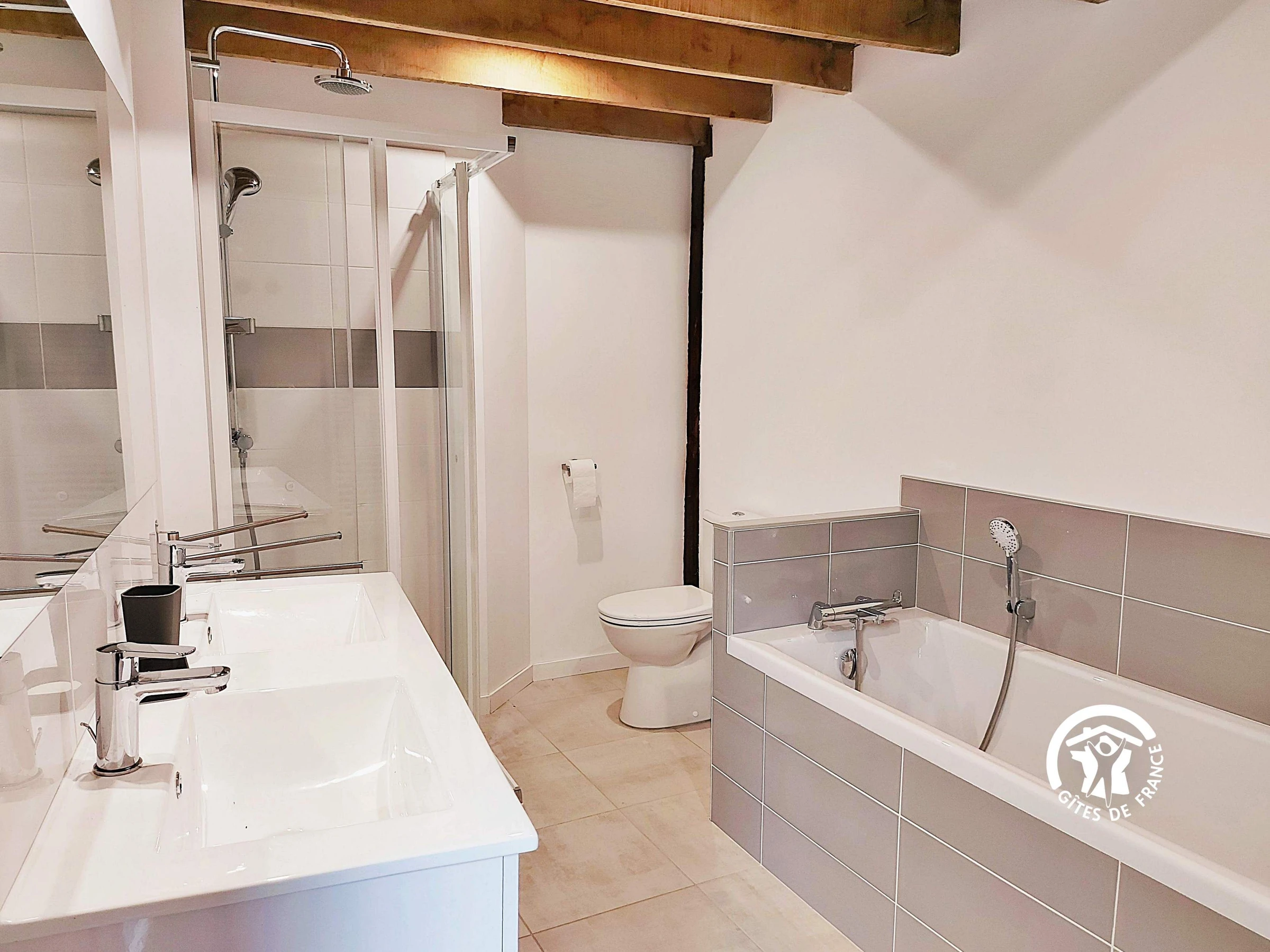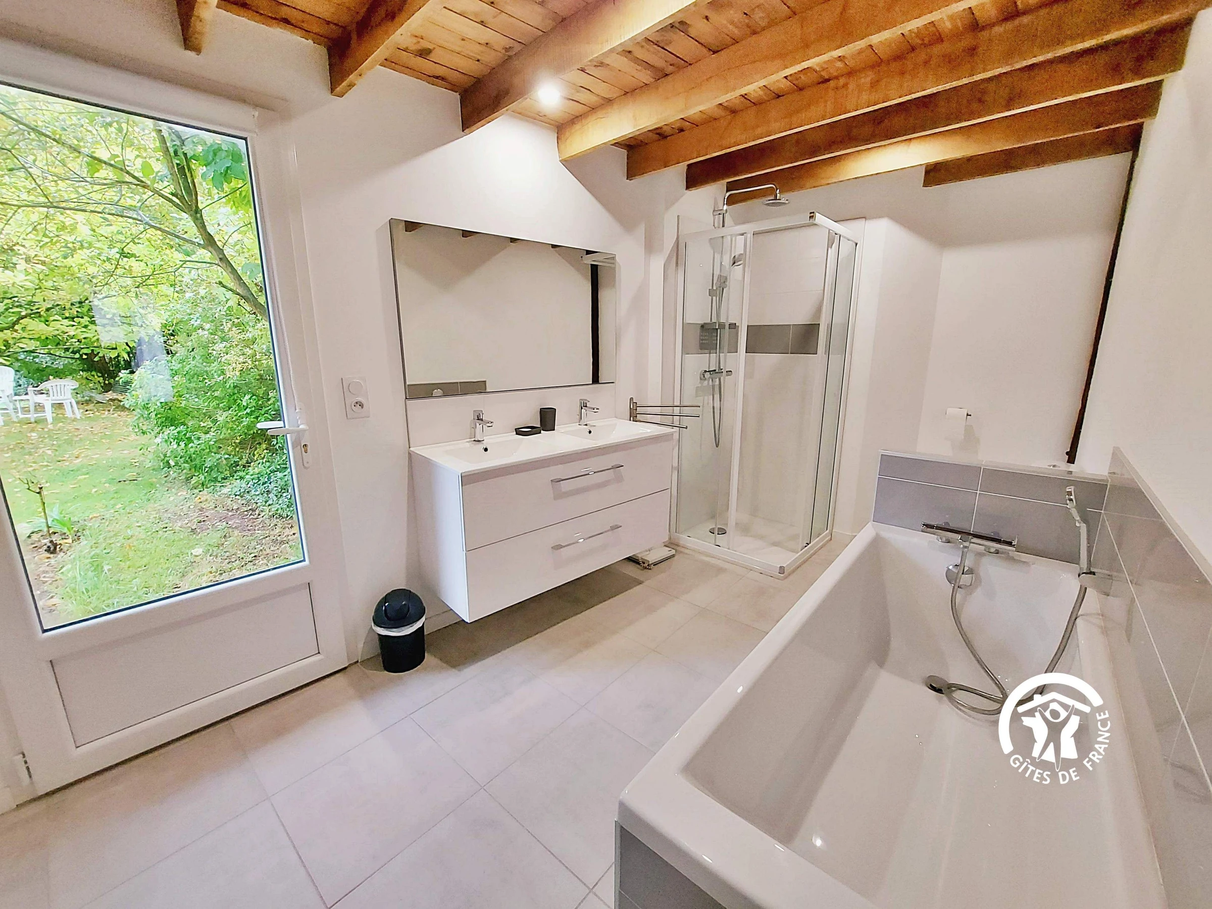 Séjour de 3 nuitées et plus : arrivée 18h - départ 10h Votre logement comprend NIVEAU 0 - Entrée par la cuisine équipée 17m² (réfrigérateur, congélateur, lave-vaisselle, four, feux vitrocéramiques, micro-onde, cafetière filtre et dosette -Krups, bouilloire, grille-pain) - Salle à manger 21m² avec grande table de repas - Salon avec vue sur la jardin, grande baie vitrée 21m², TV 105 cm, lecteur DVD avec DVD enfants (Disney) et adultes - wc indépendant - buanderie avec lave-linge et sèche-linge - Chambre (1) 22.7m² avec 2 lits jumeaux 80*200 et sa salle de bain / douche / vasque / wc privée, bureau et armoire - Chambre (2) 22.6m² avec 1 lit 160*200 et sa cabine de douche / wc / x2 vasque privés.