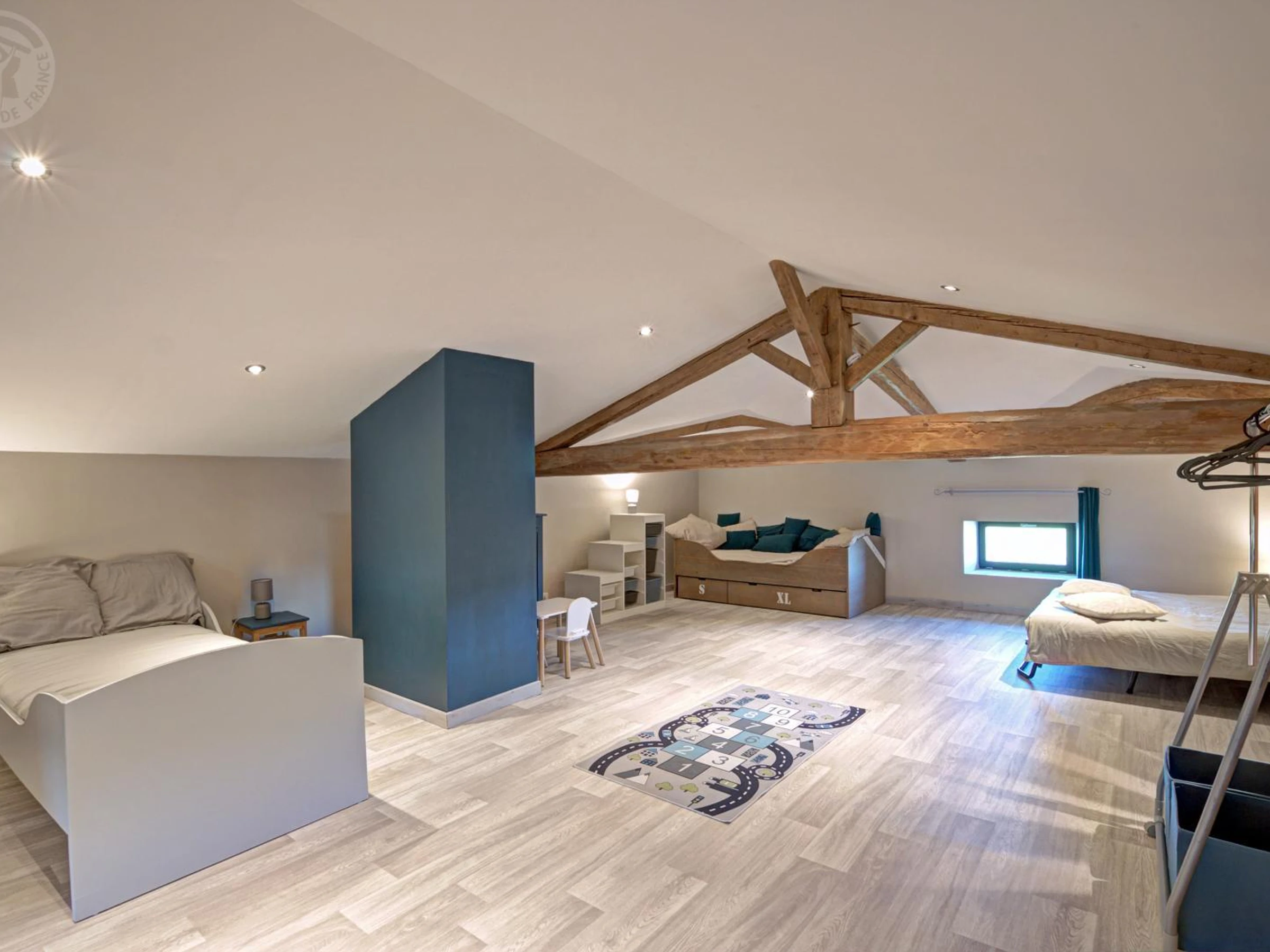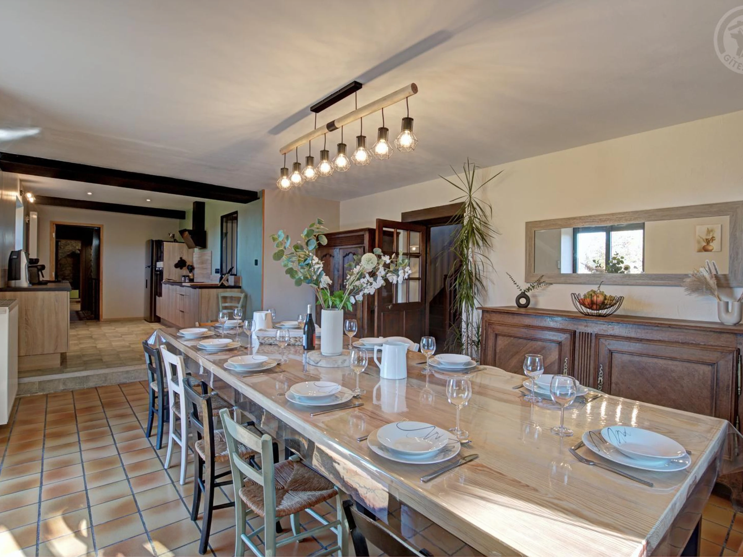 Gîte de 170m² (rdc+ étage). Au rez-de-chaussée, profitez d'un espace de vie convivial avec cuisine entièrement équipée ouverte sur la salle à manger lumineuse donnant accès à la terrasse avec vue sur la campagne. Le salon détente, une chambre avec lit 160, une salle d'eau et des WC complètent ce niveau. À l'étage, deux chambres offrent des couchages modulables : 1 lit 140 et 2 lits 90 jumelables en lit 180 / 1 lit 140, ainsi qu'une salle de bain avec douche, baignoire et WC indépendant. Sous les combles, un dortoir cosy avec 4 lits 90, un espace détente avec BZ convertible et lit d'appoint ravira petits et grands. Pour vos loisirs, profitez d'une salle de jeux équipée (ping-pong, babyfoot, fléchettes,...) et d'un magnifique pool house de 100m² avec espace détente (bains de soleil, salon de jardin), sanitaires complets avec douche et WC et la belle piscine chauffée de 7x4m. Nichée entre le massif des Bois Noirs et les Monts de la Madeleine, entre Roanne, Vichy et Tiers, cette ancienne ferme en pierres offre une escapade paisible au cœur de la nature. D'une superficie généreuse, ce gîte de caractère allie confort moderne et charme d'antan. Pouvant accueillir jusqu'à 12/14 personnes, le gîte St-Antoine promet un séjour ressourçant en pleine campagne. Calme absolu, grands espaces et charme authentique s'y conjuguent pour des moments inoubliables. Ce gîte de charme avec piscine intérieure chauffée à 28°C toute l'année, est idéal pour des séjours en famille ou entre amis !