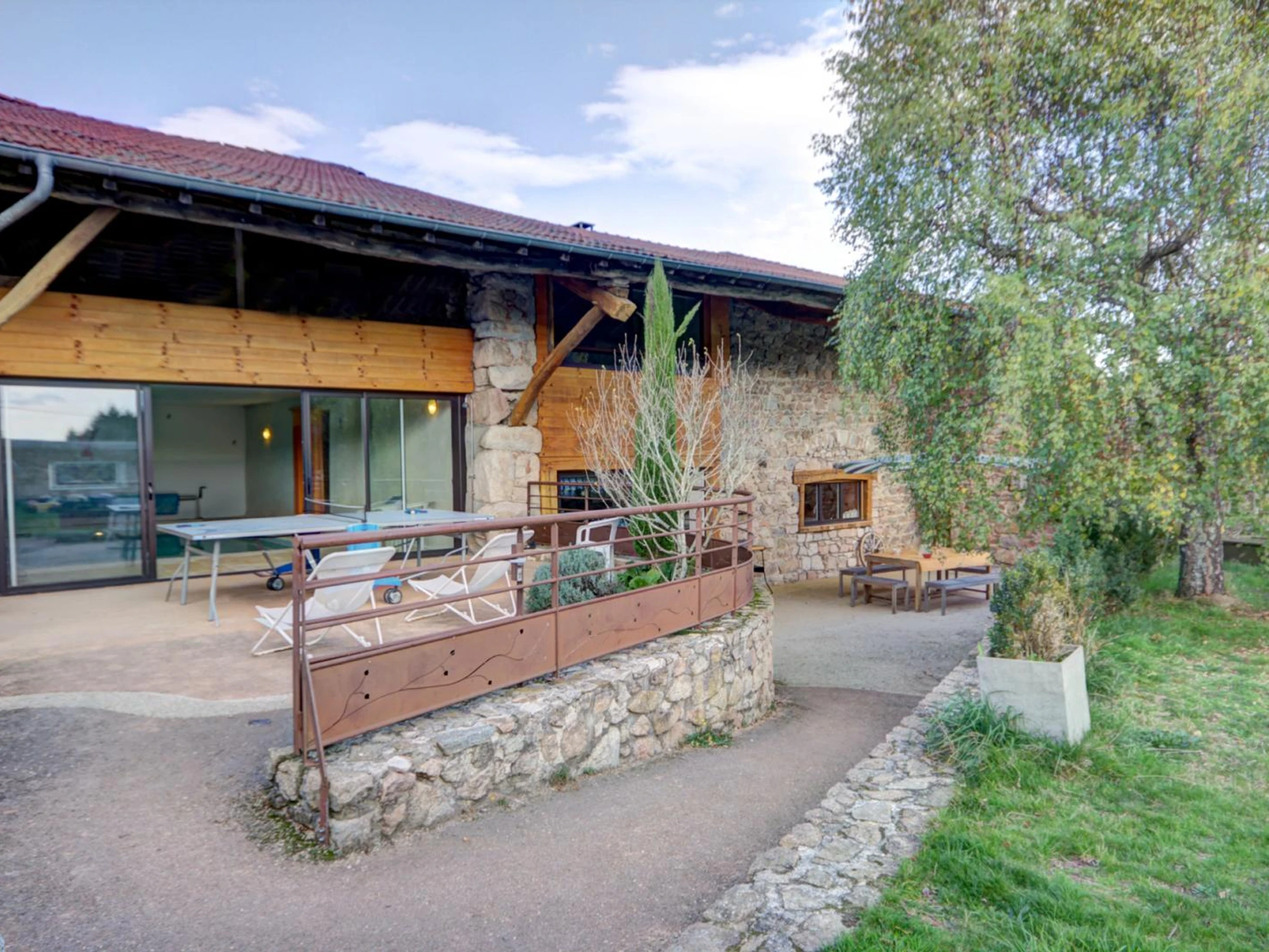 Gîte de 180 m² en rdc + étage, grande pièce à vivre avec espace repas, salon avec cheminée, baies vitrées donnant sur le terrain, 3 chambres (+ 1 ch d'appoint avec 1 lit en 140), mezzanine avec coin jeux / détente et clic clac, 2 salles de bain. Chauffage au sol au rdc , chauffage électrique (étage), cheminée bois avec bois offert. Possibilité forfait ménage avec supplément de 5 € si animaux présents dans le gîte. Pour ces derniers, l'espace privatif clos leur permet de sortir librement à l'extérieur . Possibilité de location de draps auprès du propriétaire .RDC et sa SDB adaptés pour personnes à mobilité réduite. Jeux extérieurs et intérieurs. Terrasse abritée avec plancha. Abri pour voiture .Piscine intérieure dans local mitoyen mais indépendant (accès par l'extérieur). Vous apprécierez le calme, le confort et l'espace, les pierres apparentes, les poutres et planchers bois. Piscine intérieure chauffée toute l'année (8x4) commune avec le propriétaire et terrain privatif de 200 m² (pelouse et terrasse). Situé à 1km du bourg de la commune et de ses magasins, le gite parfaitement équipé pour votre confort, se situe à la campagne sans pour autant être isolé. Depuis le gite partez directement à pied , en vélo, à cheval ou par tout autre moyen découvrir les sentiers de randonnées et chemins de traverse du Pays d'Urfé. En hiver, profitez des stations de ski des massifs voisins. A l'extérieur un portique attend les plus petits (<10 ans) alors qu'une table de ping pong est à disposition des plus grands. Sa situation géographique permet d'aller à la découverte (en moins d'une heure) du Forez, de l'Auvergne et de ses volcans, de la Montagne Bourbonnaise mais aussi du Roannais, de de son vignoble et villages de caractères.