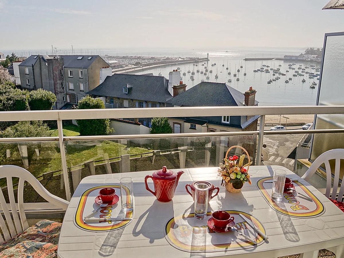 Apt 2 pièces 56 m2 au 3ème étage. Aménagement agréable: entrée. Séjour/salle à manger avec baie vitrée avec 1 divan-lit double (1 x 180 cm, longueur 200 cm), TV (écran plat). Sortie sur la terrasse. 1 chambre avec 1 grand-lit (1 x 180 cm, longueur 200 cm). Sortie sur la terrasse. Cuisine (4 plaques de cuisson, four, lave-vaisselle, four micro-ondes). Douche/WC. Chauffage électrique. Terrasse 37 m2. Meubles de terrasse. Très belle vue panoramique sur la mer et le port. A disposition: lave-linge, lit bébé. Place de parking No 18. La terrasse, accessible par une marche, fait le tour de l'appartement. Chauffage en sus à régler sur place selon consommation du 1.10 au 30.04. Possibilité de ranger planches à voile et vélos dans la cave commune de la résidence. Appartement équipé de stores électriques.