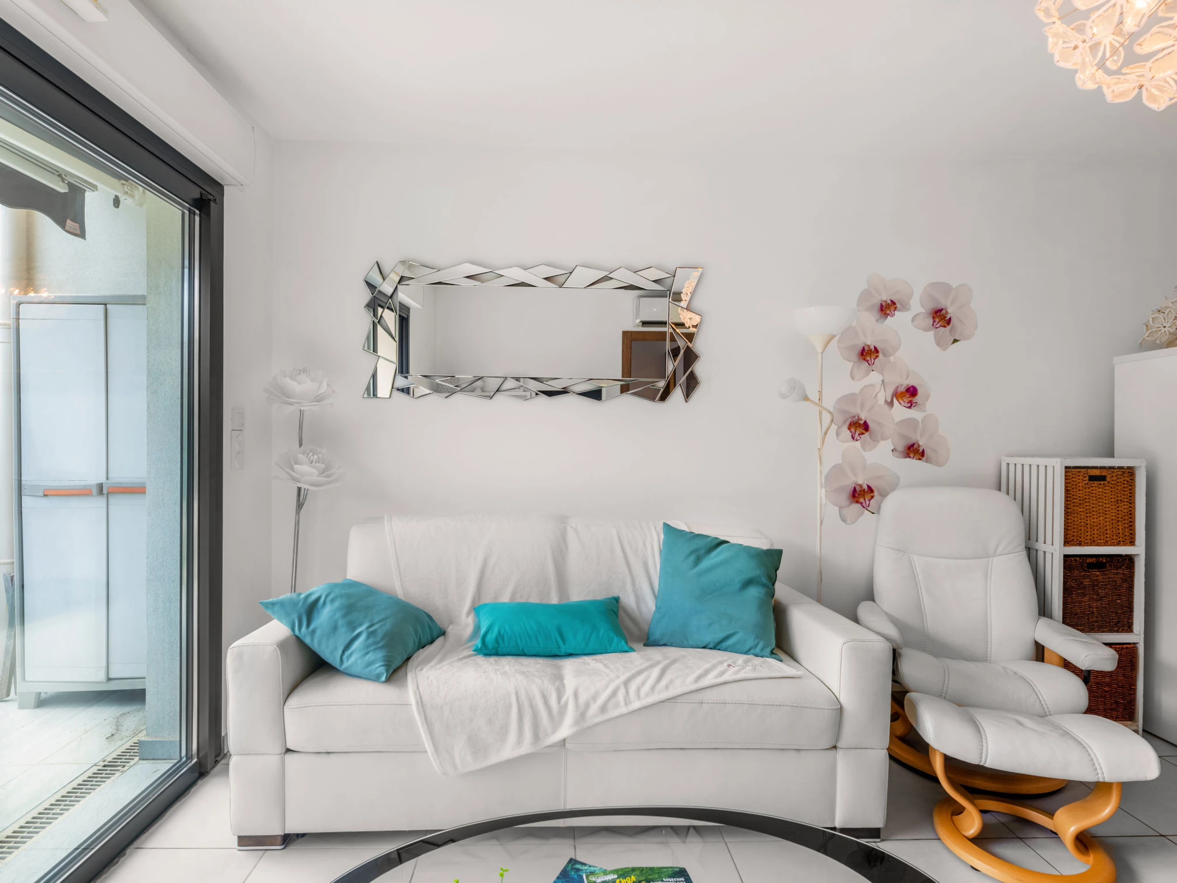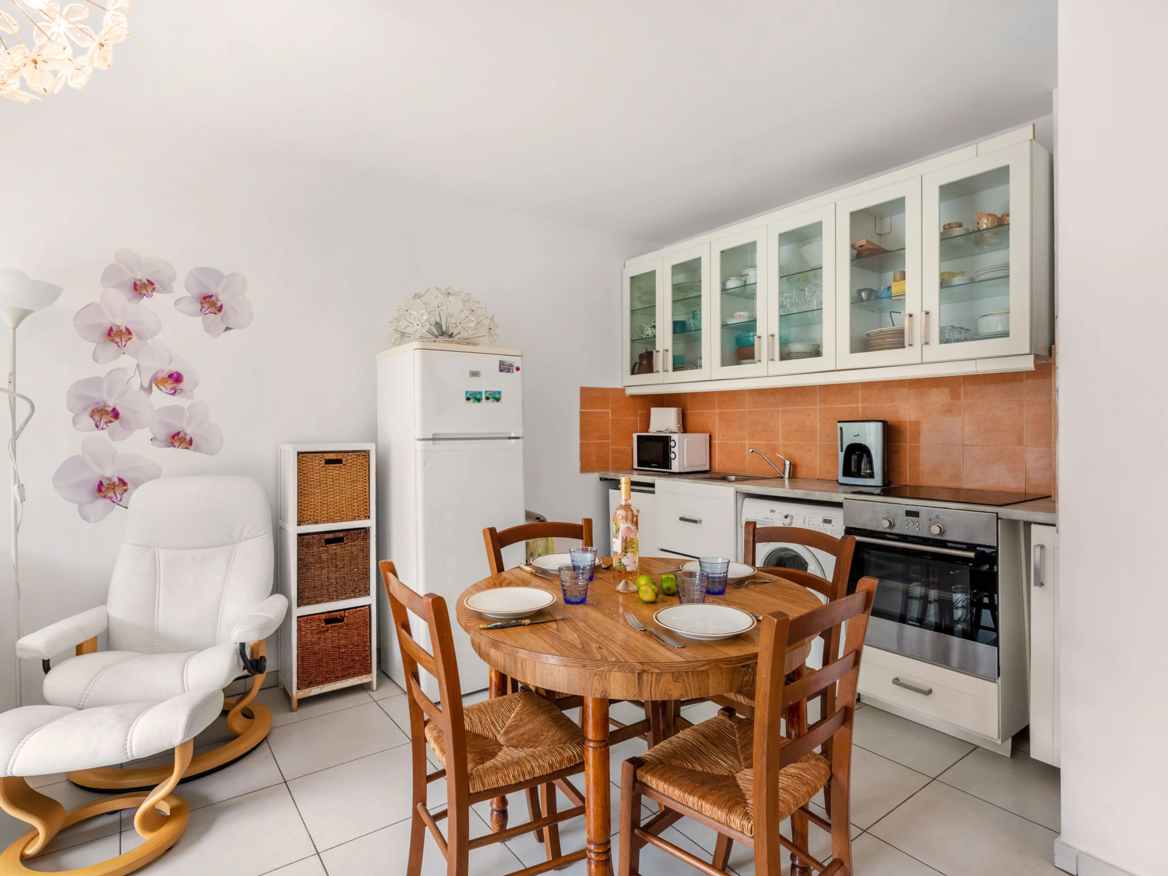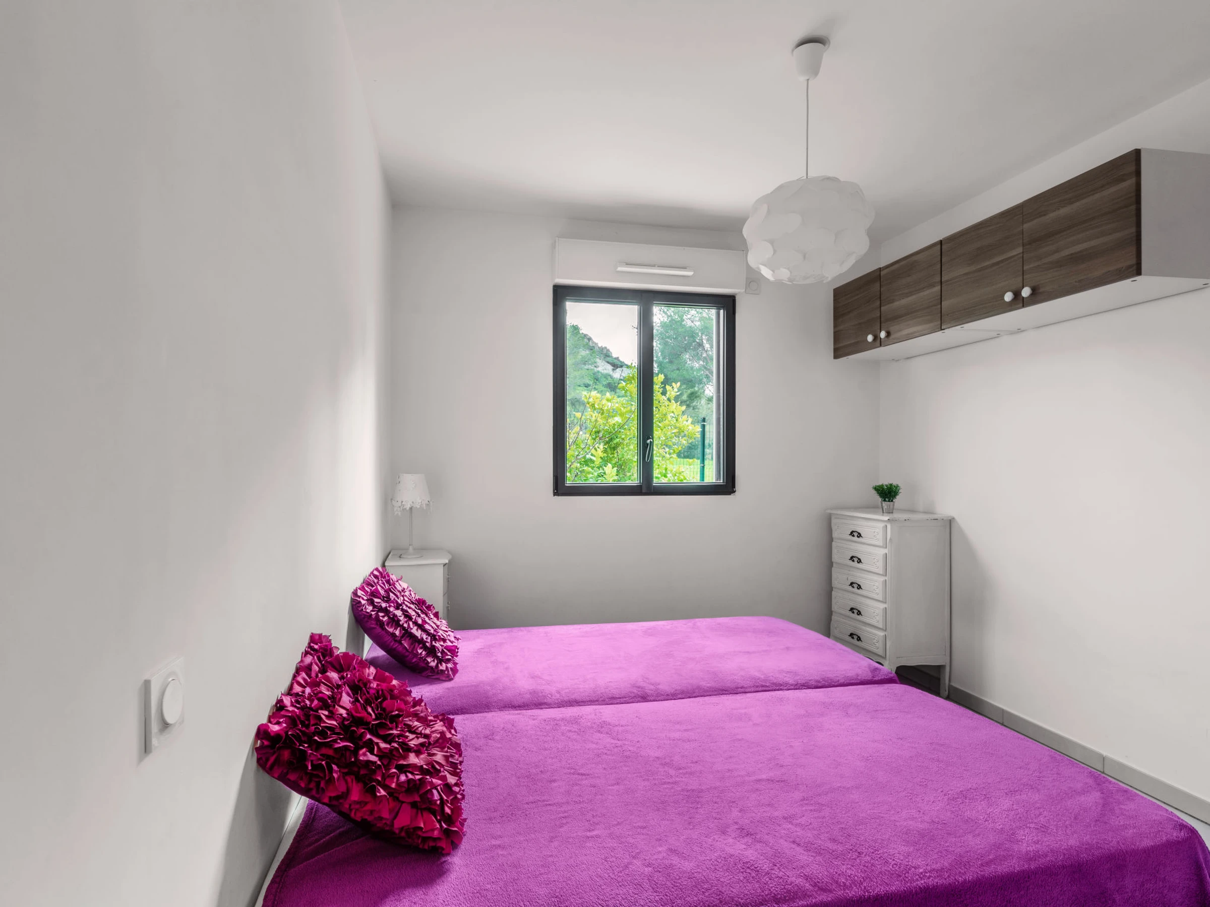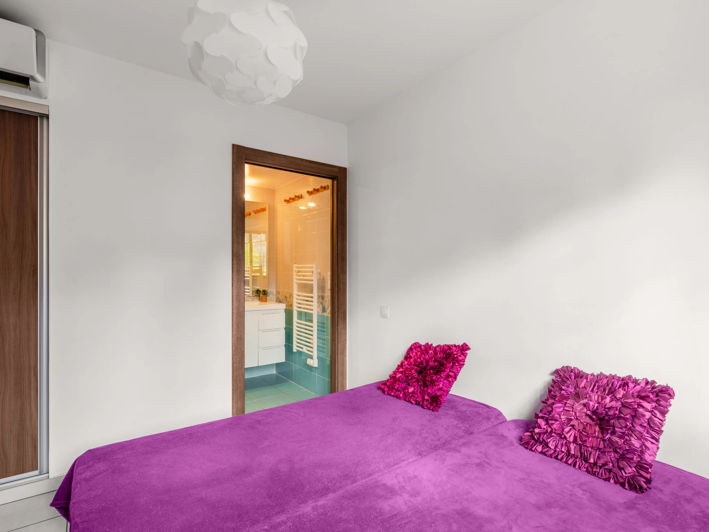 "Estérel Parc", apt 2 pièces 40 m2, rez-de-chaussée surélevé. Séjour/chambre à coucher avec 1 divan-lit (140 cm, longueur 190 cm), TV (écran plat). Sortie sur la terrasse, sur le jardinet. 1 chambre avec 2 lits (80 cm, longueur 190 cm), douche. Cuisine ouverte (4 plaques de cuisson, four, lave-vaisselle, grille-pain, bouilloire électrique, four micro-ondes, congélateur). WC séparé. Terrasse 10 m2, jardinet. Meubles de terrasse. Vue sur le jardin. A disposition: lave-linge. Internet (Connexion WIFI, en sus). Place de parking près de la maison. Veuillez noter: logement non-fumeur. Détecteur de fumée.