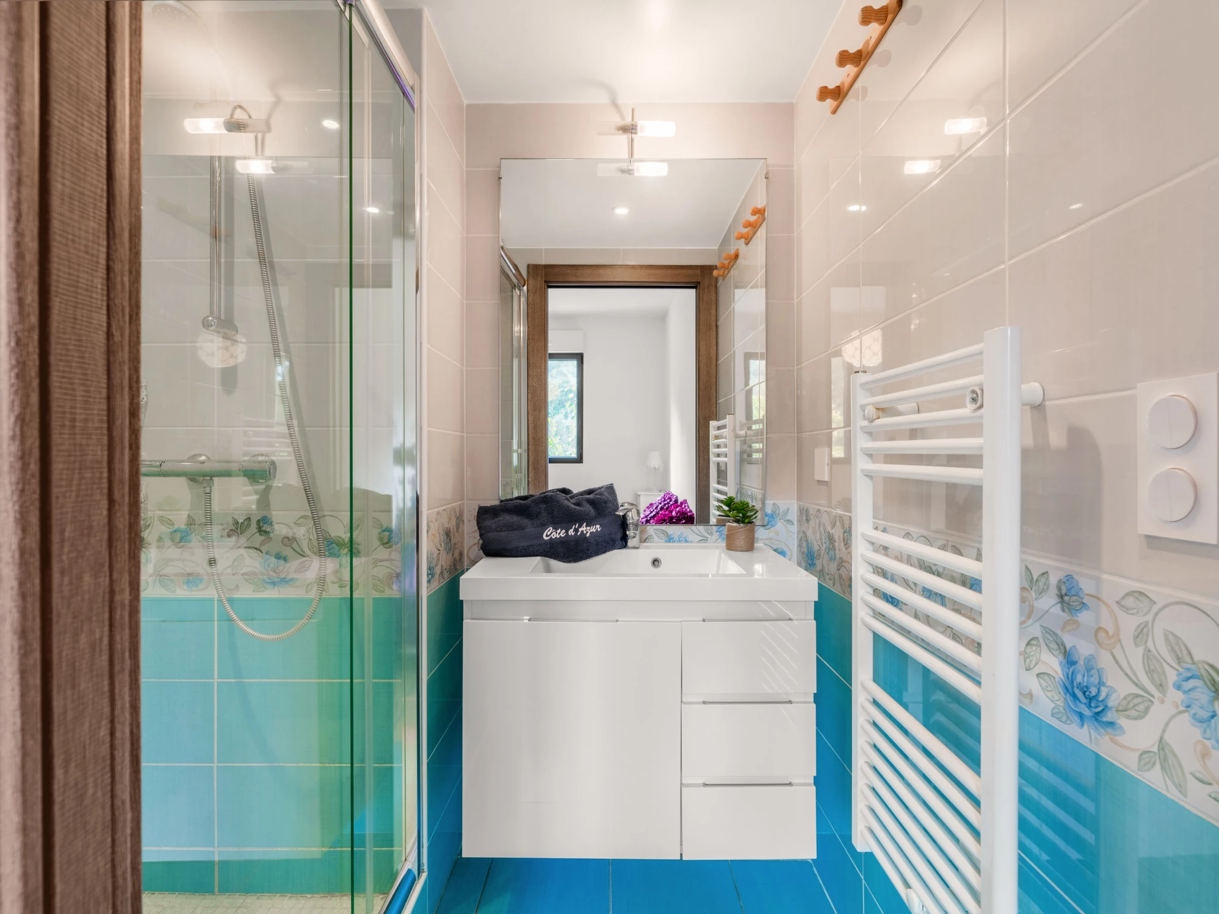 Résidence "Estérel Parc", de 3 étages. En bordure de la localité, à 2 km du centre d'AGAY, à 500 m de la mer, à 500 m de la plage. Magasins, magasin d'alimentation, supermarché, restaurant, boulangerie 500 m. Attractions à proximité: Anthéor 8 km, Saint-Raphaël 9 km, Fréjus 13 km, Cannes 33 km, Saint-Tropez 50 km, Nice 76 km. Les lacs connus sont facilement accessibles: Lac Saint-Cassien. Région de randonnées: Massif de l'Estérel. Résidence avec portail électrique.