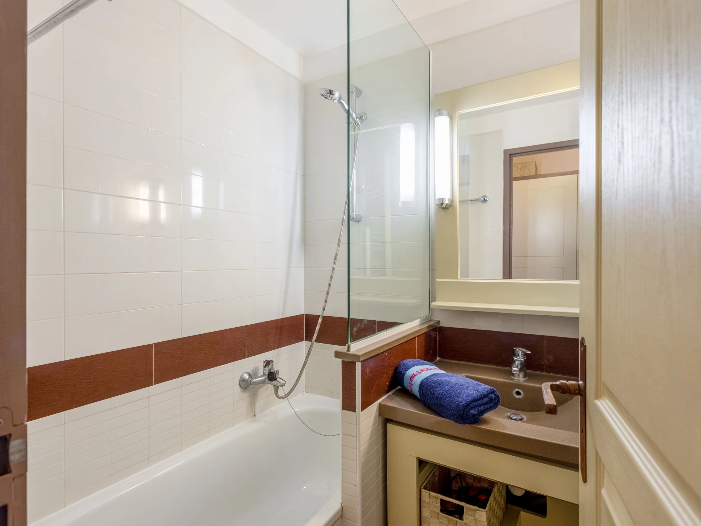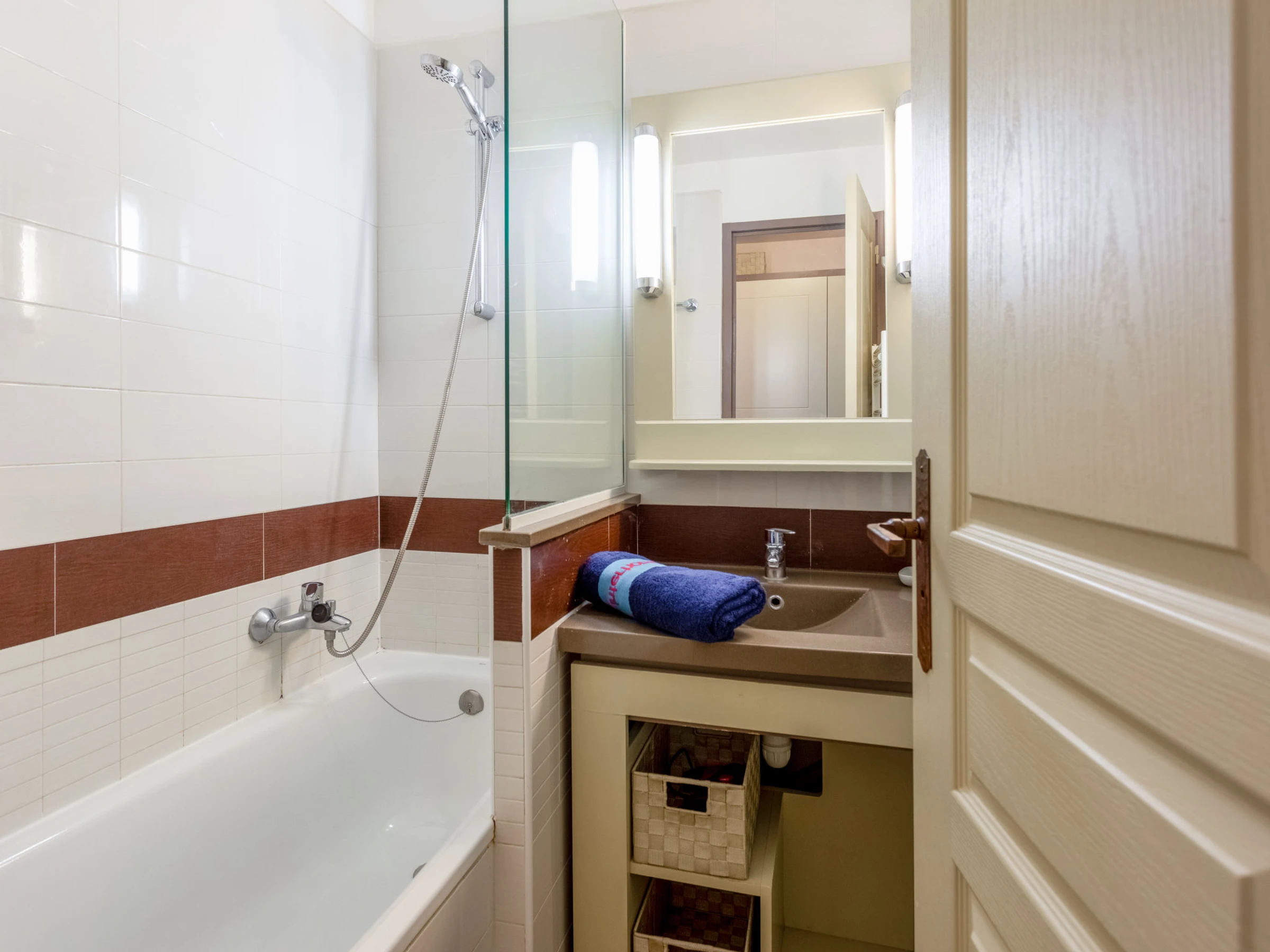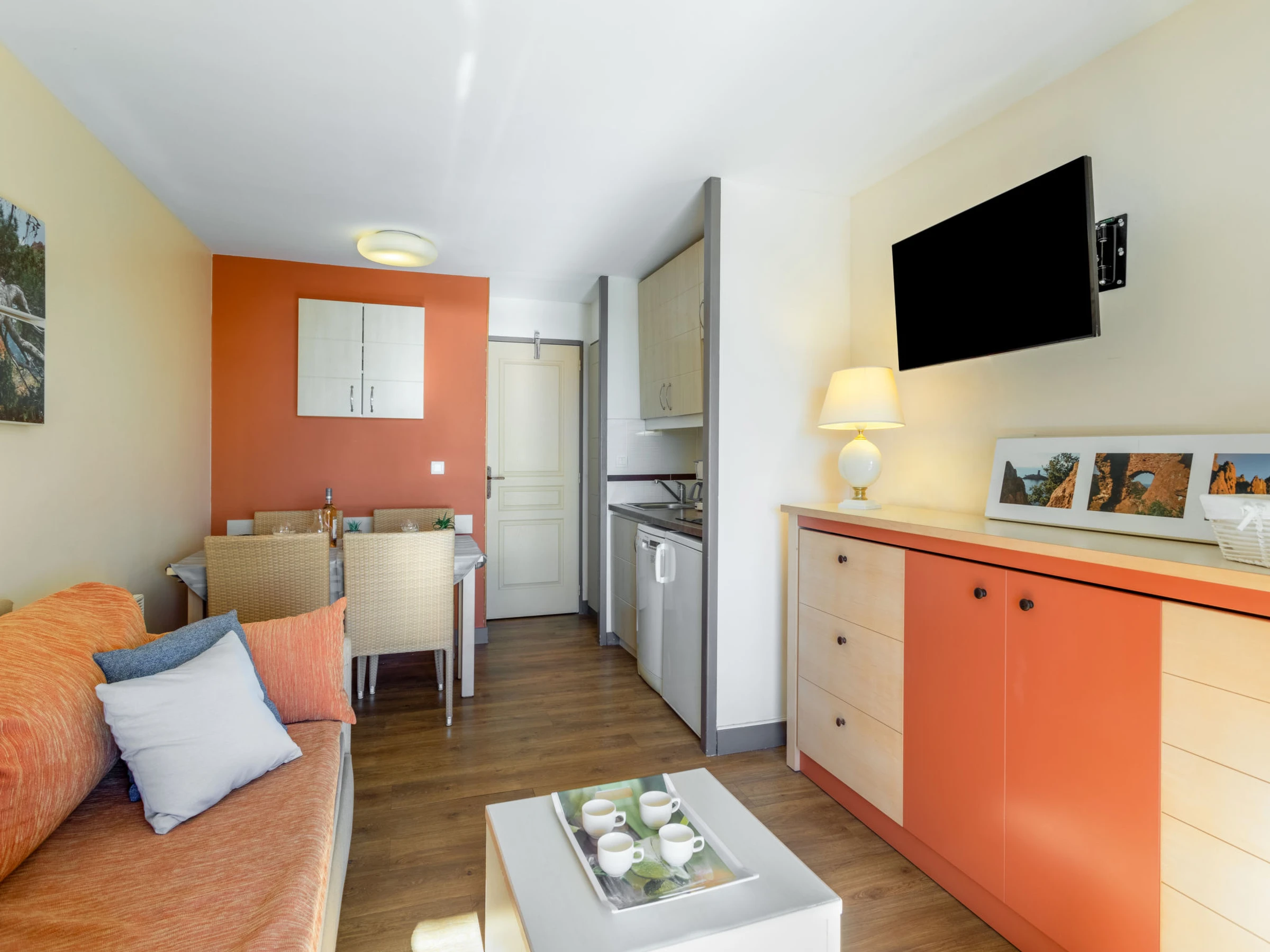 "Le Village (E1220)", apt 2 pièces 28 m2 au 2ème étage. Logement idéal pour 2 adultes + 2 enfants. Séjour/salle à manger avec 1 lit gigogne (2 x 80 cm, longueur 190 cm), TV (écran plat). Sortie sur le balcon. 1 chambre avec 1 grand-lit (140 cm, longueur 190 cm). Coin cuisine (lave-vaisselle, 4 plaques vitrocéramiques, grille-pain, bouilloire électrique, micro-ondes, cafetière électrique). Salle de bains, WC séparé. Chauffage électrique. Balcon 10 m2. Mobilier de balcon. Belle vue sur la mer et la piscine. A disposition: Internet (Connexion WIFI, en sus). Place de parking. Veuillez noter: logement non-fumeur.