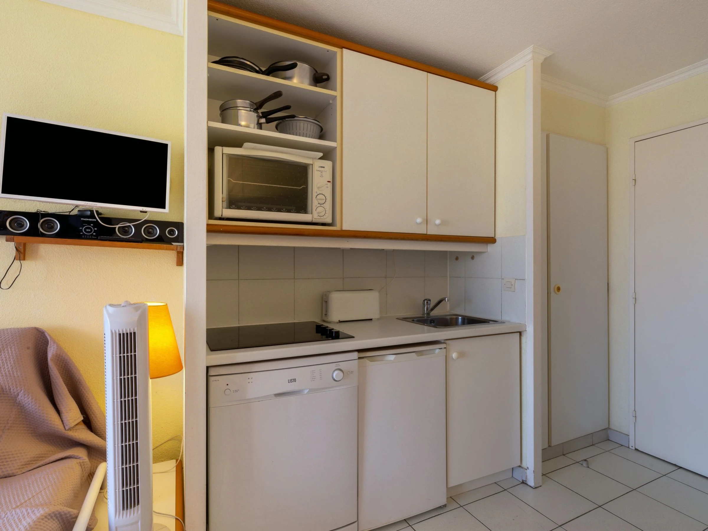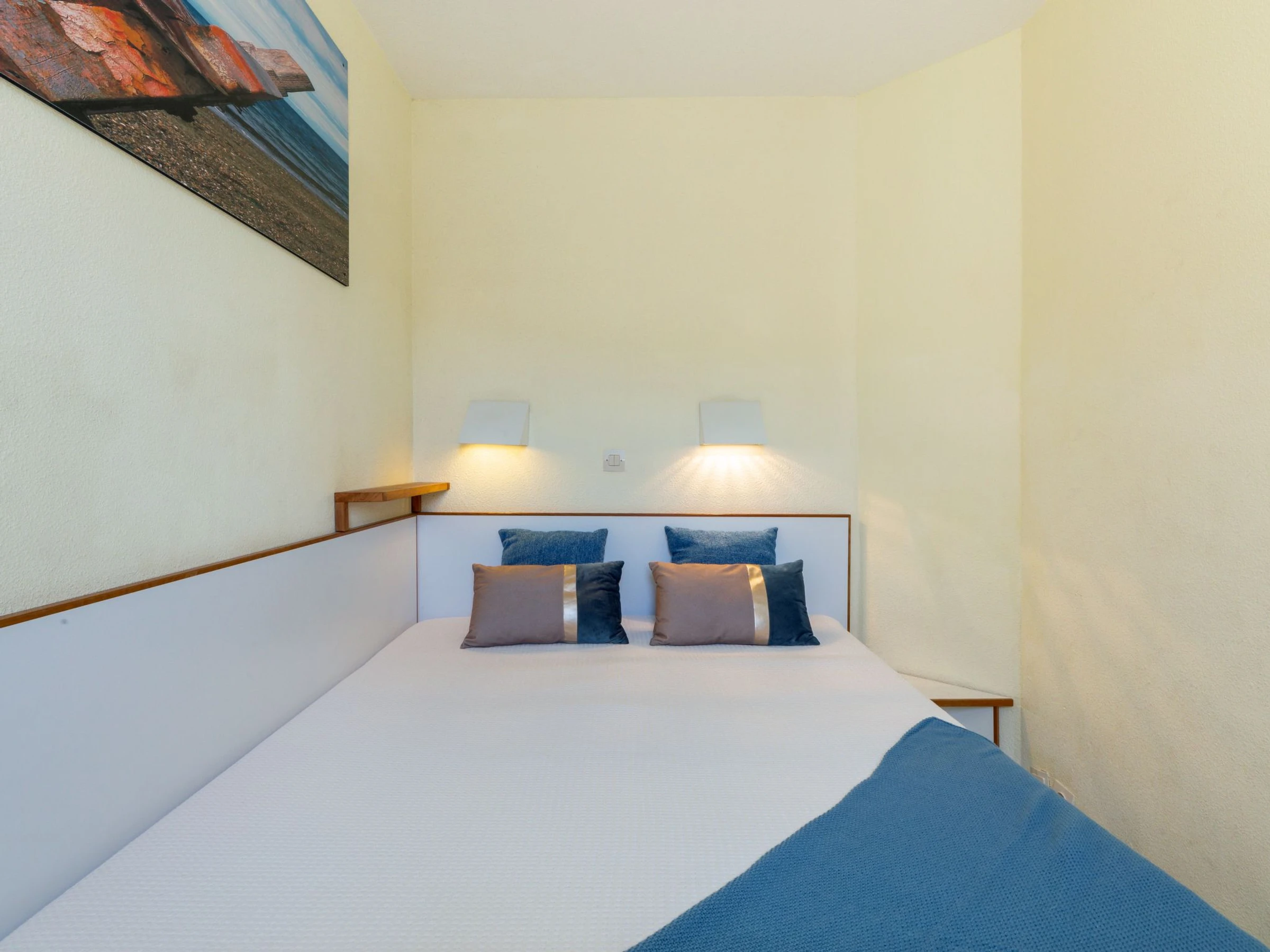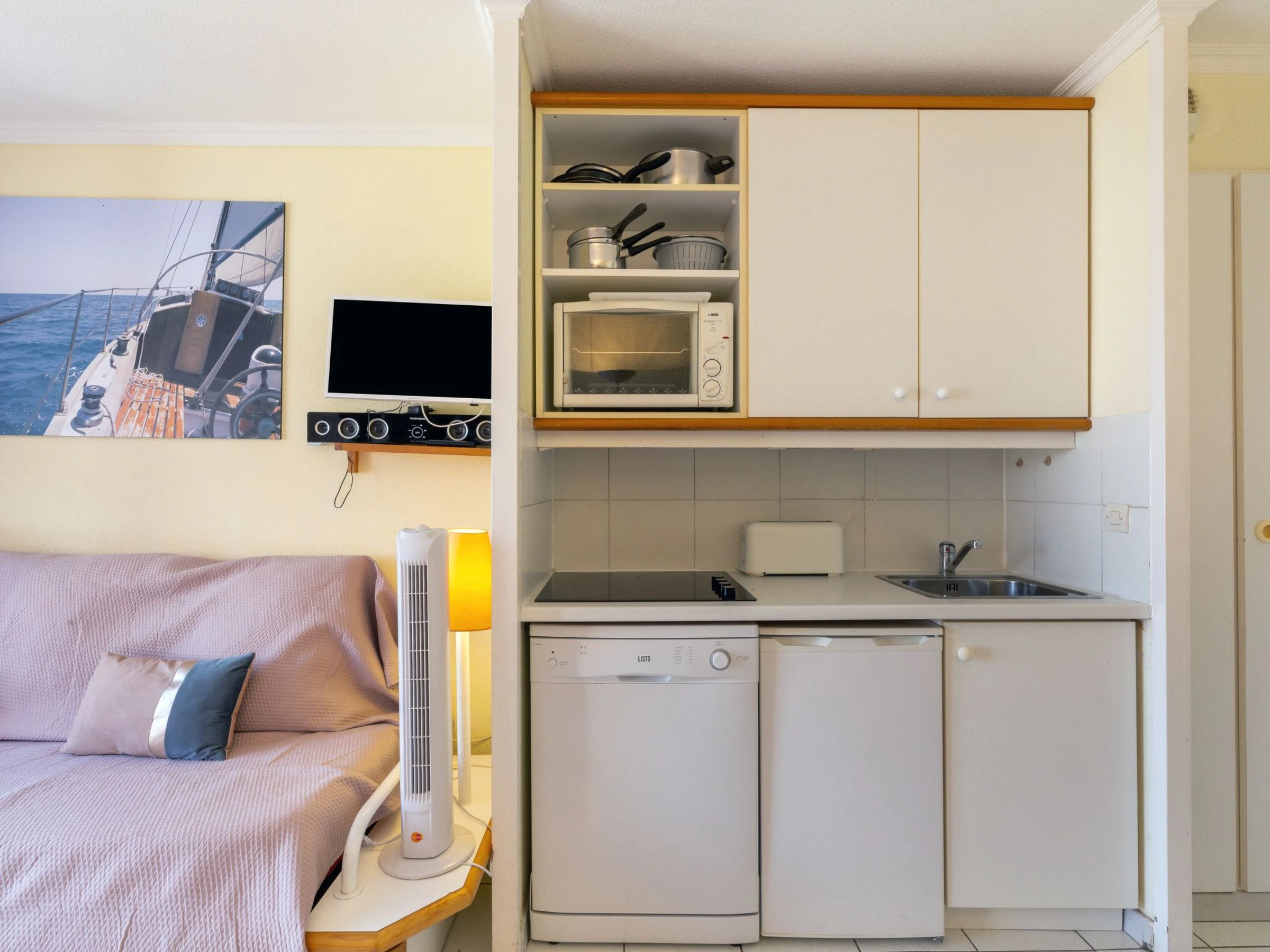 "L'Esquinade (J5 407)", apt 2 pièces 28 m2 au 4ème étage. Séjour/chambre à coucher avec 1 lit gigogne (2 x 80 cm, longueur 190 cm), TV (écran plat). Sortie sur la terrasse. 1 chambre avec 1 grand-lit (140 cm, longueur 190 cm). Coin cuisine (4 plaques de cuisson, lave-vaisselle, grille-pain, bouilloire électrique, micro-ondes, cafetière électrique). Salle de bains, WC séparé. Chauffage électrique. Terrasse 10 m2. Vue sur la mer. A disposition: Internet (Connexion WIFI, en sus). Place de parking No 2165 (couvert). Veuillez noter: logement non-fumeur. Maximum 1 animal/ chien de petite taille autorisé. Détecteur de fumée. Annonce d'un particulier (art 155, IV du CGI).